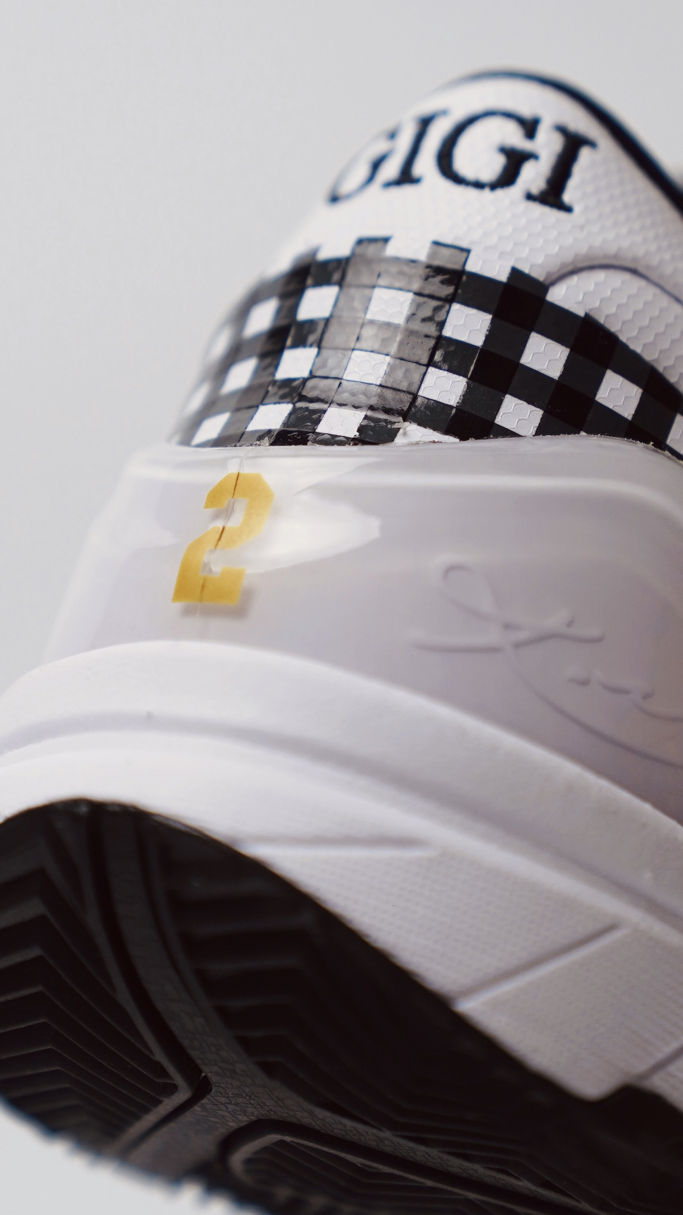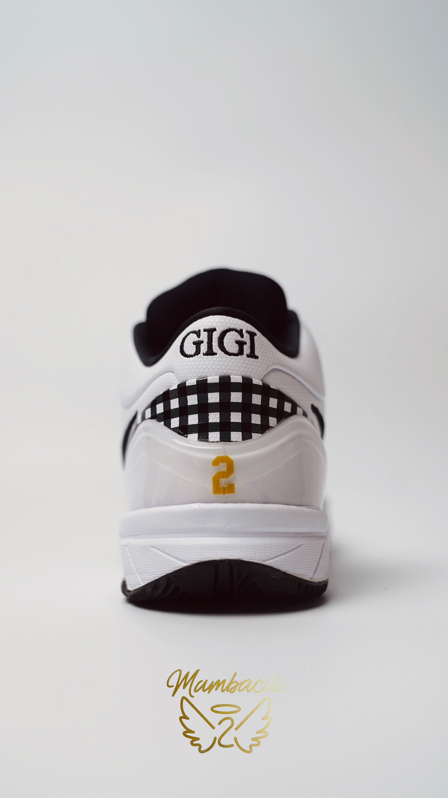 要是材质、细节更忠于元年就好了,改了材质种感觉味道都不对了。 配色、意义无须多言,后跟有金色的2号和刺绣的GIGI。黑白格纹也是延续了ZK6的设计,黑白色格子也是GIGI最爱的元素之一。 今年还有很多科比的鞋复刻,期待。