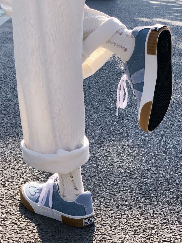 牛仔蓝真的很显白的颜色 棕色边条很有德训鞋的味道~目前没有撞款哦! 鞋底是酷酷的饼干底 入手不会选错的德训鞋!非常推荐!