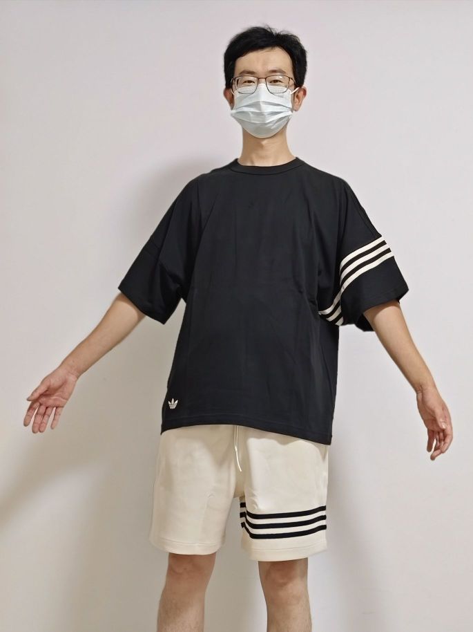一整套都是宽松型, 本人177,体重60kg,上衣S码,挺合适。 短裤S码,稍微有点勒裤腰,M码应该会合适,但是又担心过于肥了。 上衣纯棉,厚薄还可以。 短裤面料有点厚了,并且短裤克数挺重的,毕竟短裤比上衣也要贵。 黑白搭配、纯白搭配、纯黑搭配都适合。