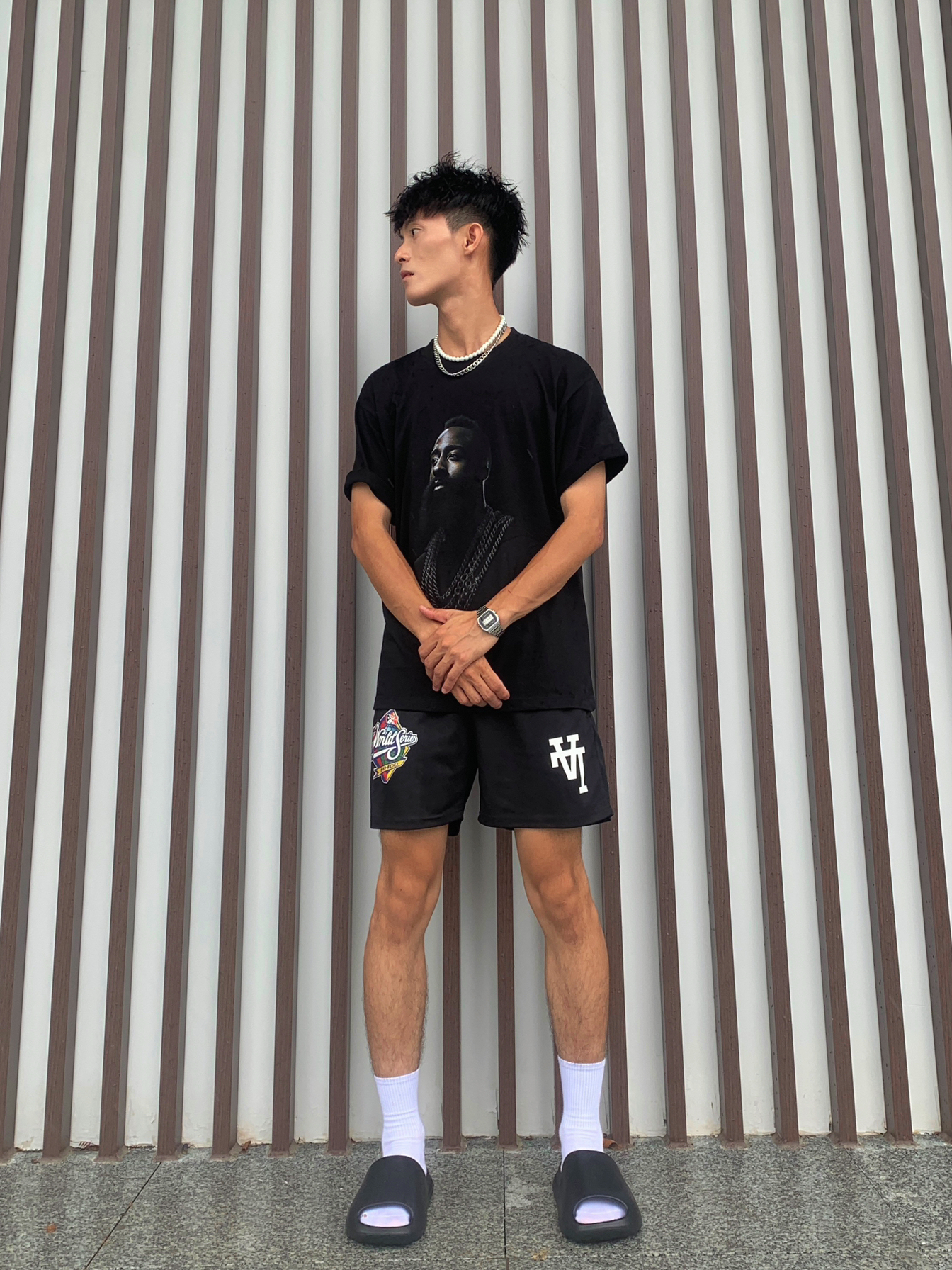 🎥夏天必须有篮球员通道休闲穿搭,只能说是真的帅,介绍一下今天的黑武士即黑的美式球员穿搭⛹🏻♂️ 🙋🏽♂️身为体育生或者拥有黄黑皮最适合啦🫵🏻 📸黑色哈登人像T恤➕黑色倒LA印花美式短裤✅ — — — — — — — — — — — — — — — — — — 1️⃣👕 🧩ZEILASHUAI的夏季NBA球星哈登数码直喷短袖,美式小圆领的针织螺纹,上身效果版型有型透气舒适,不管是篮球场上场下都是...