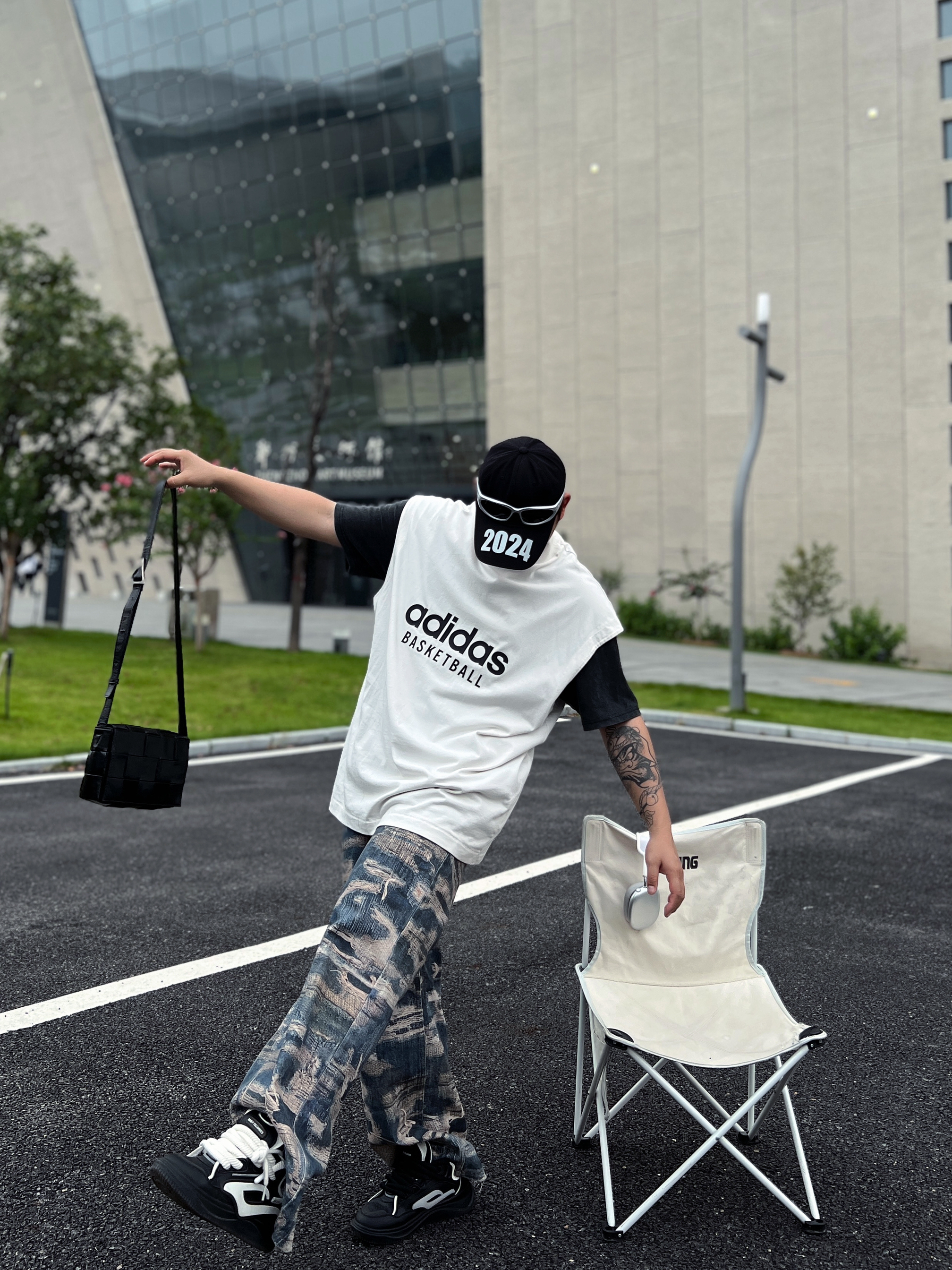 Hi、这里是有点懒的薯条🍟~ ☑️夏季的叠穿效果真的够加分! 🔘基础的黑白效果 加上反差的黑白撞色搭配 是一个不错的搭配 当然迷彩的长裤是不是够街头 有基础 有层次 真的需要学习一下!