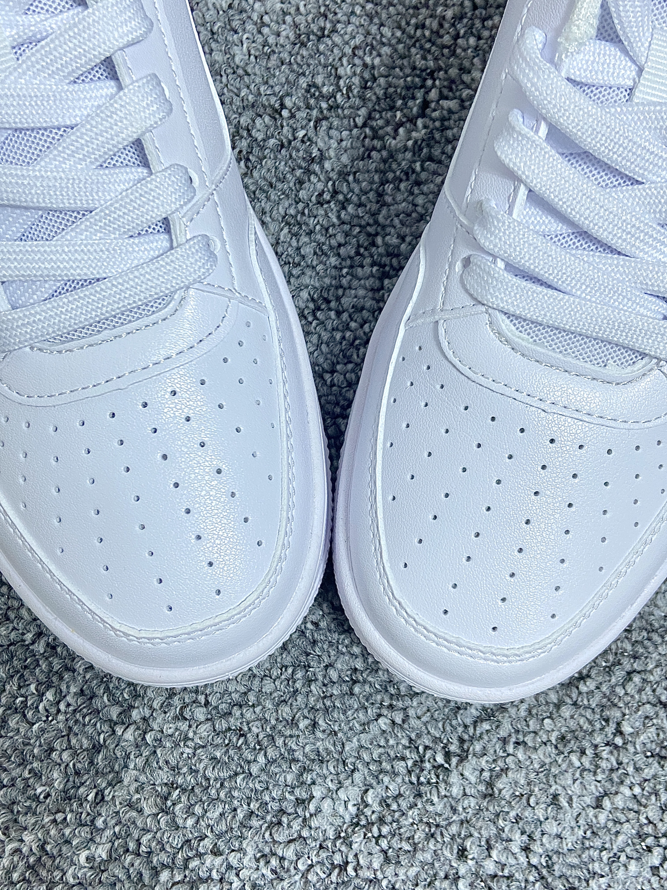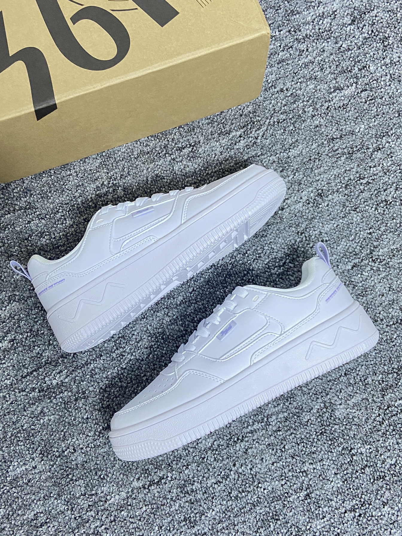 取到包裹后很惊讶 因为真的太轻了 我还以为是空的🤣 打开一看 这也太哇塞了!😱 鞋身整体以白色为主 紫色点缀 皮质的拼接鞋面 易清洁好打理 织物的鞋舌和冲孔的设计完全不会闷脚 上脚也很舒服 很轻 很百搭 小白鞋果然是YYDS !!!