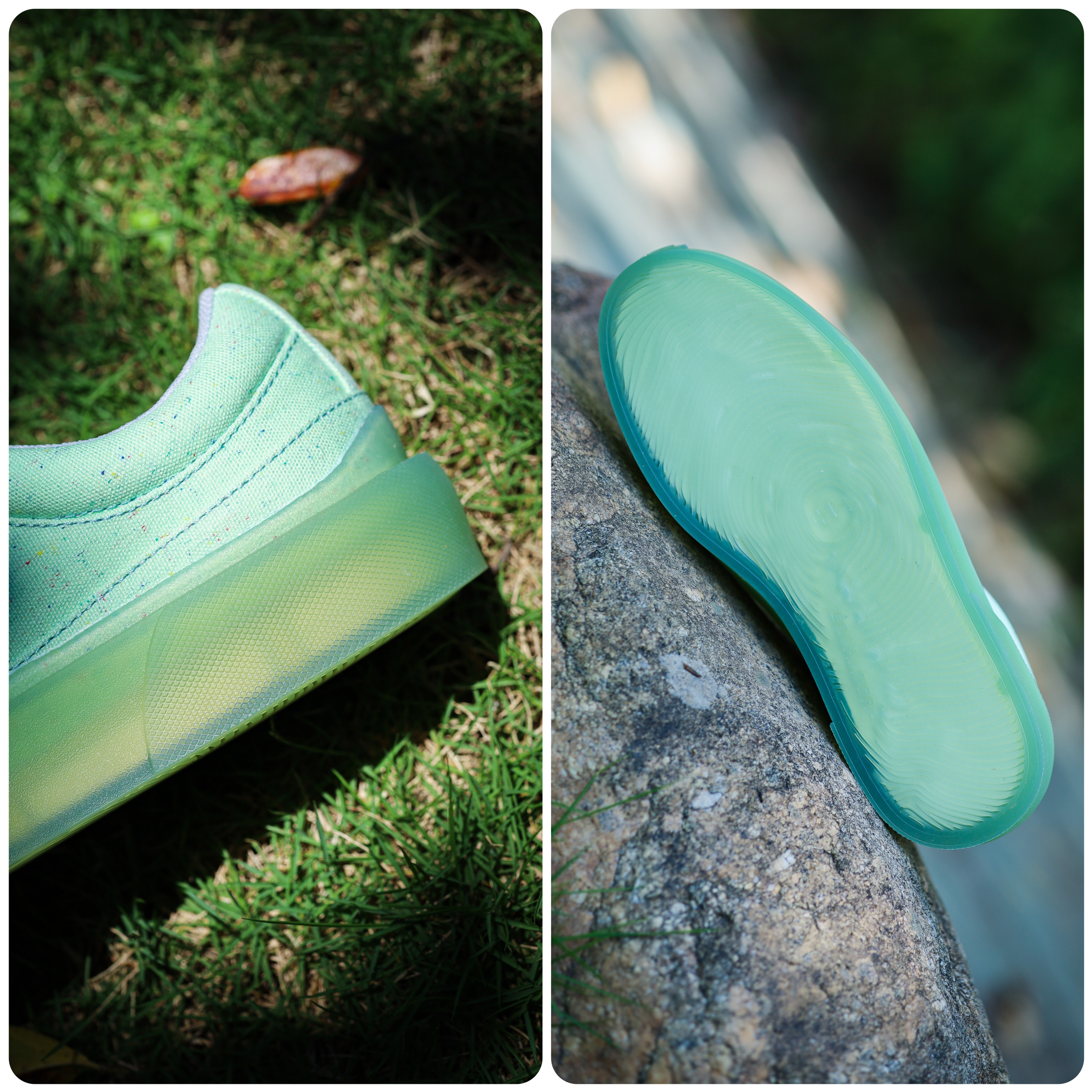 作为近两年来最经典的复古板鞋之一,错版鞋已经陆陆续续推出了非常多好看的配色。但是不知道我有没有记错,在我的印象中,貌似还没有出现过水晶底的错版鞋吧? 这不,最近EQLZ新推出的果冻底系列,就填补了这个空缺。 错版鞋的外观大家都非常熟悉,就不用再多介绍了。这次依旧是延续了老款错版鞋的设计语言,复古的鞋型非常百搭。 而这个果冻底系列有3个配色,我选择的是这双“绿茵”,浅绿色的鞋面再搭配绿色的透明水晶底...