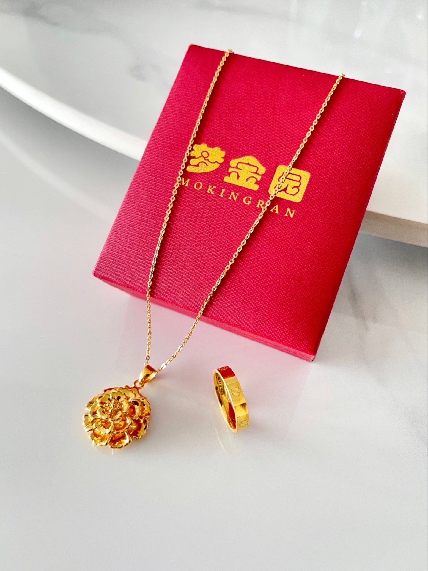 清冷温柔风的搭配总能让人心动不已 上身自带仙气感的碎花吊带长裙 搭配小香风高跟鞋👠气质拉满💯 加分的精致配饰当然也少不了~ 梦金园的项链➕戒指💍工艺精美 牡丹花造型的吊坠生动立体 有金光闪闪的光泽感 佩戴上彰显高贵典雅的气质 搭配素雅的小裙子再合适不过啦! 这款足金戒指💍的造型简约大方 立体饱满外观百搭又耐看 日常佩戴气质up 男女生都可以佩戴的款式 情侣党不要错过啦! ⛓️💍:梦金园 👗:M...