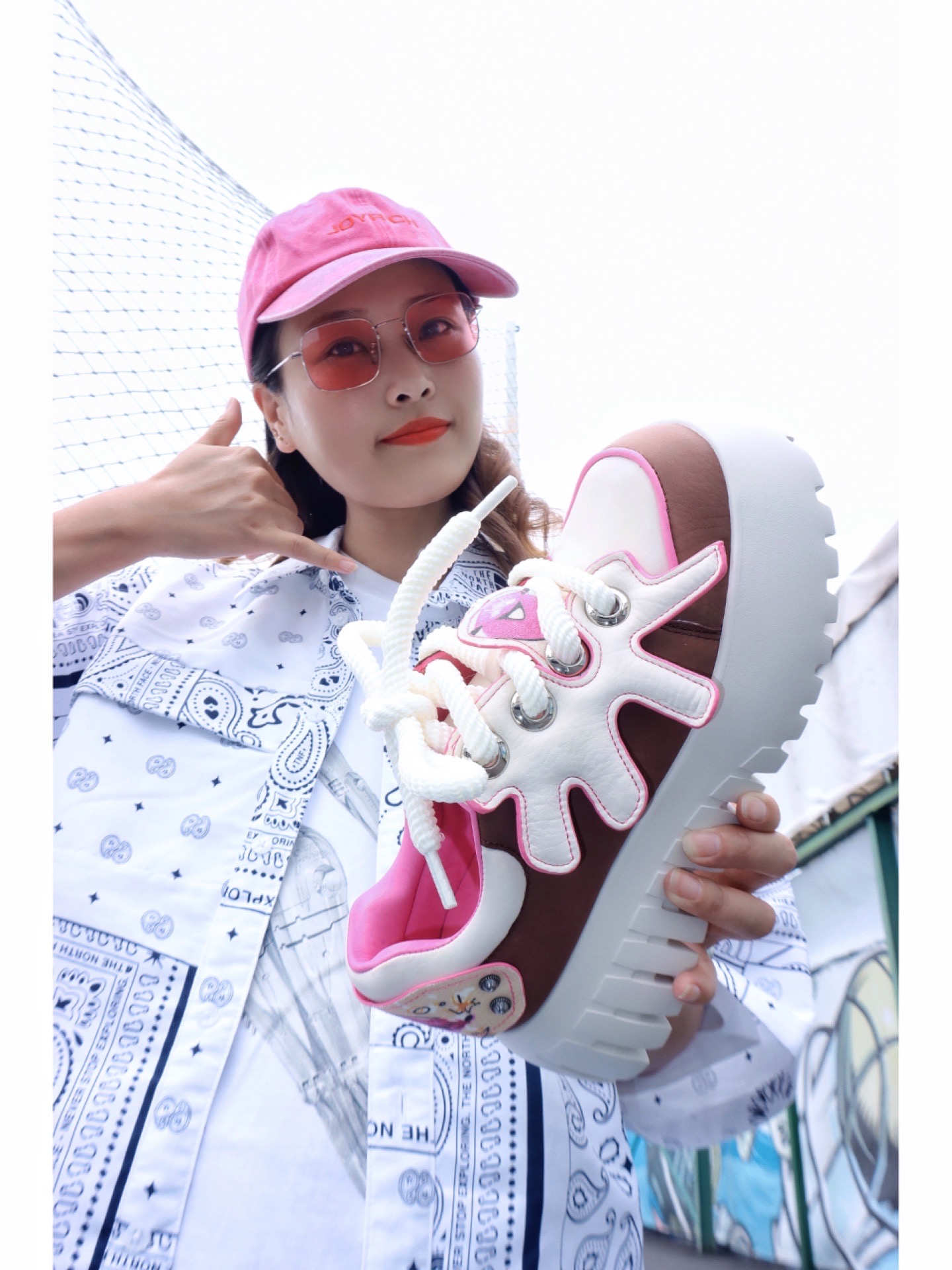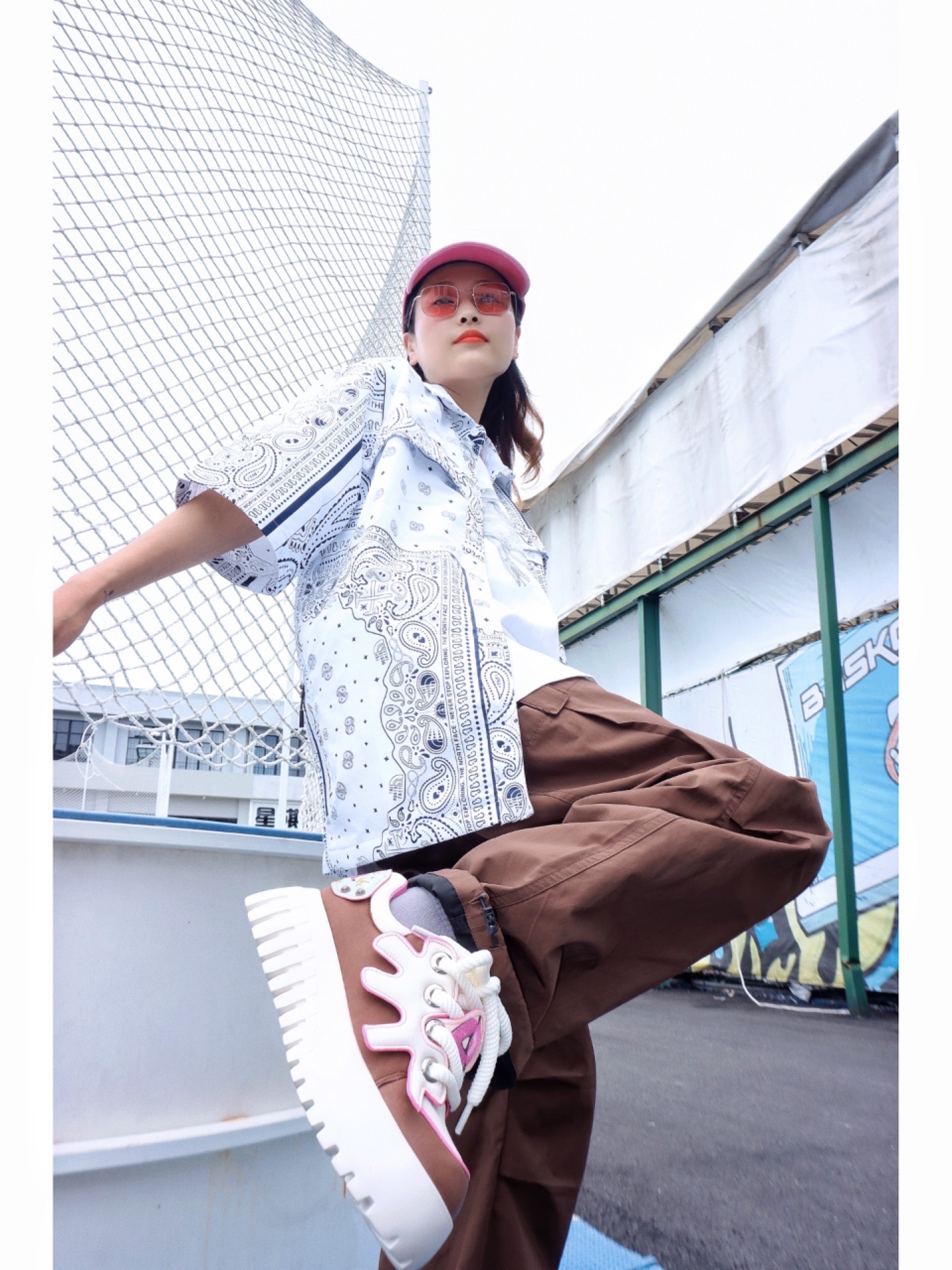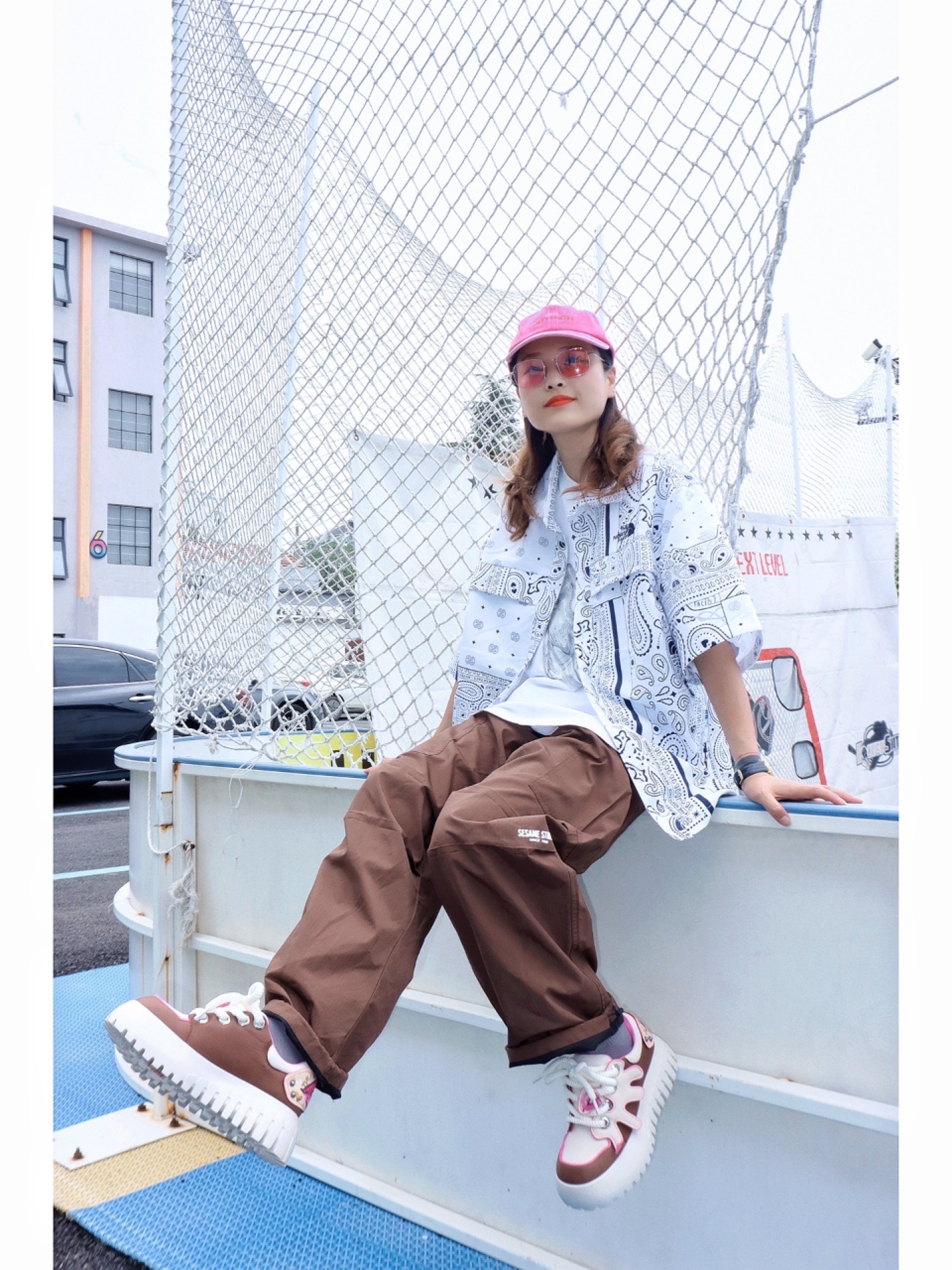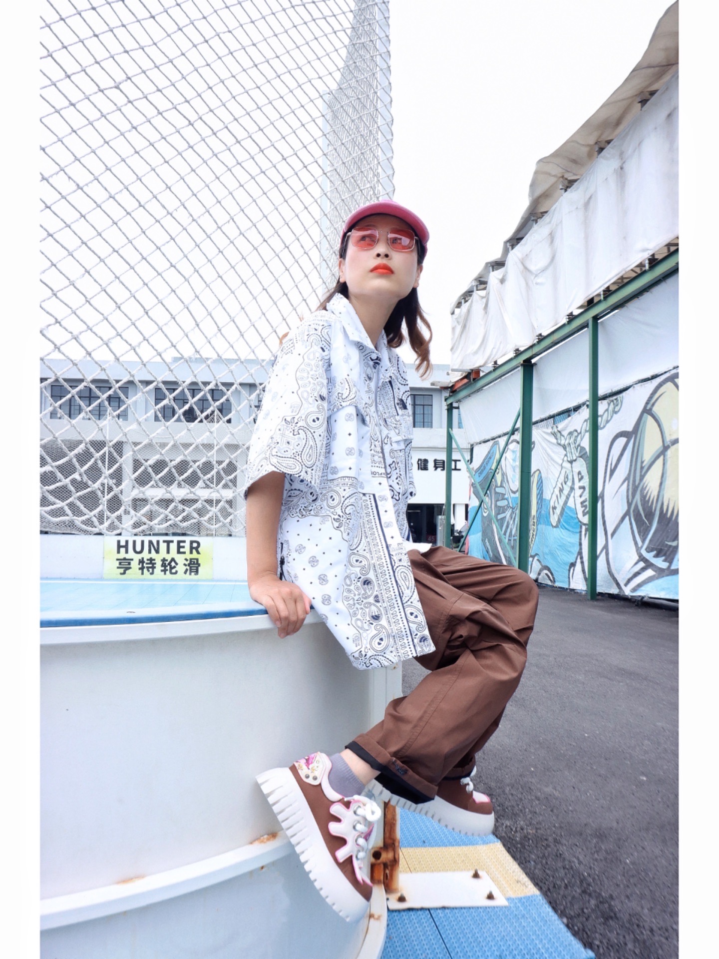 夏天还是喜欢配色简单的 清清爽爽干干净净 一件腰果花衬衫👔 帅气十足又有活力 _ 鞋子今天搭配的比较个性 玫红色➕咖啡色 多巴胺配色让人心情愉悦😄 圆开上翘鞋头、饱满又立体 侧面立体皮帕装饰、绑带设计 高矮脚背都可以穿 唇形配件点缀、细节满满✌🏻 脚感舒适透气 很适合夏天出门穿 _ 搭配一顶鸭舌帽 街头感十足又充满活力 _ 👟: #VINYVIOLA