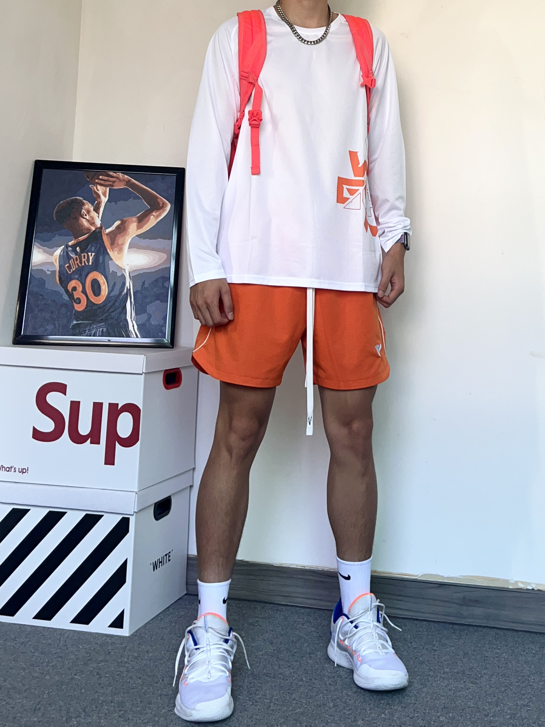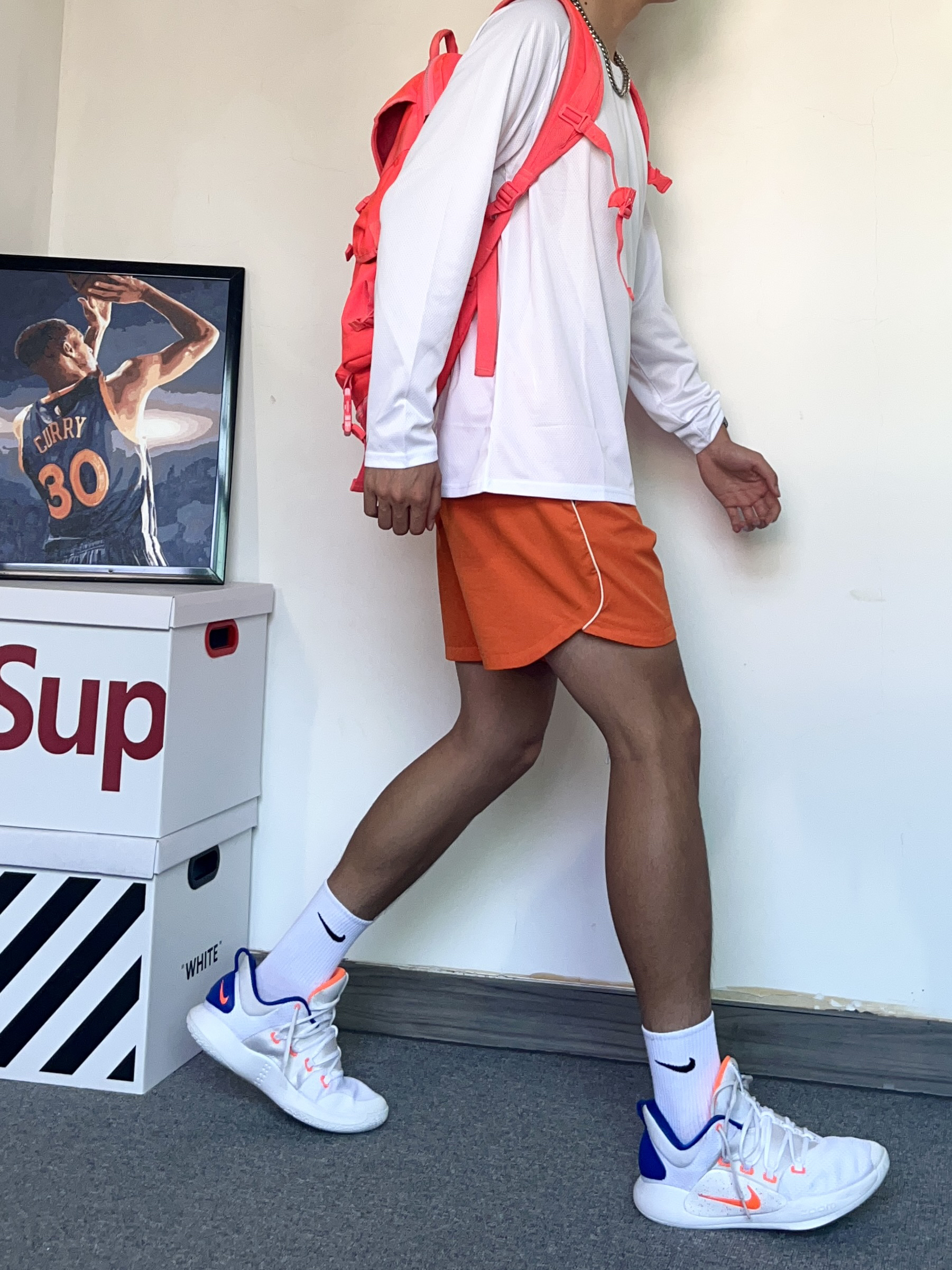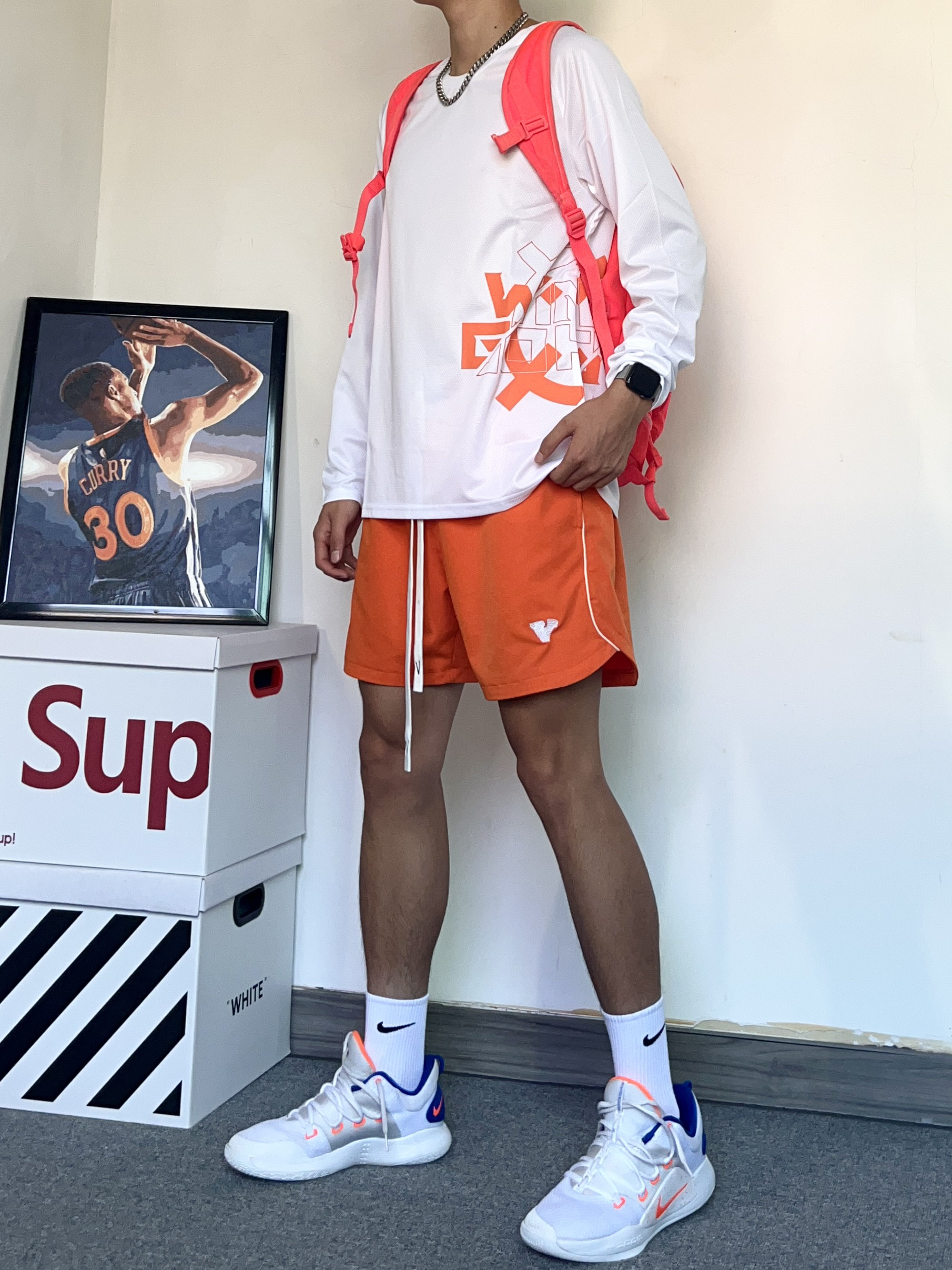 喜欢打篮球的小伙伴看过来!今天分享一套夏日打篮球的穿搭,让你在球场上帅帅的打球! - 上衣是准者 RIGORER的投篮训练服训练实战都可穿!很喜欢这个白橙配色袖口有收缩的设计,不会影响投篮训练一个小细节! - 搭配了一条橙色的运动短裤,和上身投篮服很搭哦! - hd2018最喜欢穿的鞋之一 平时穿也超级帅,实战性能也不差!