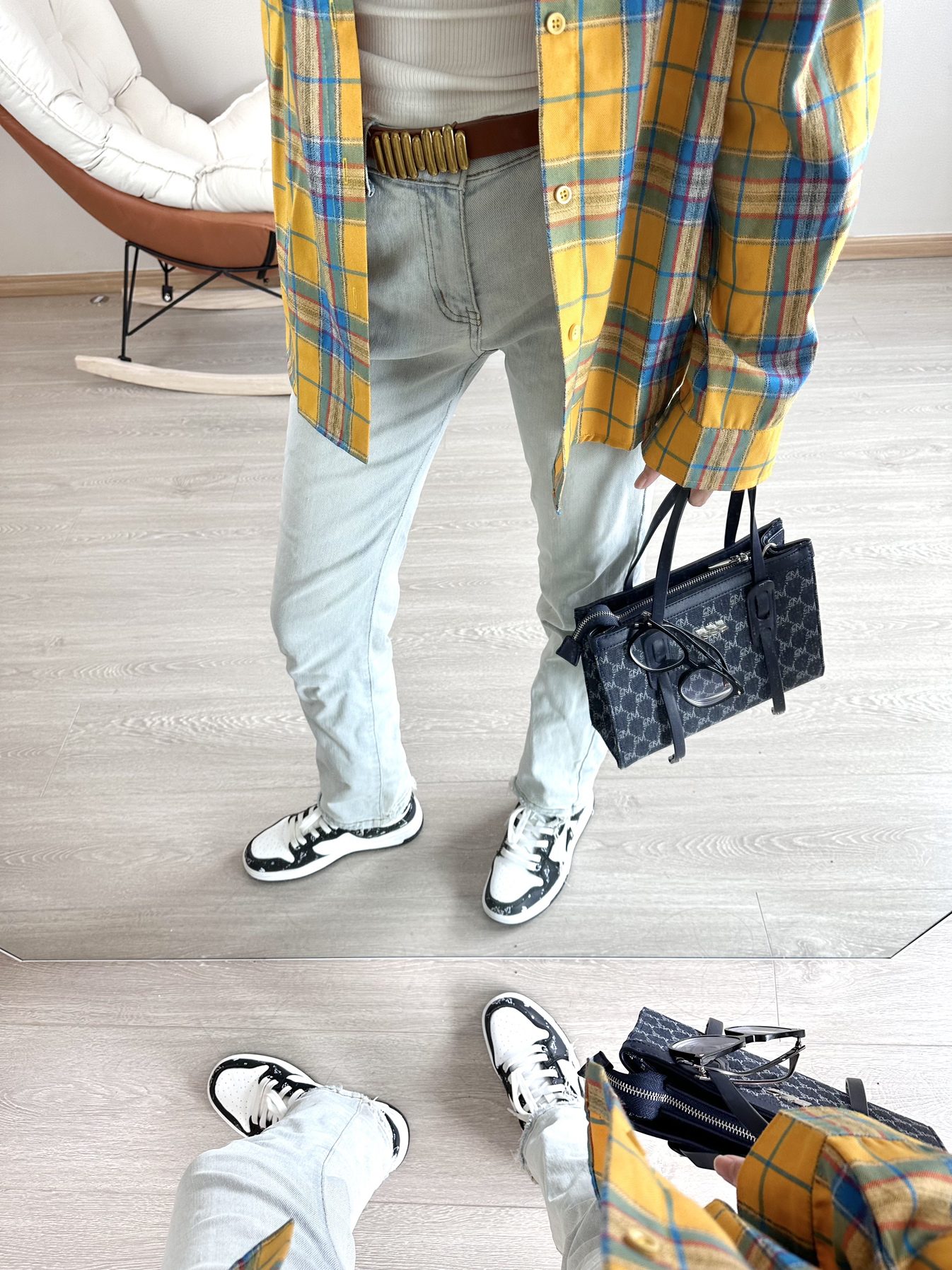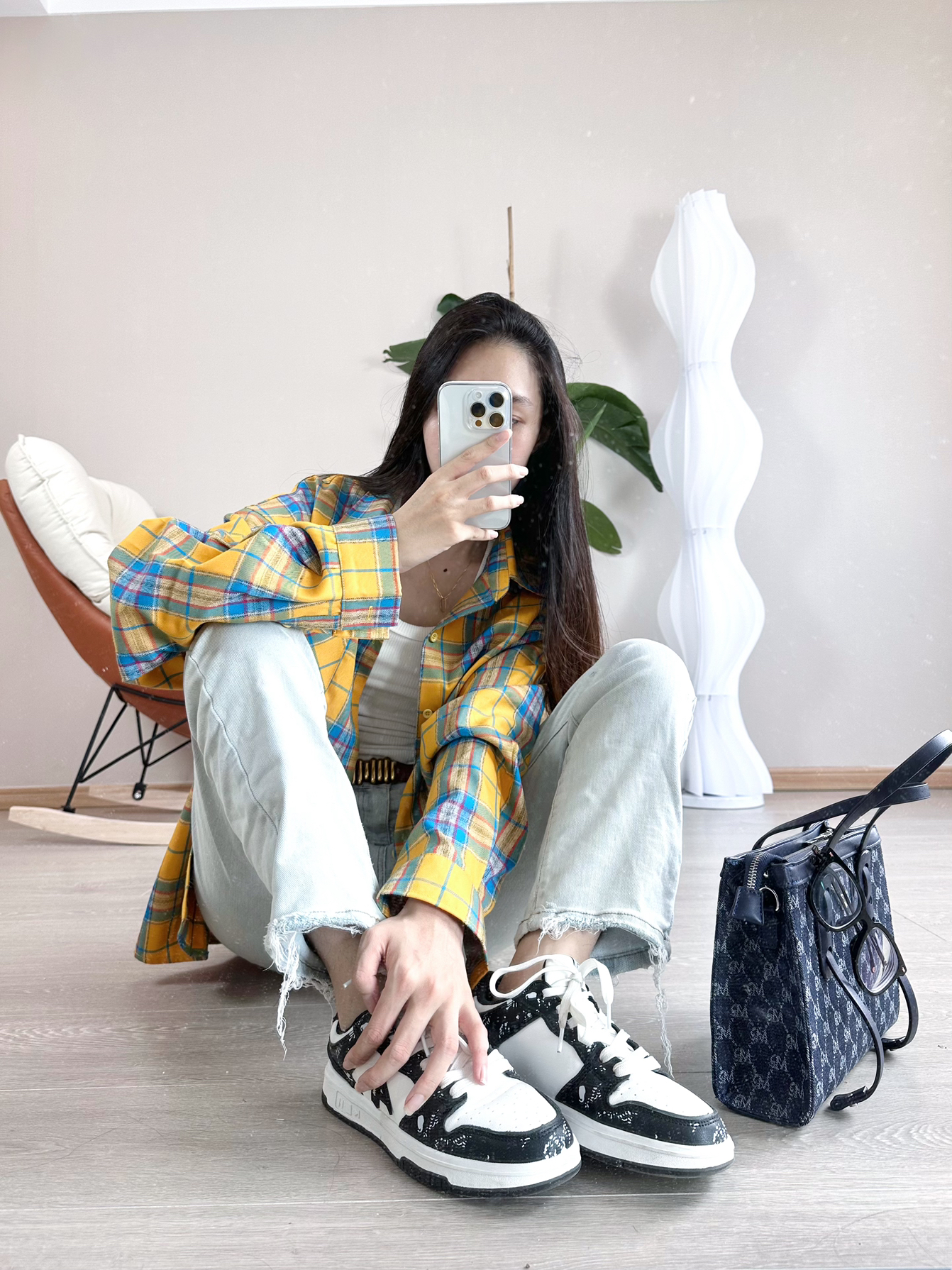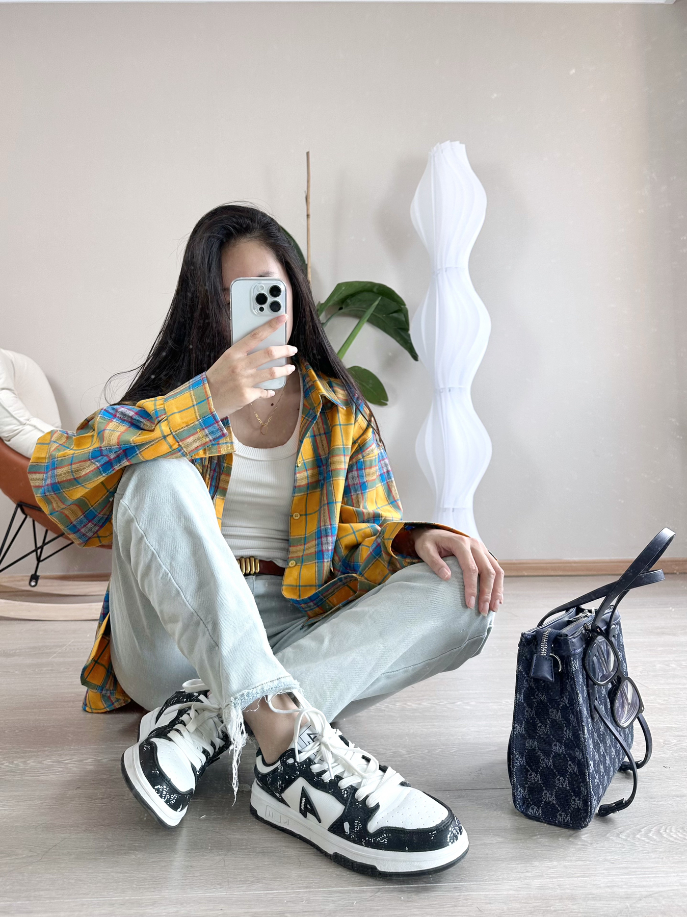 👚:白色紧身低领T恤。这件衣服穿了好长时间了。算是我的真爱了。打算下次入一款灰色。 👖:浅蓝色直筒牛仔长裤比其它颜色的牛仔裤更百搭 🧥:这件🍋柠檬黄+🩵浅蓝色的格子衬衫我个人认为配色非常的漂亮,非常适合夏天。但是我这款是 M号有点小,我建议越大越好。 👟:鞋子选择的是熊猫配色的板鞋。 我是“凡凡”会分享很多实用好看的穿搭 感谢你的关注