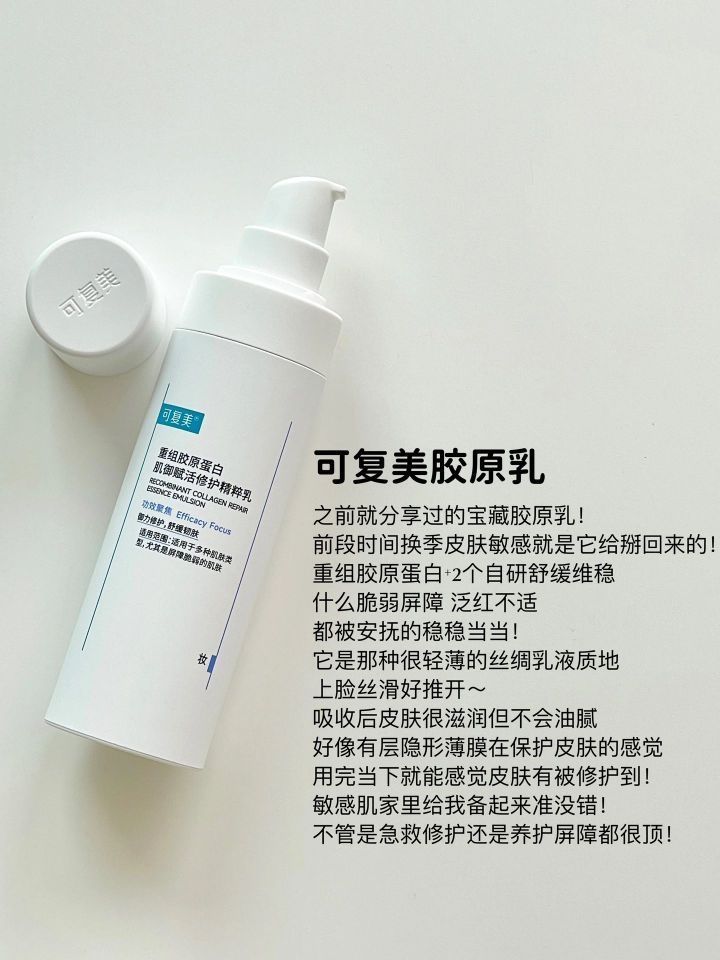 还有敏感肌姐妹没用过可复美我都会伤心的好嘛! 背靠巨子生物大厂! 自研重组胶原蛋白 修护实力在线 (这个成分的行业标准制定者之一!大佬谁能不服! 良心国货就应该大火!!🔥🔥 用过它家好几款修护产品 每一款都不踩雷巨好用! 不仅能当下拯救敏感肌的泛红、干痒问题 坚持用是真的能看到皮肤在变好!变稳定! 肌肤有问题时真的离不开!! (*效果因人而异) - 说说我在回购的4个宝藏单品!单用搭配使用都很出彩...