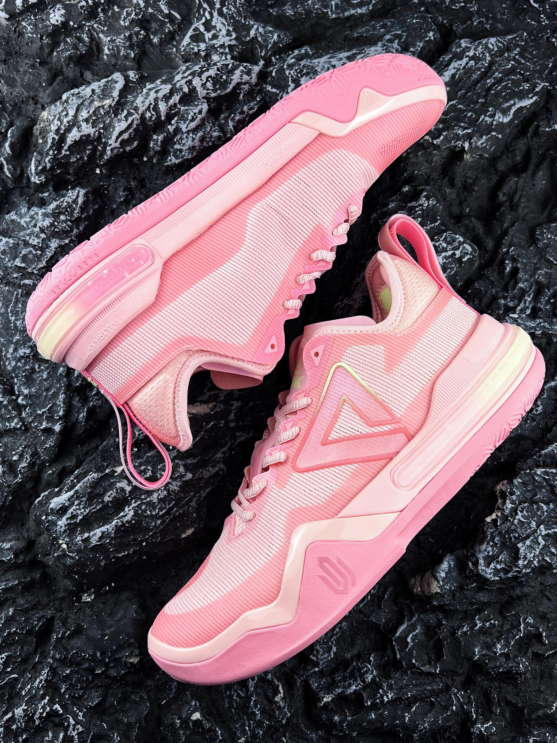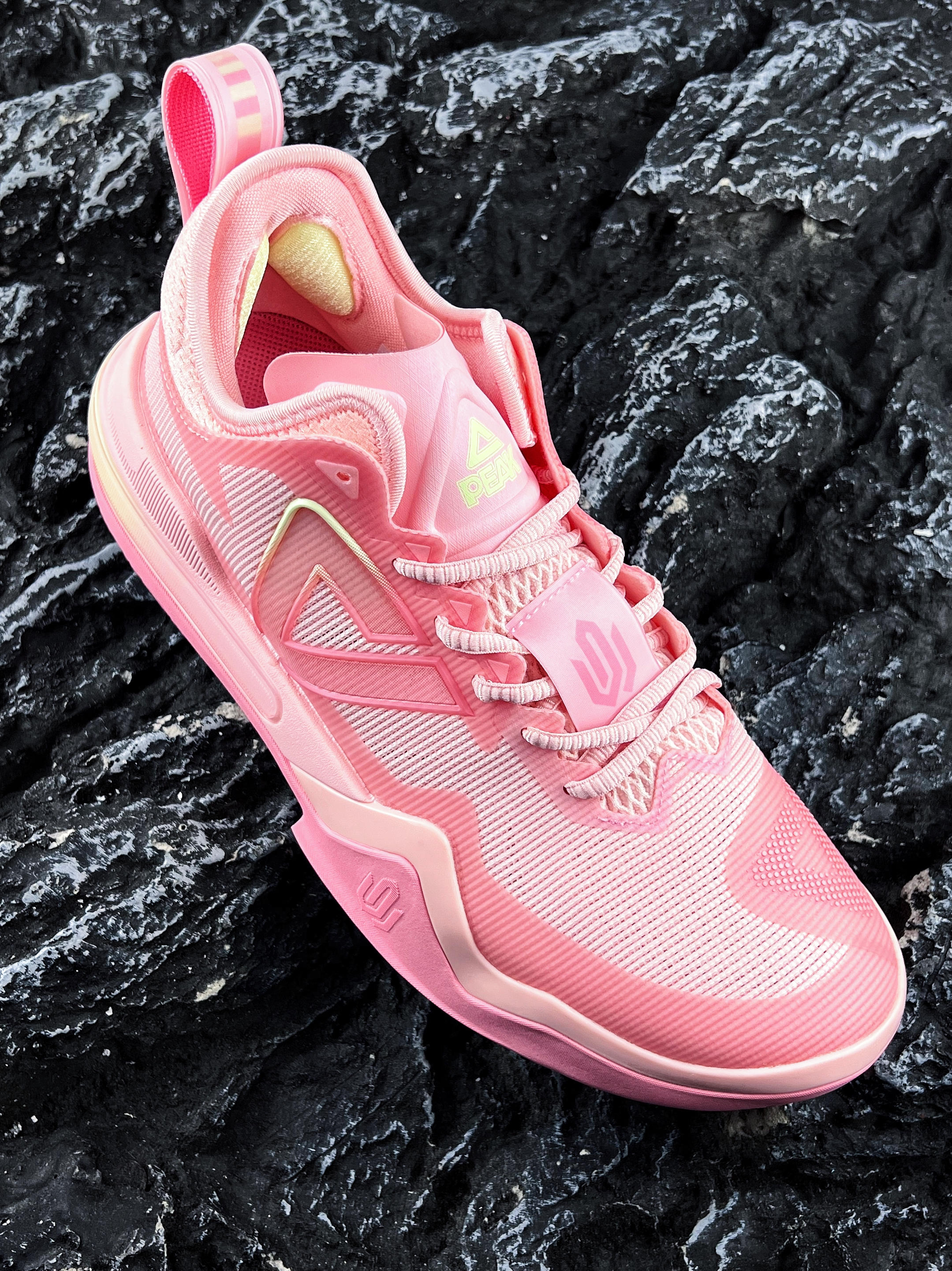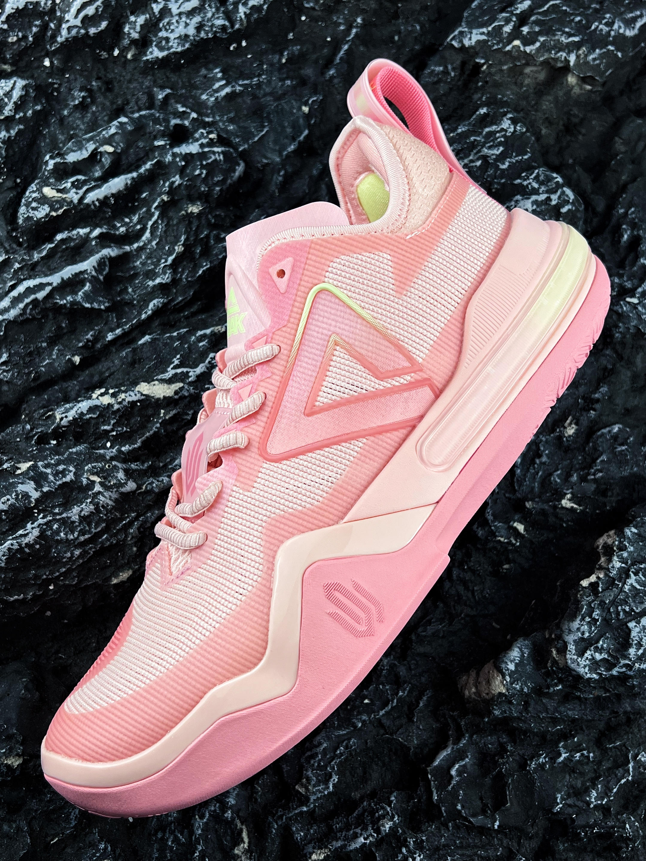 🍃哈喽大家好、这里是你们的老川! 今天和大家分享一款配色粉嫩的球鞋 就是这款匹克 态极 威金斯1代 樱花粉 这款也是嘴哥中国行 广州站会上脚的配色 实物颜值还是蛮甜美的~ 鞋款采用轻薄透气的网眼面料 透气性还不错~ 中底轻弹+前掌P-Soon&后掌轻量化态极科技 静态感受还是比较的韧弹,回弹缓震还不错 橡胶外底的耐磨和抓地问题也不大 可以说是一款又帅又能打的实战好鞋 尺码方面建议正码就可以