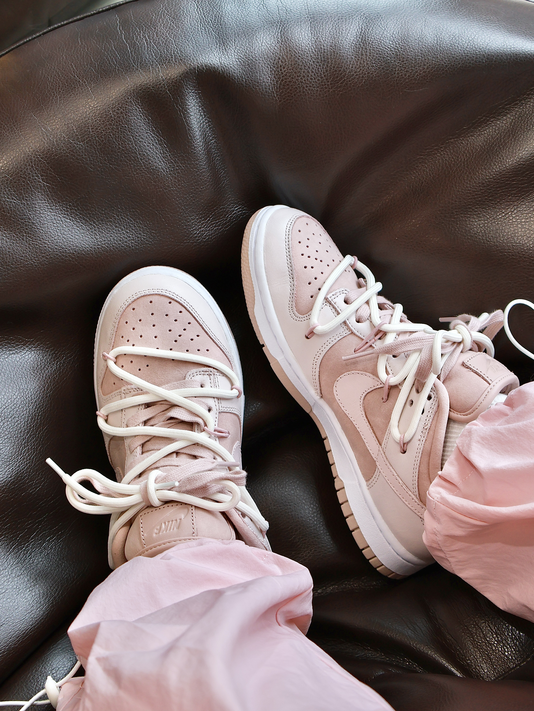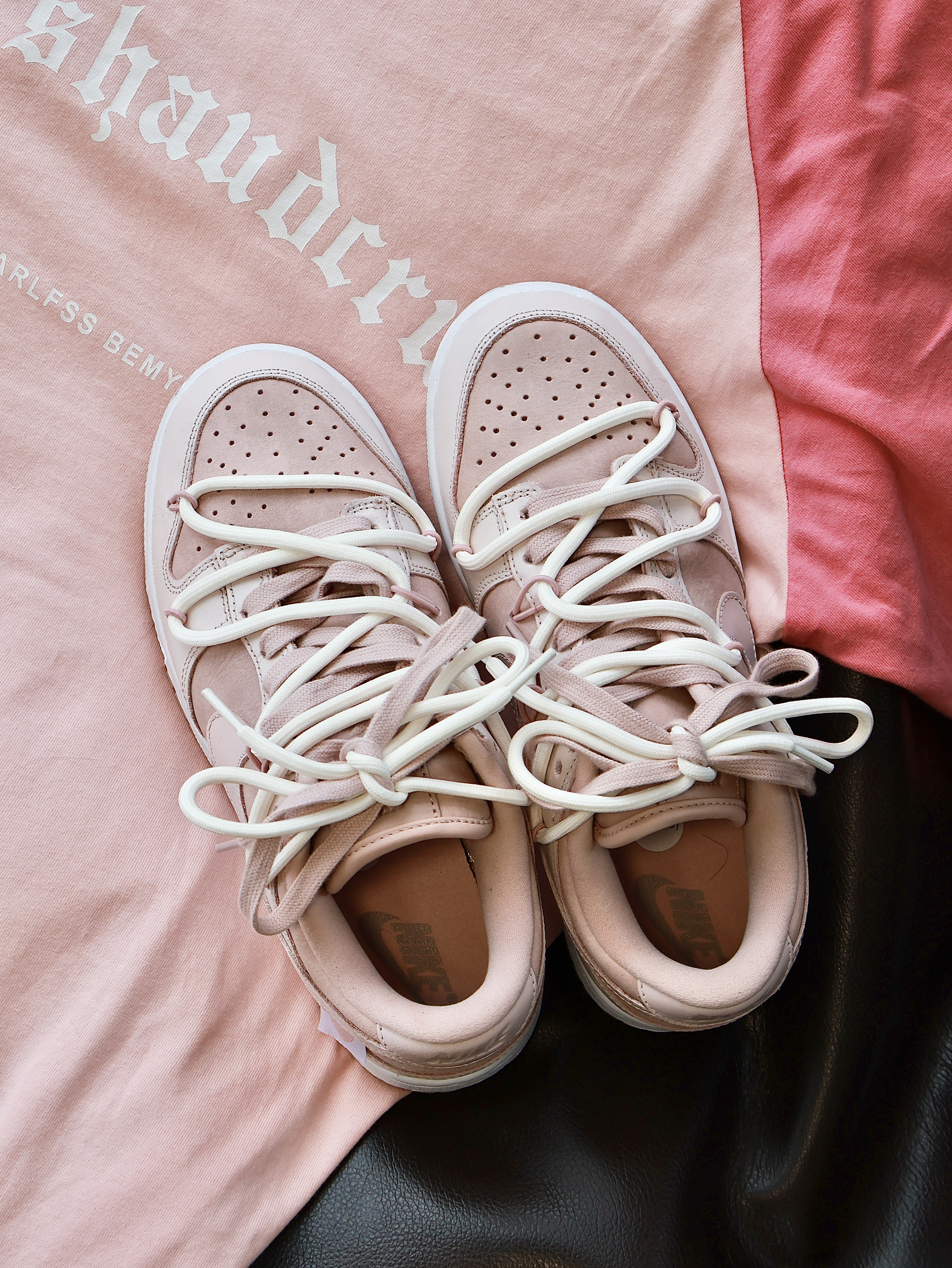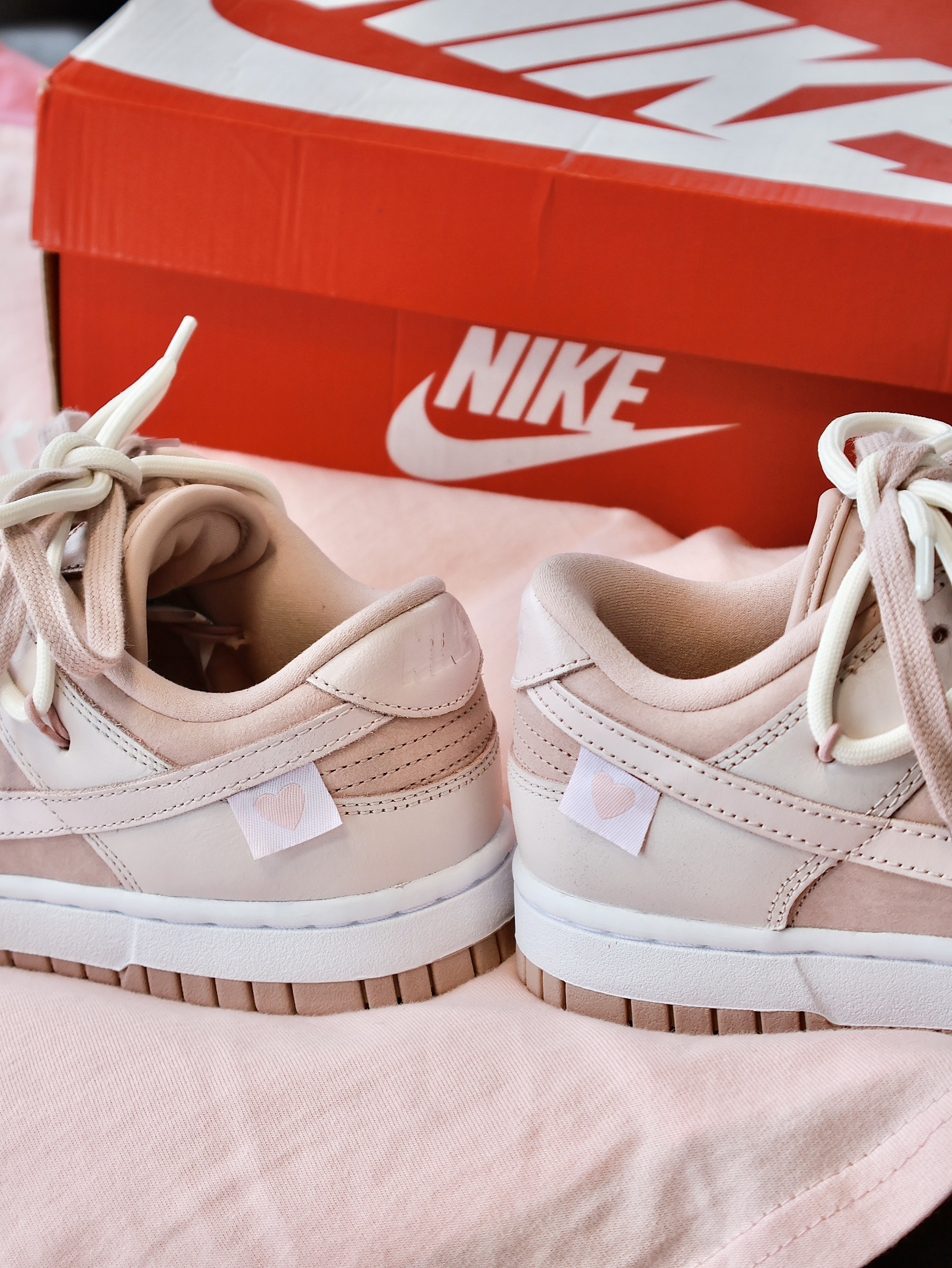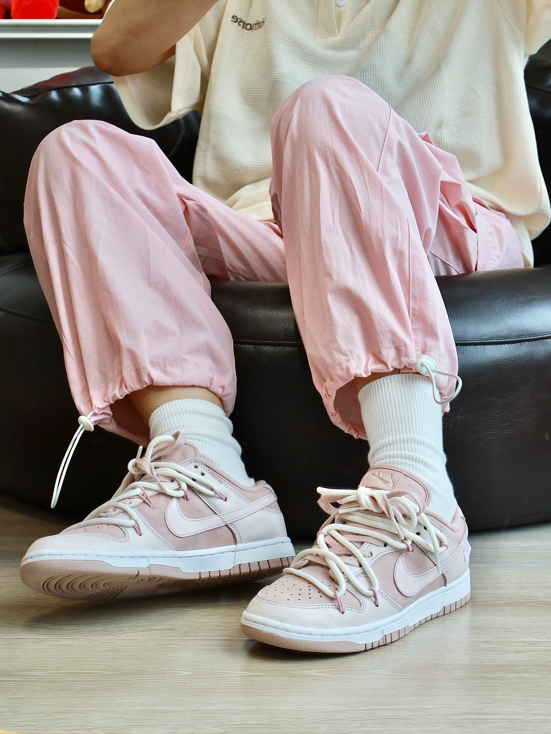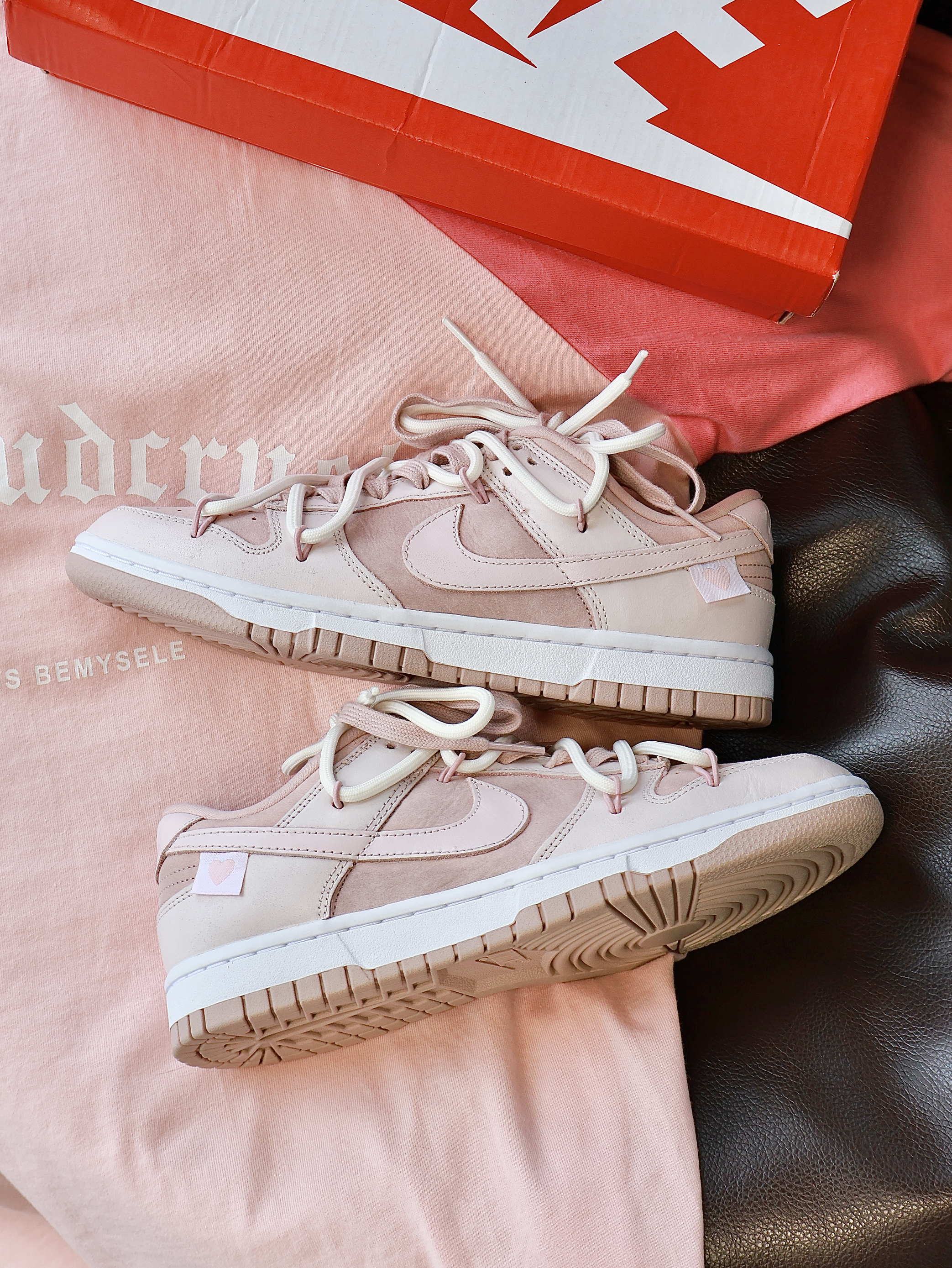定制dunk越来越卷了呀 这款奶呼呼的粉色dunk吼吼看 一眼心动的款式! 竟然叫草莓可颂!名字太可爱鲁 粉色调的刚刚好!鞋后跟还有一颗小小的手绘爱心❤ 少女心❤拉满了! 简直就是七夕礼物的完美灵感!