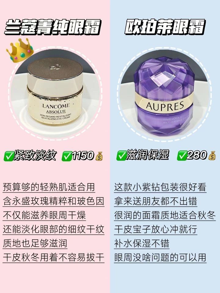 本篇笔记关联了Estee lauder/雅诗兰黛 小棕瓶熬夜眼霜 保湿抗皱淡化黑眼圈紧致提亮特润 第四代、欧珀莱 小紫钻时光锁抗皱紧实眼霜 改善细纹 提拉 正装、L'OREAL/欧莱雅 玻色因紧致抗皱20眼霜 抗老提亮淡黑眼圈水光充盈 20ml等商品,为用户提供真实的使用体验和购买参考。
