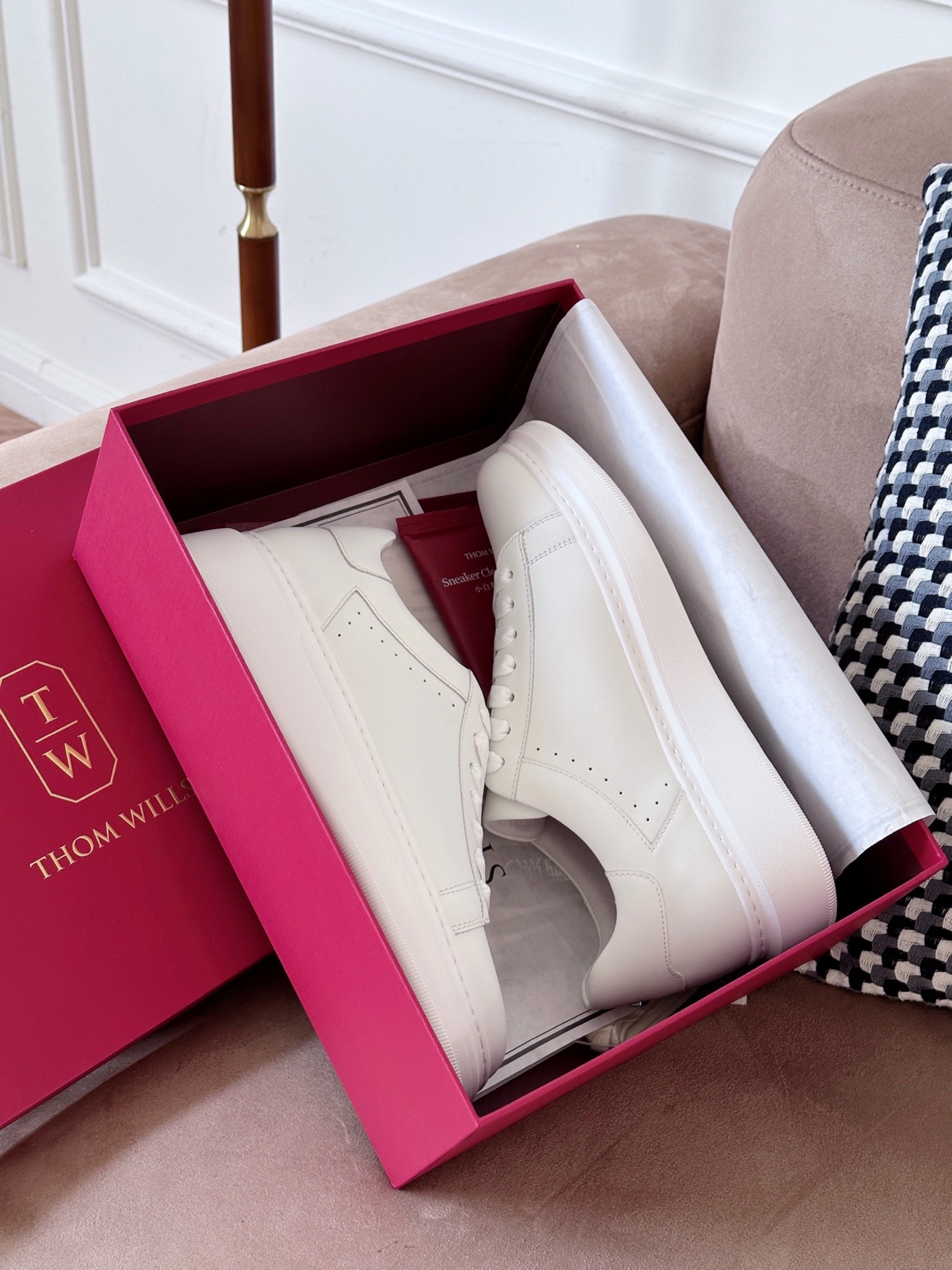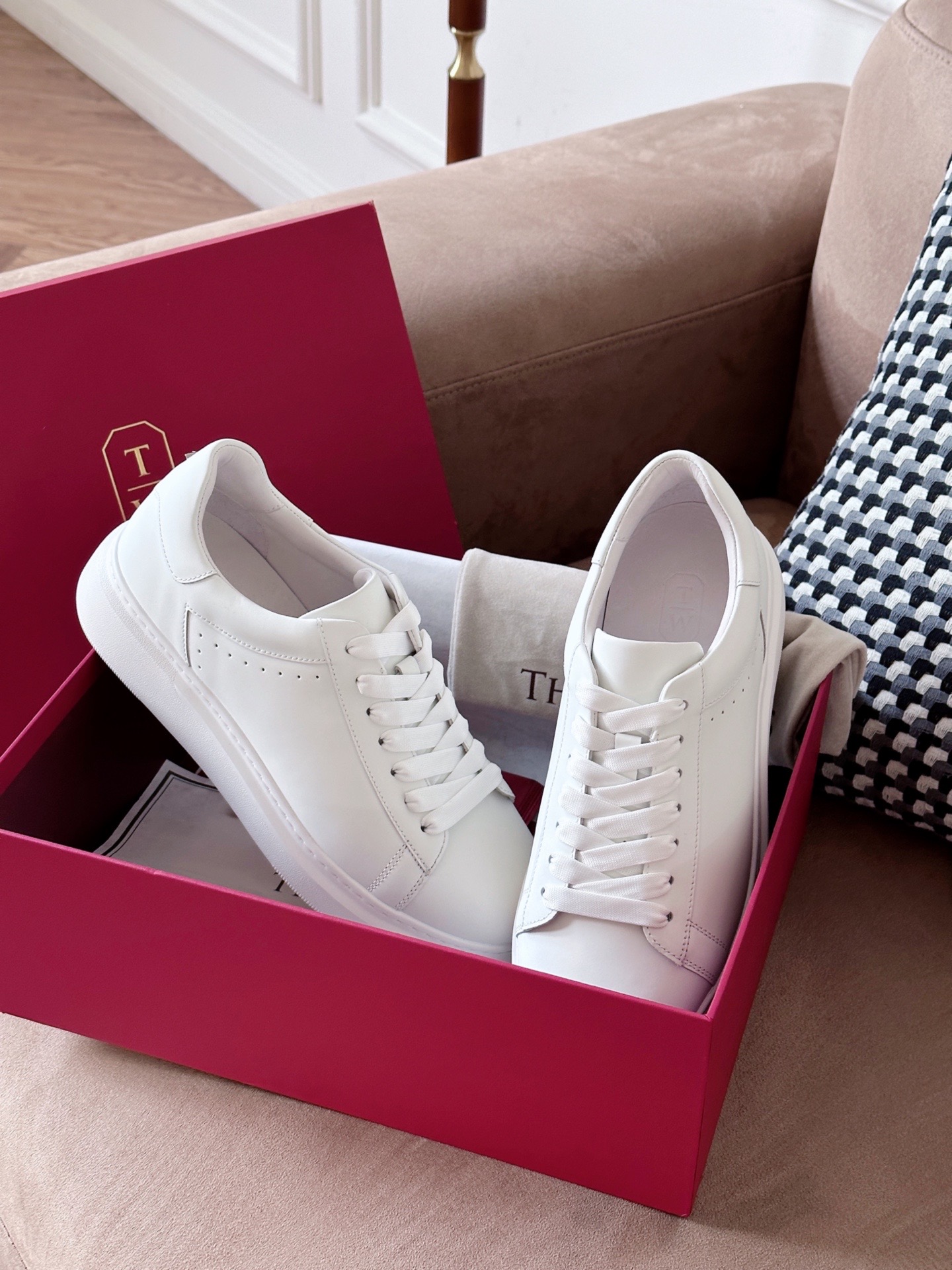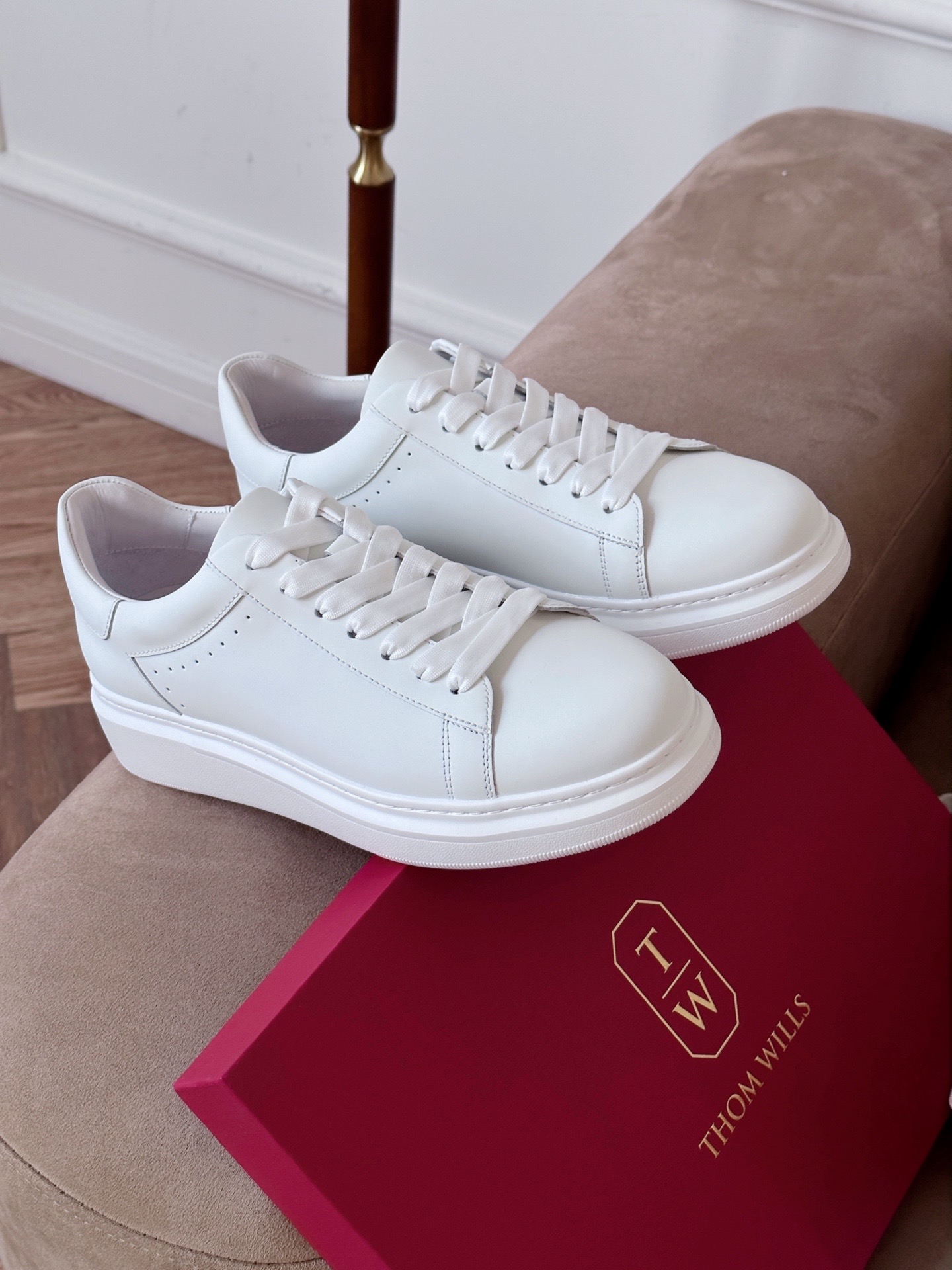 #ThomWills 明星同款小白鞋 三位数可以拿下的快乐 5.5厘米自然增高 巨显腿长 外形完全看不出有增高 鞋底设计已经有自然的流线 我是平时搭配休闲西装来穿 特别限售 强推一波 小牛皮很柔软 色调是冷白 试穿不会磨脚 发泡鞋底软度适中,回弹性可,足弓位置贴合得刚好,非常轻便好穿 开车走路都能穿,码数正