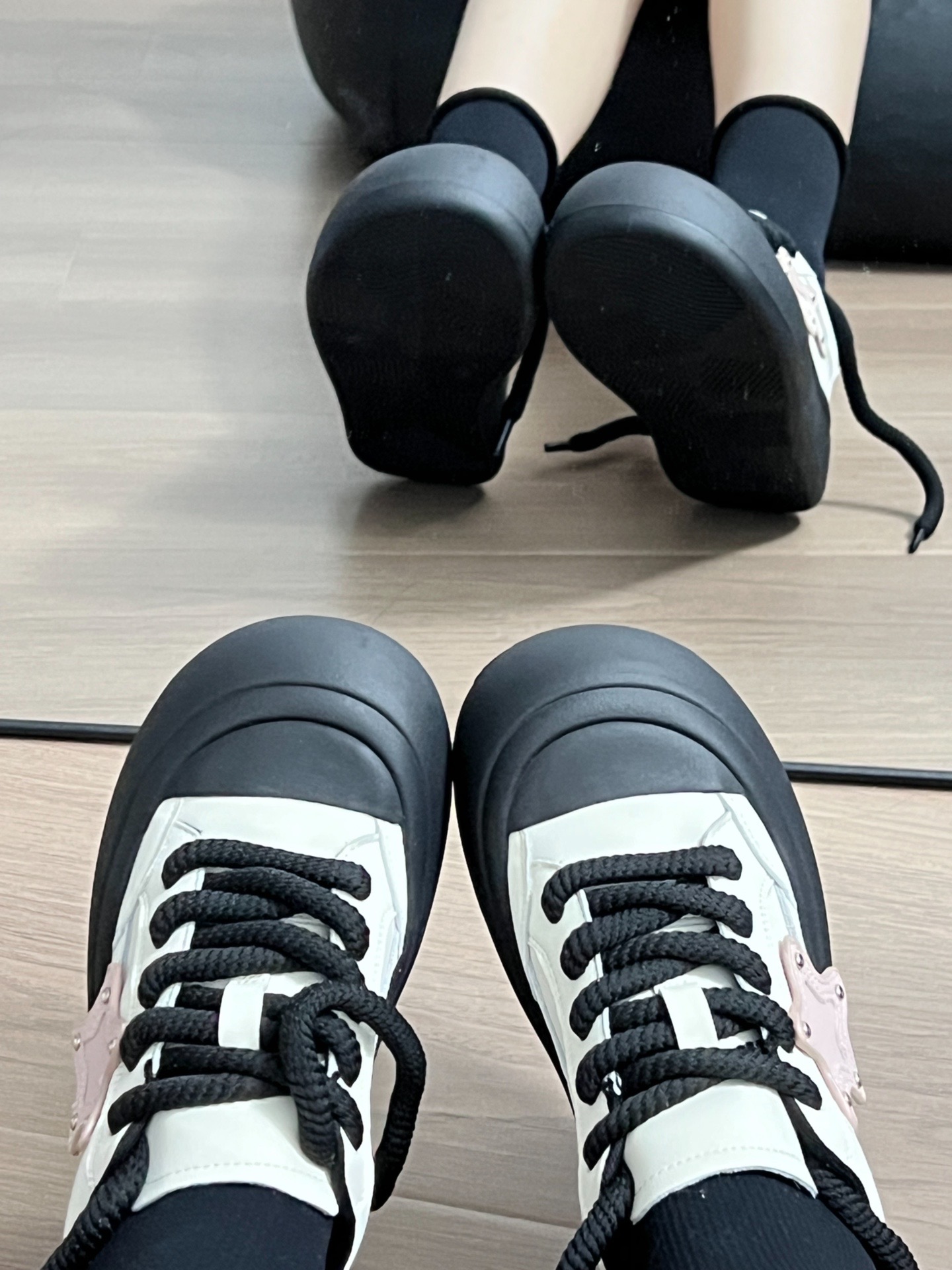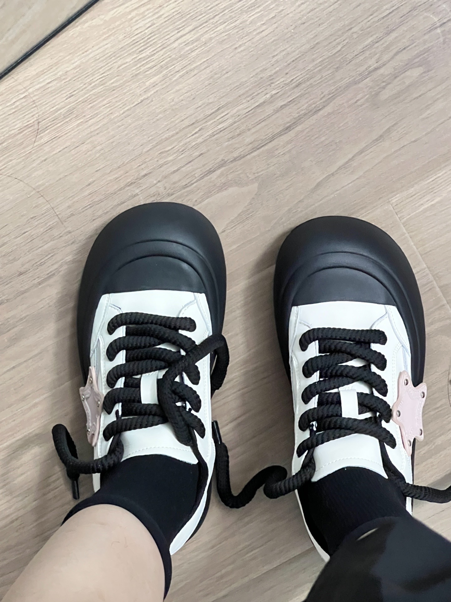 这双鞋看着就很可爱,没想到上脚也这么可爱 黑色的鞋底,侧面是粉色的星星装饰 鞋后跟上的字母是TTKJ,这个是他们的品牌名哦~ 上脚真的很可爱! 也很显脚小,真的超级喜欢!! #夏日宝藏板鞋 #TTKJ胖星鞋 #送这双TA会喜欢吗 #七夕超有排面的礼物 #板鞋好物分享
