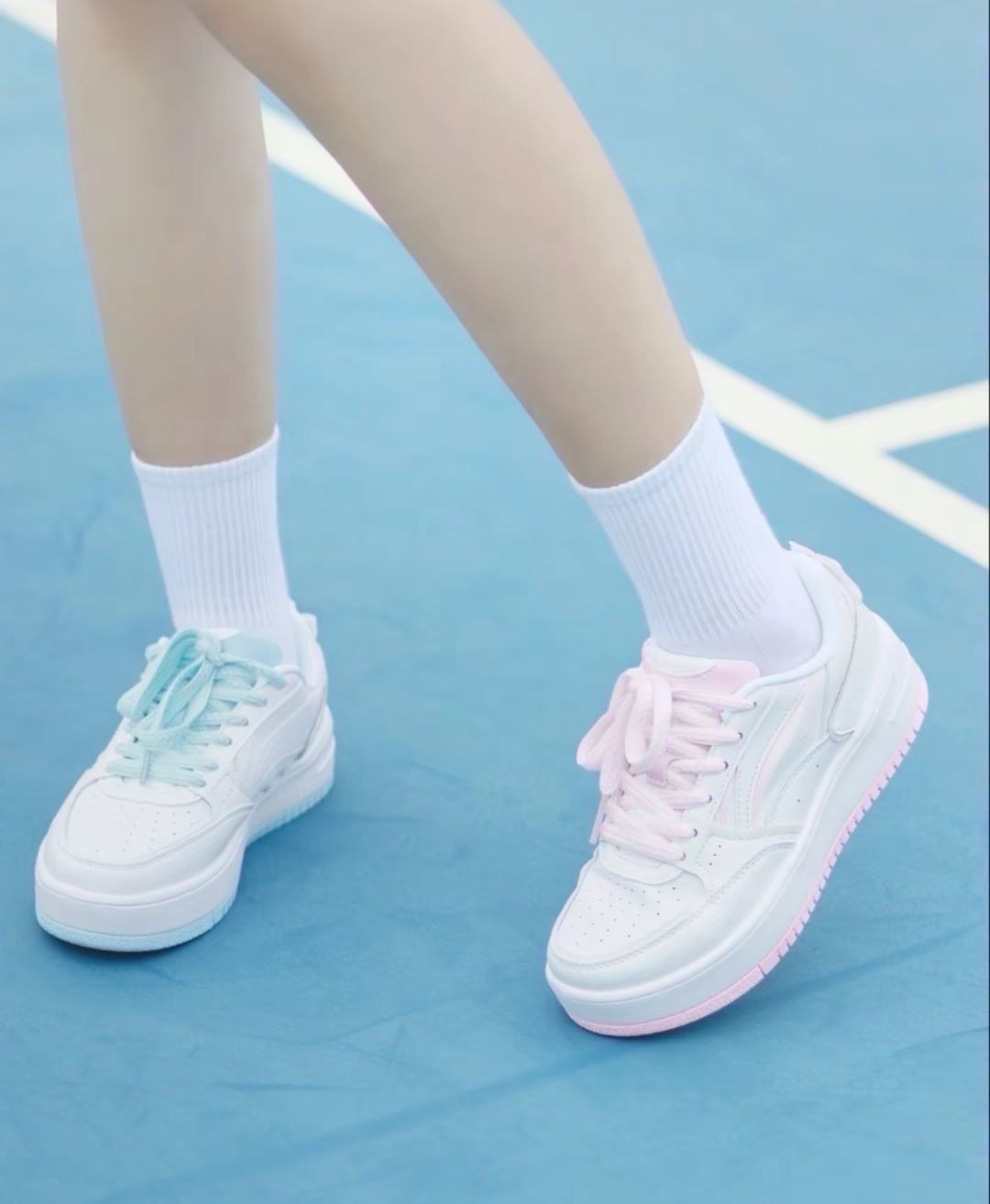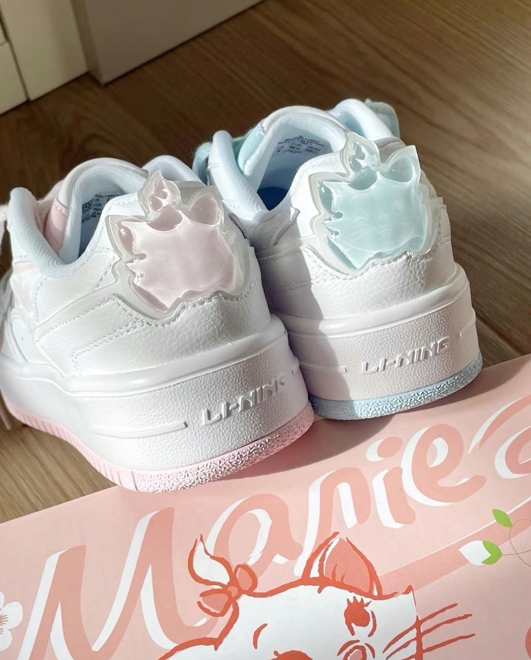 蓝粉鸳鸯款配色自己就可以 get 不用和姐妹凑啦 玛丽猫果冻后跟好 Q 鞋子也很轻踩上去软软的 联名鞋盒也粉嘟嘟的很好看! #李宁好物分享