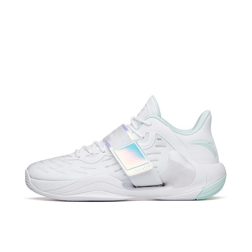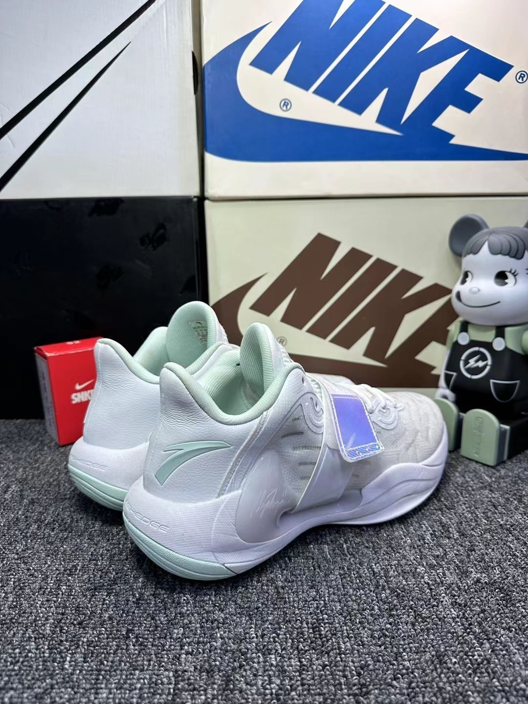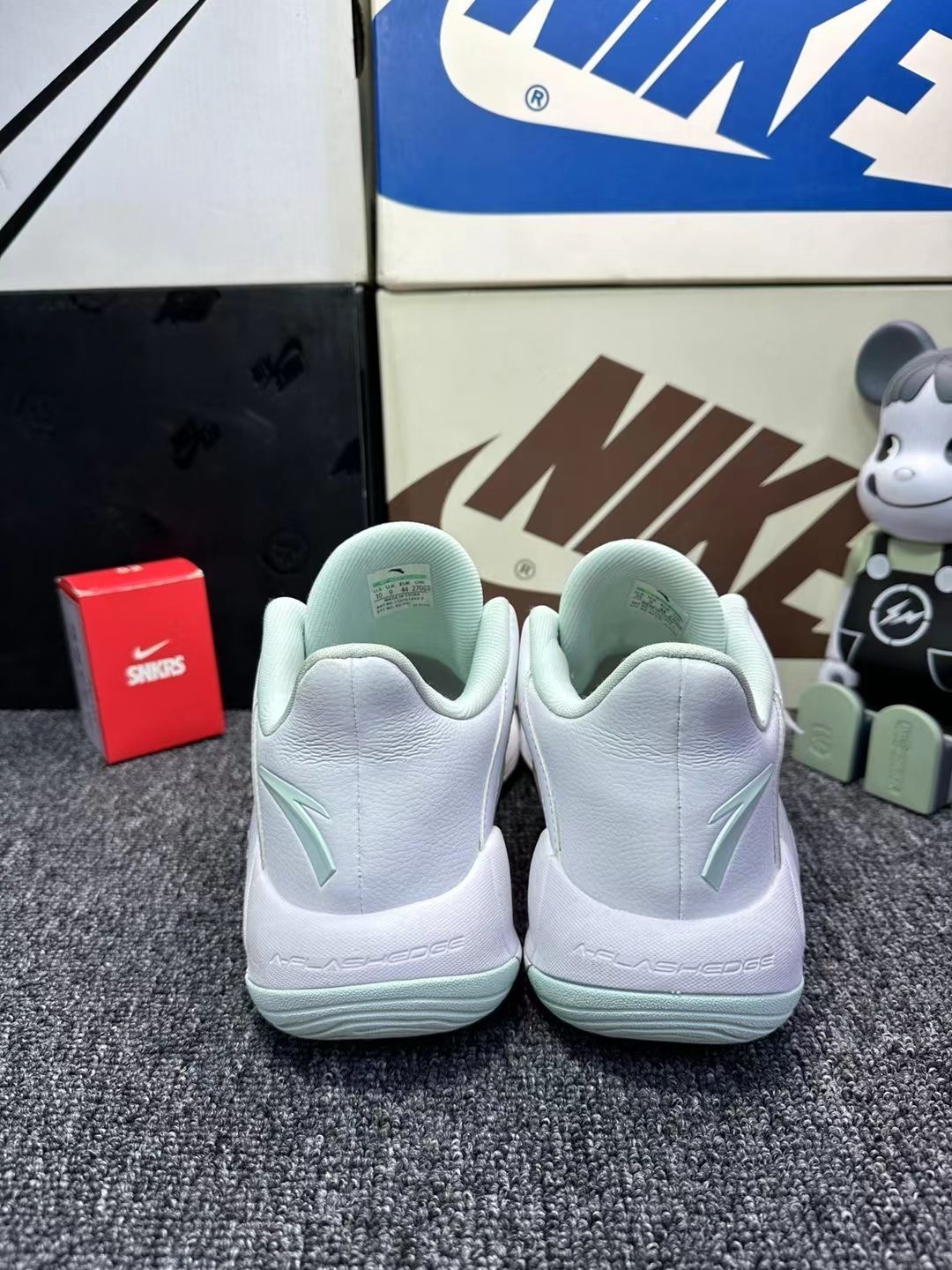 今日给大家分享的超级能打的实战篮球鞋来自安踏水花4米白配色。 这款篮球鞋配色清新靓丽,一看就有夏天的风格。搭载全掌氮科技的缓震,缓震极限非常高,脚感澎湃。鞋子附有绑带的设计,增加了中段的包裹和足弓支撑。前掌鞋面强度和包裹非常不错,后跟锁定感略显不足。鞋面轻薄透气,出汗多也不怕。后跟也有安踏的标识,非常的帅气!大底抓地力和耐磨性都非常不错!简直是学生党必备的一款夏日篮球鞋!