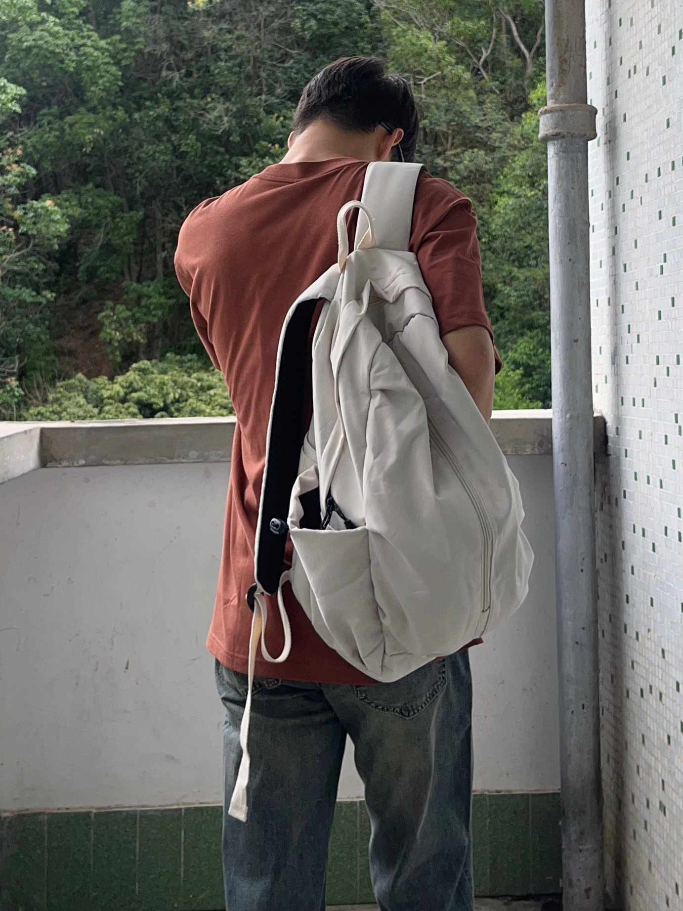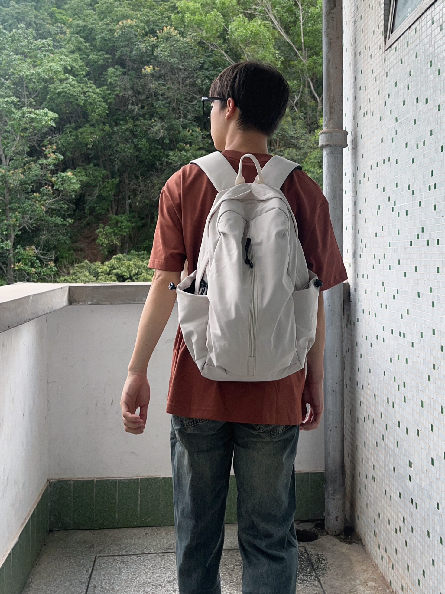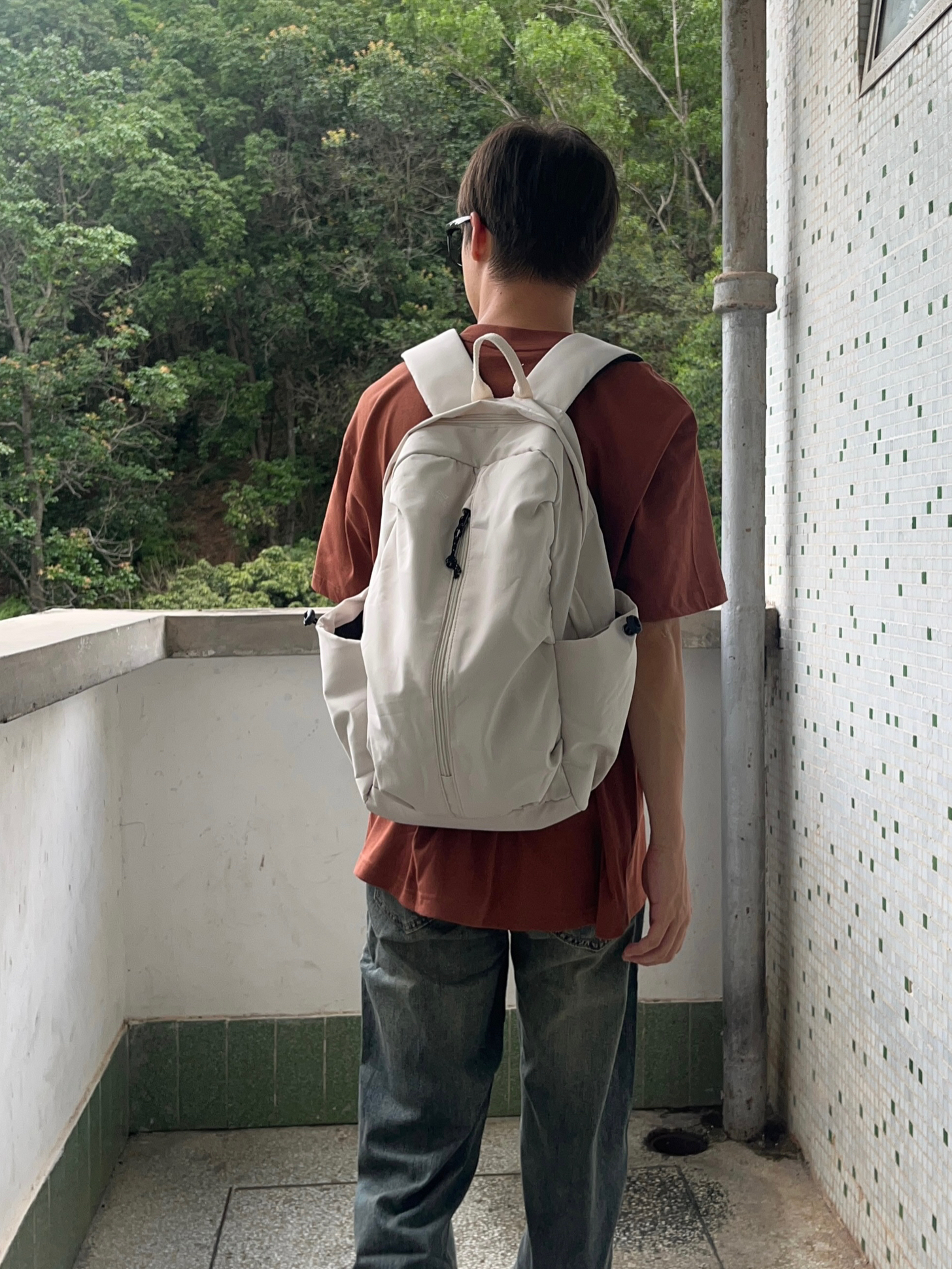 - 男生永远都需要一个实用性强的双肩包,而米白色的双肩包更是一款时尚百搭的选择。 ☁️👜 / 双肩包有着分散重量的功能,可以让你的背部承受的重量大大降低,既可以放书包,也能装小清新文具和电脑。 💻📚 - 米白色更是让你展现自己的优雅和知性,还能轻松搭配各种造型,是商务或休闲场合必备的单品。 💼🎉 / 绝对是夏天户外出行必备单品!