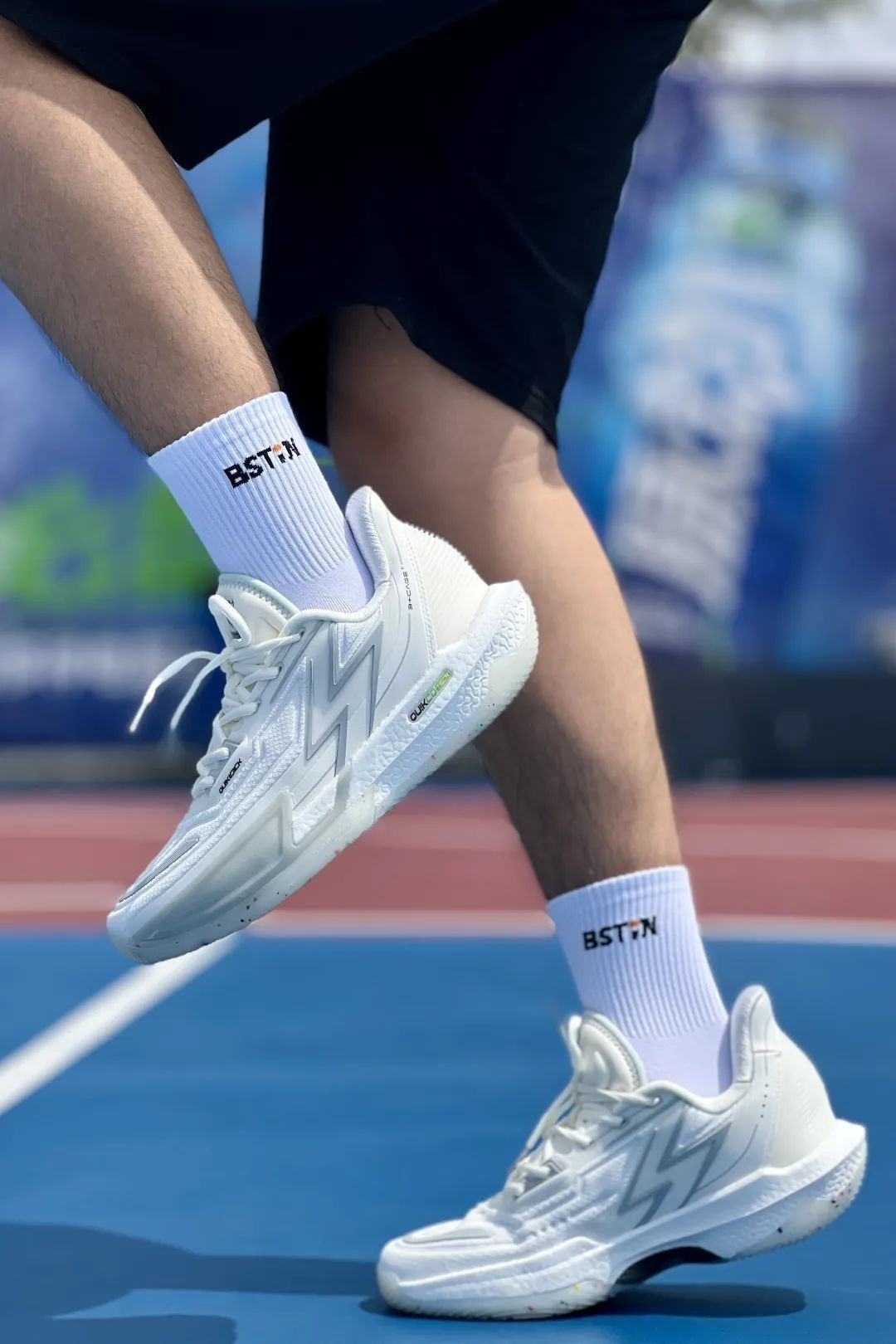 前掌龙骨高度约14mm,后掌高度约20mm,精准的6mm落差,大大提升第一步爆发力,有效提升后卫突破速度; 快平衡系统,提供急停急起鞋脚稳定性,上脚突破相当顺畅; 42码实测克重在370克左右,相当轻盈,测试中未出现拖沓或掉跟现象; 前两组眼孔侧边搭载的动态绑缚结构,可以帮助上脚者自如地调节前掌鞋面包裹; 前掌侧边TPU上包与加宽的底盘,保证了速度型后卫急停急起的防侧翻风险,后跟大面积嵌入...