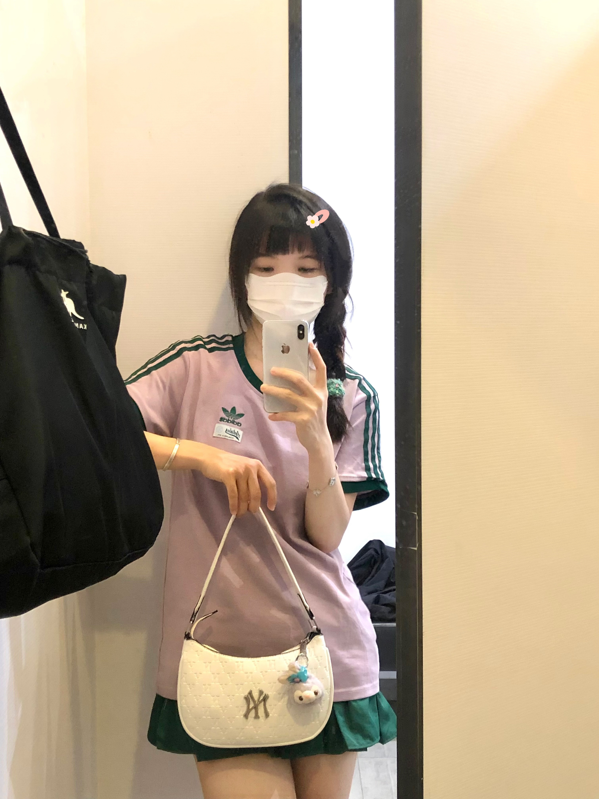 ⚫️⚪️ . 哈哈哈哈 最近心动的衣服太太太多啦! 这一套我真的好喜欢呐 ☺ . 👔: adidas 短袖 👜: MLB 腋下包