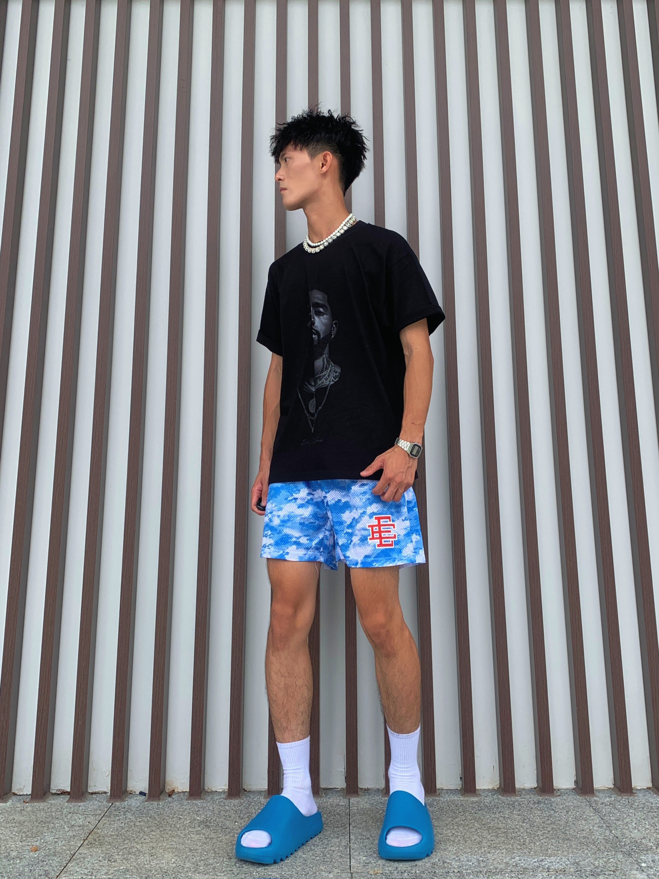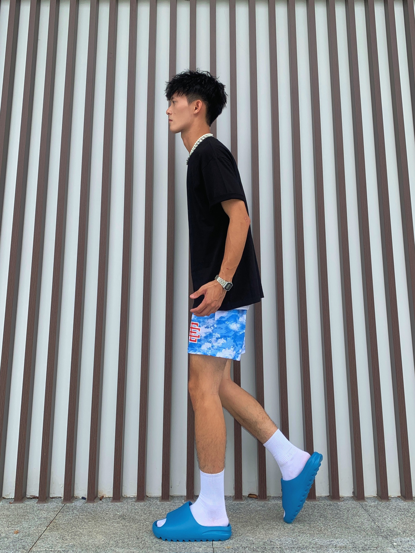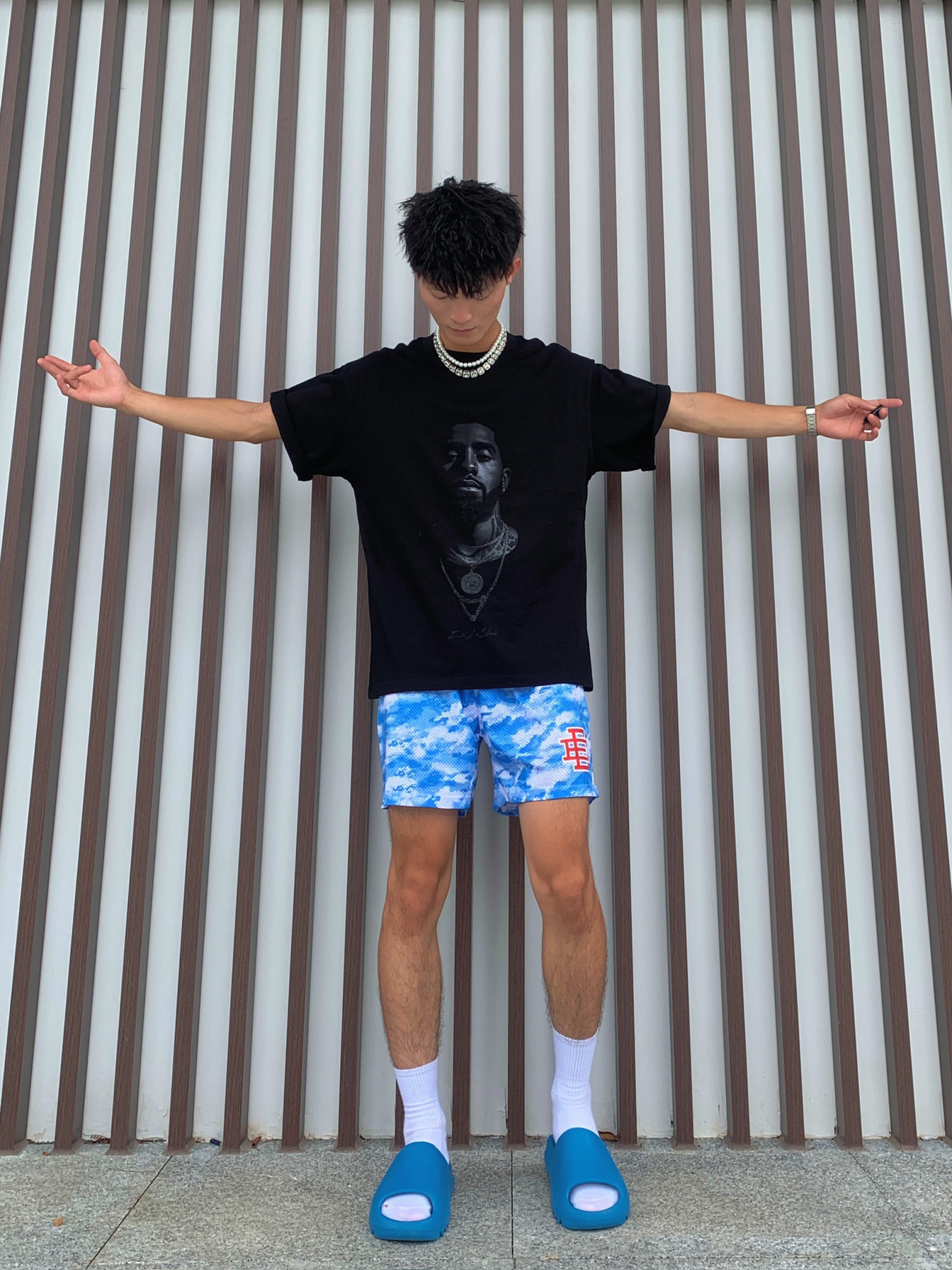 🏙️做夏天的穿衣狂热爱好者,颜色与质感都是需要搭配巧妙,才是帅的道理,介绍今天的美式球员穿搭5.0⛹🏻♂️ 🙋🏽♂️身为体育生或者拥有黄黑皮最适合啦🫵🏻 📸黑色欧文人像T恤➕蓝白天空色美式短裤✅ — — — — — — — — — — — — — — — — — — 1️⃣👕 🧩ZEILASHUAI的夏季NBA球星凯里·欧文数码直喷短袖,美式小圆领的针织螺纹,上身效果版型硬挺透气图案不可裂,美...