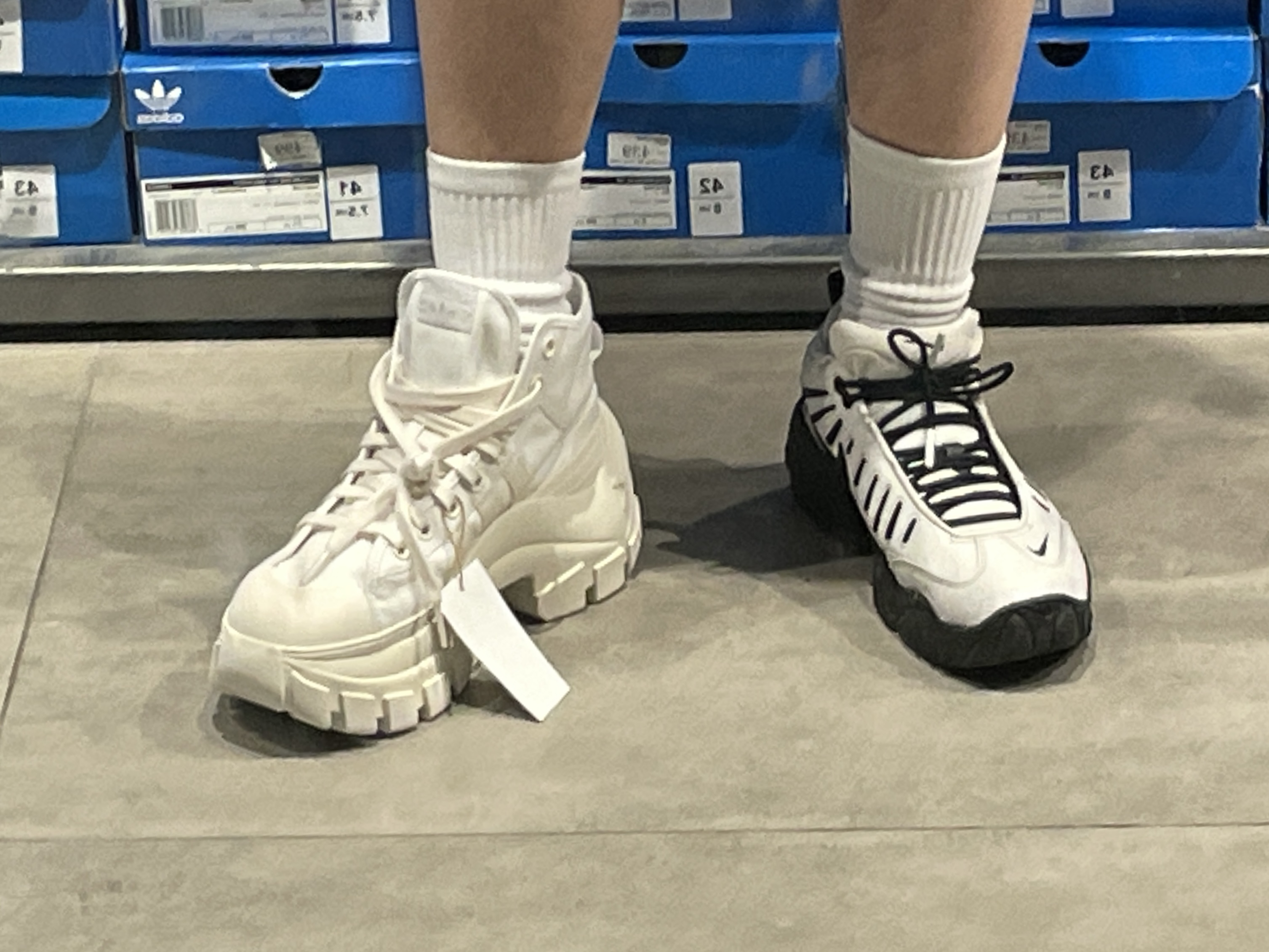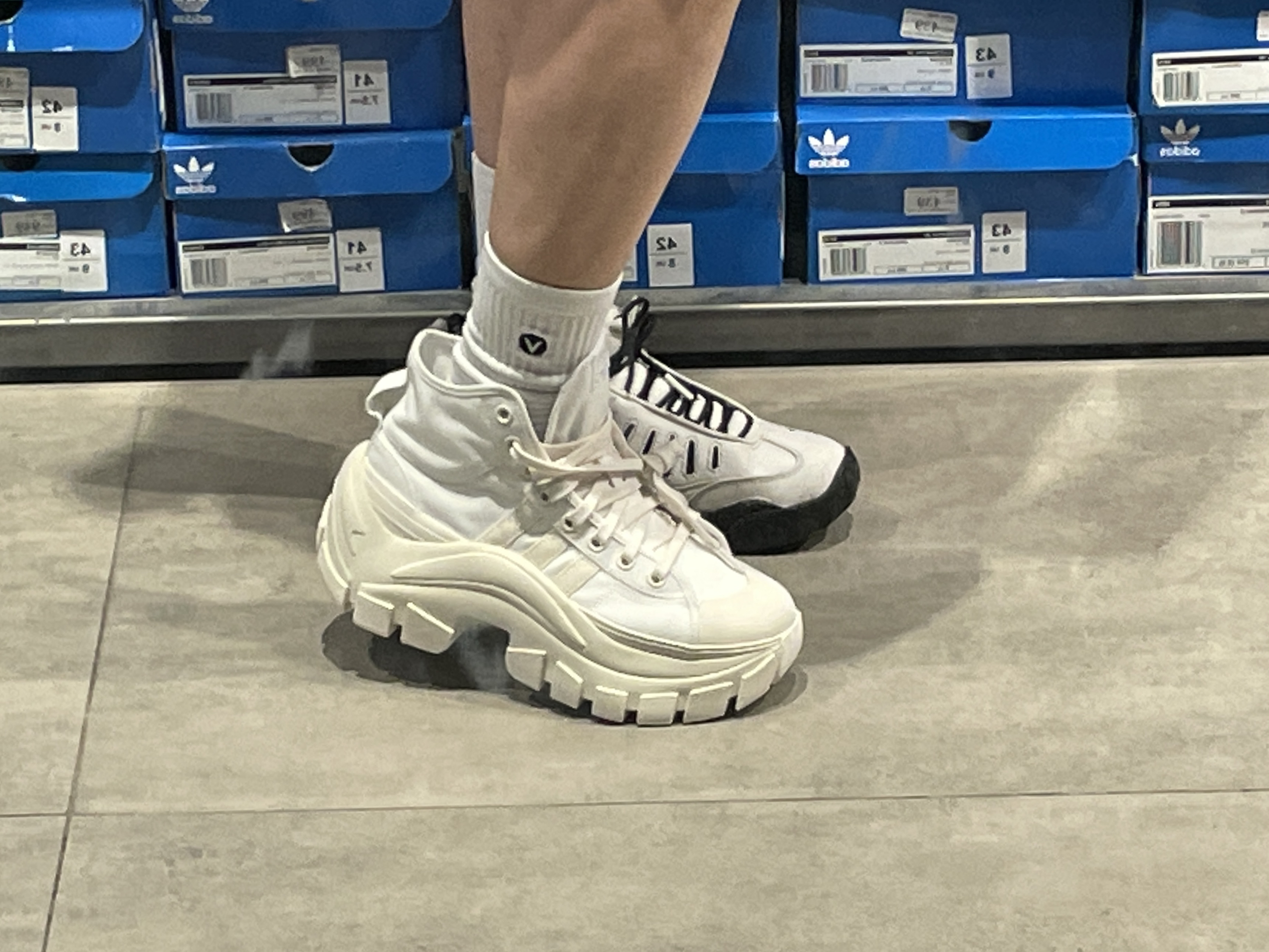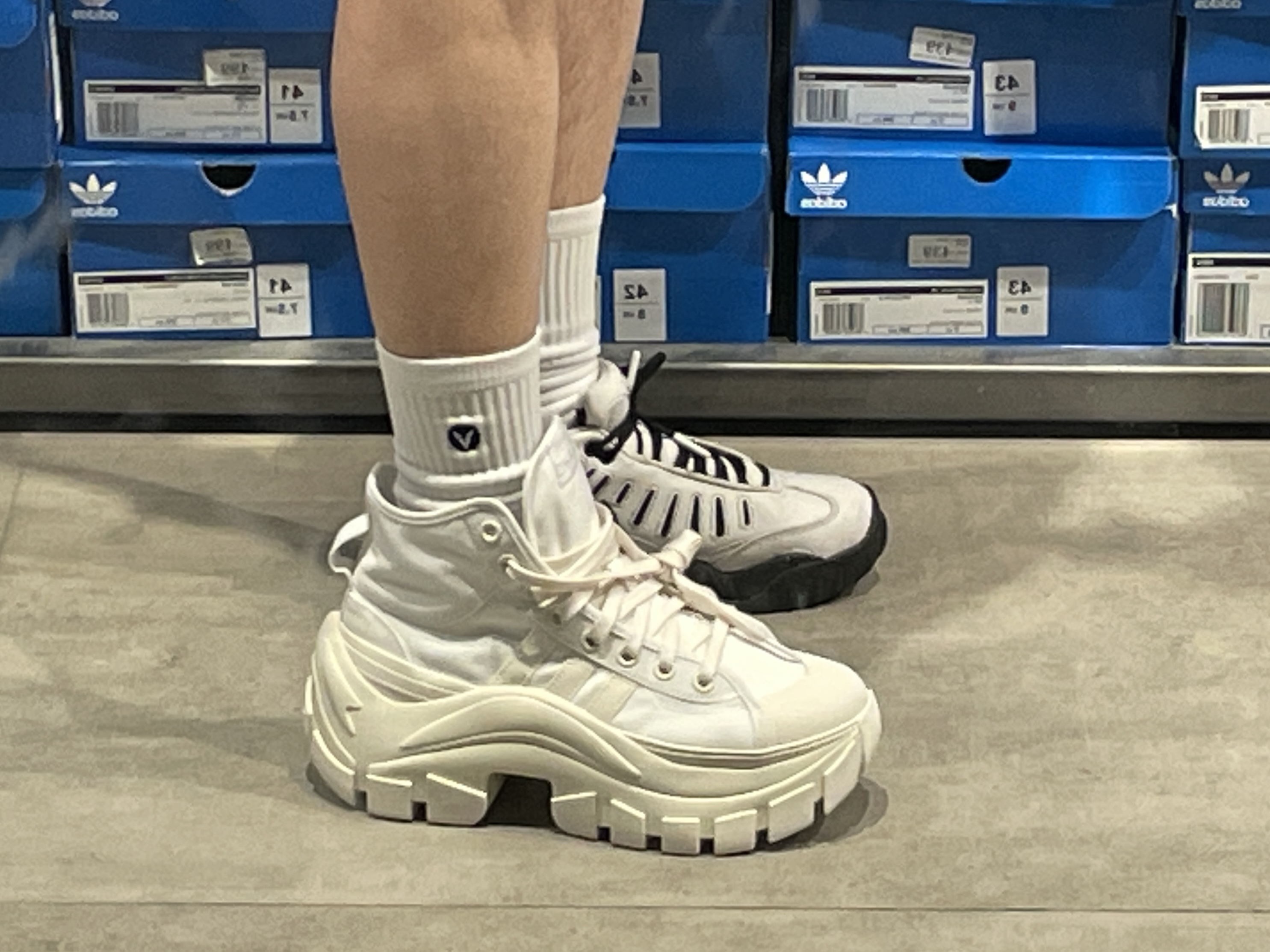 在奥莱看见的好鞋 阿迪的增高鞋 有男码 夸张的外底和造型 实在是增高 搭配阔腿裤会很好看 价格适中 而且小众