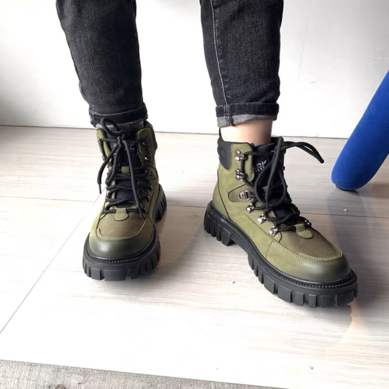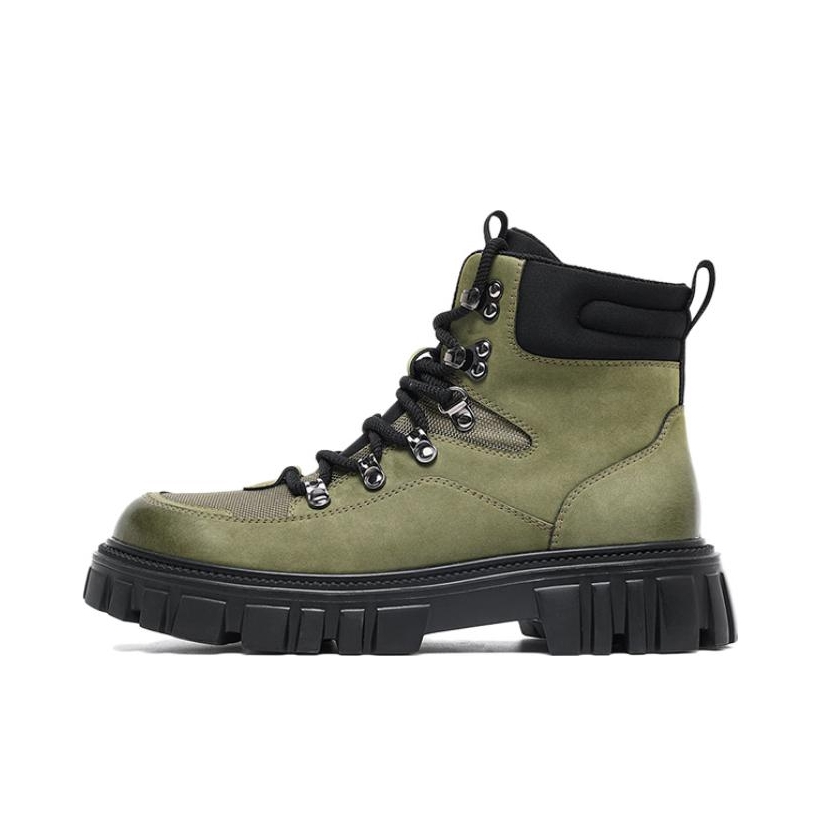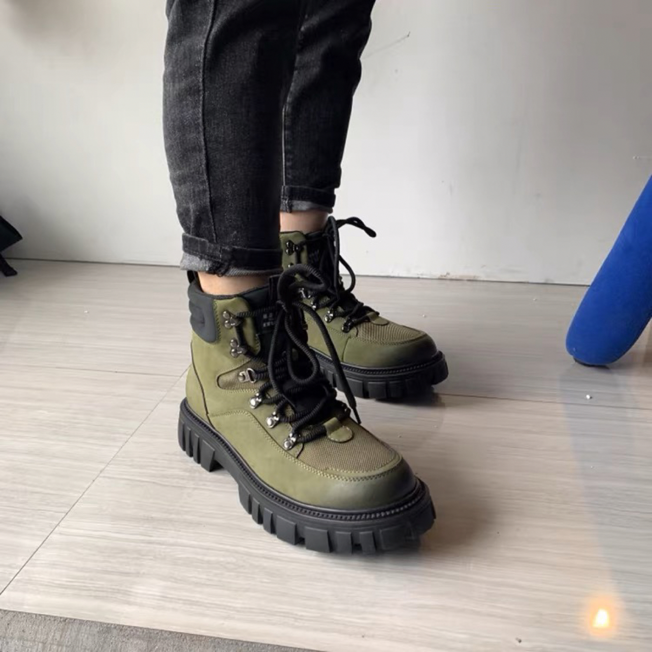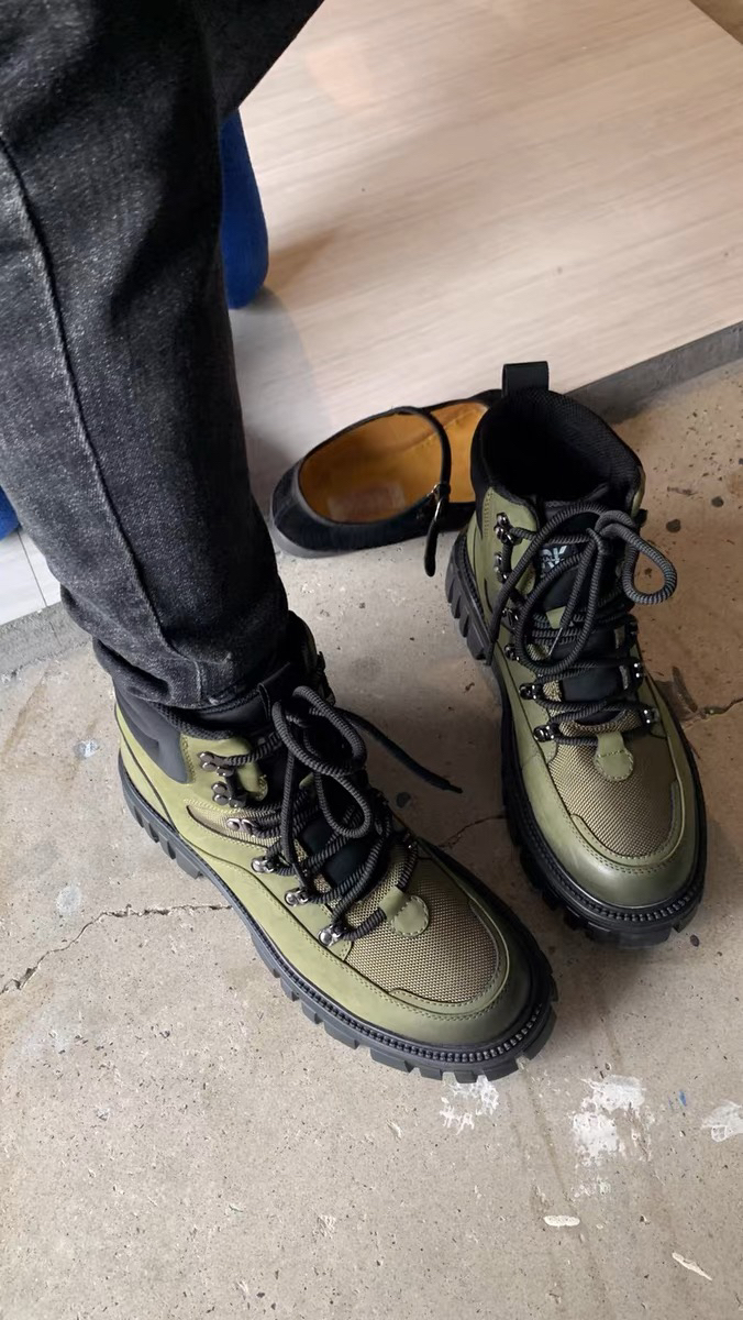 👟球鞋名称:马克华菲军绿马丁靴 🔍设计亮点:户外工装风,厚底增高5cm,秒变182靓仔 ⛹️实战感受(缓震/包裹/抓地力):橡胶大底,防滑耐磨 📃总结评价:搭配工装裤,运动裤牛仔裤,都很稳。也许能扣篮🏀