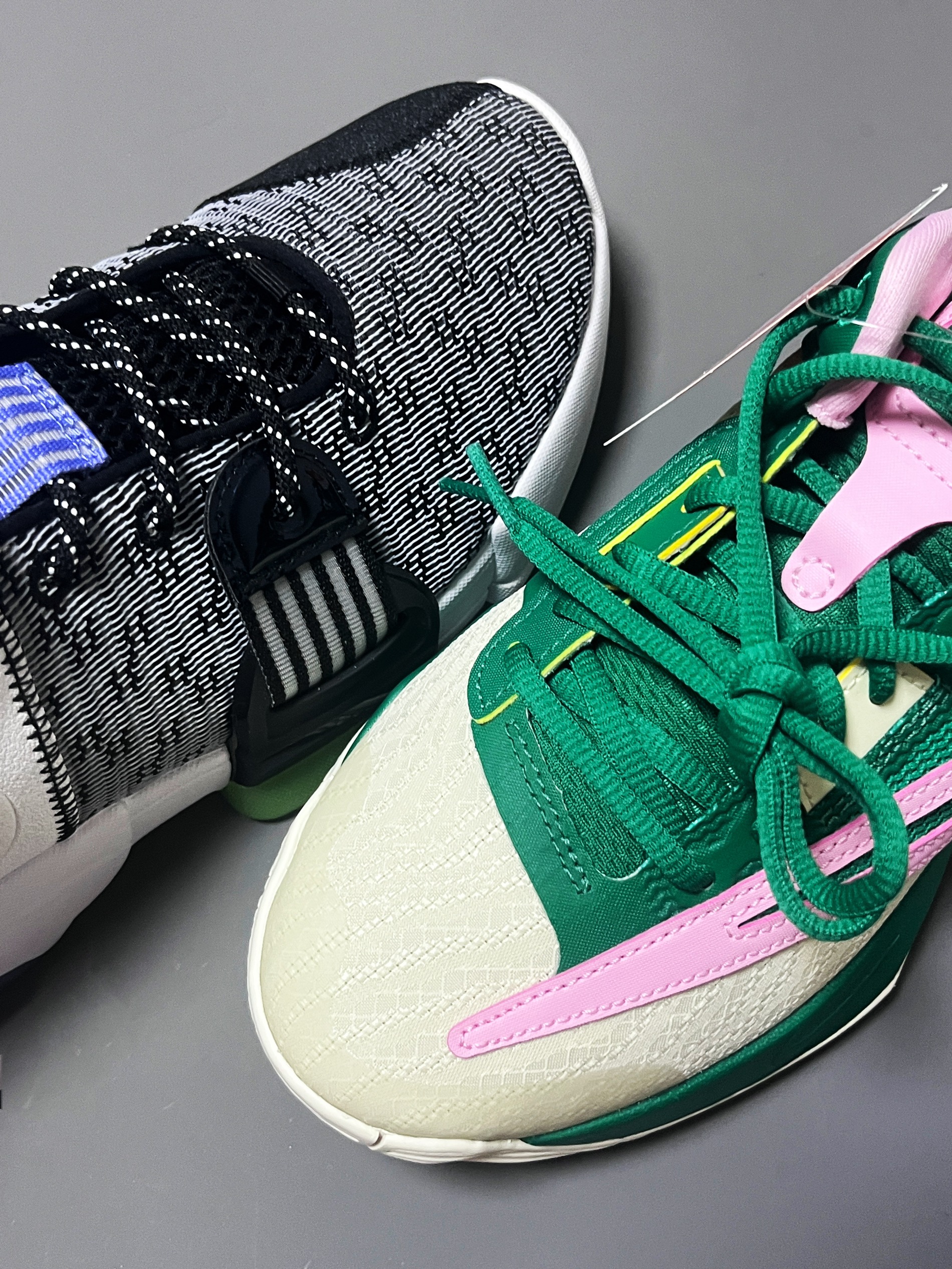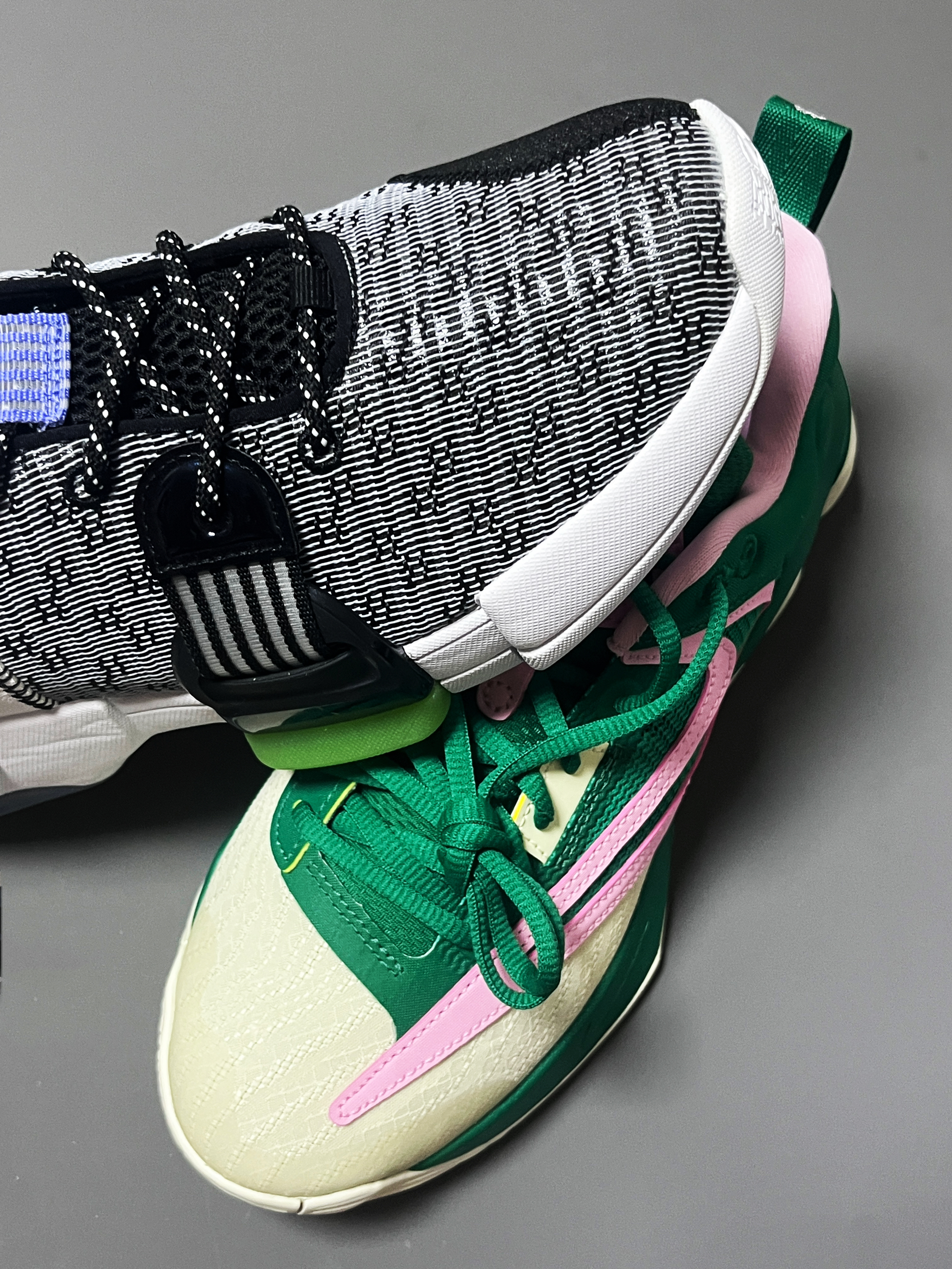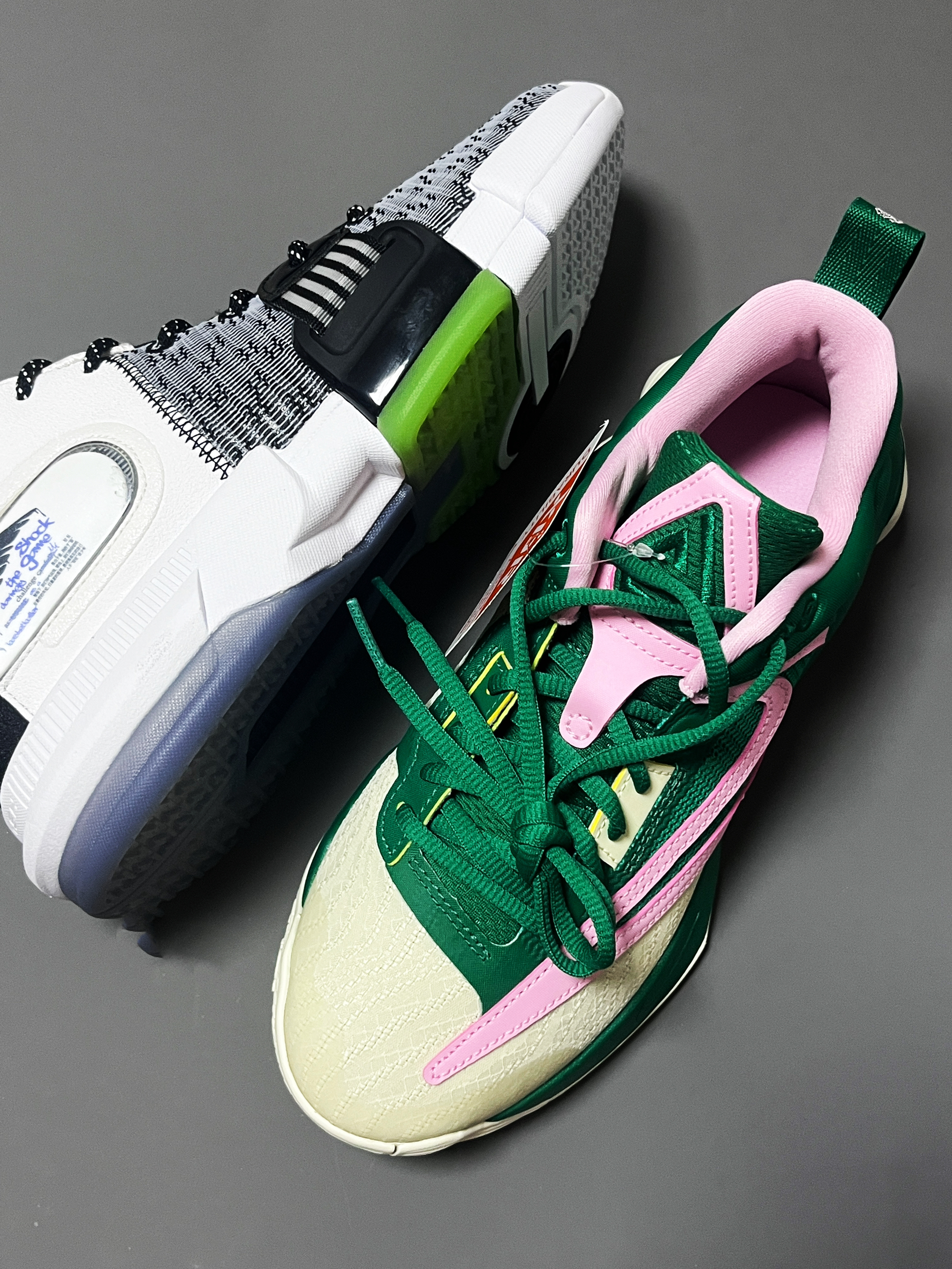 halo 阿迪来了,本期带来两双实战训练篮球鞋!一双是国产的安踏轻狂2 另一双则钩子的字母哥支线3代! 首先,我先说说这双字母哥支线3代,整双鞋配色看上去还是很整体的,造型流线感也比较出色!鞋面看起来还是很轻薄的,透气性应该是不错的! 鞋头位置的内侧有一块热熔的补强,实战的时候保护性还是不错的; 球鞋的后半段材质相对较厚,而且外置填充很厚,虽然港宝的面积还比较可观,但是内置填充非常薄。 鞋底的纹路...
