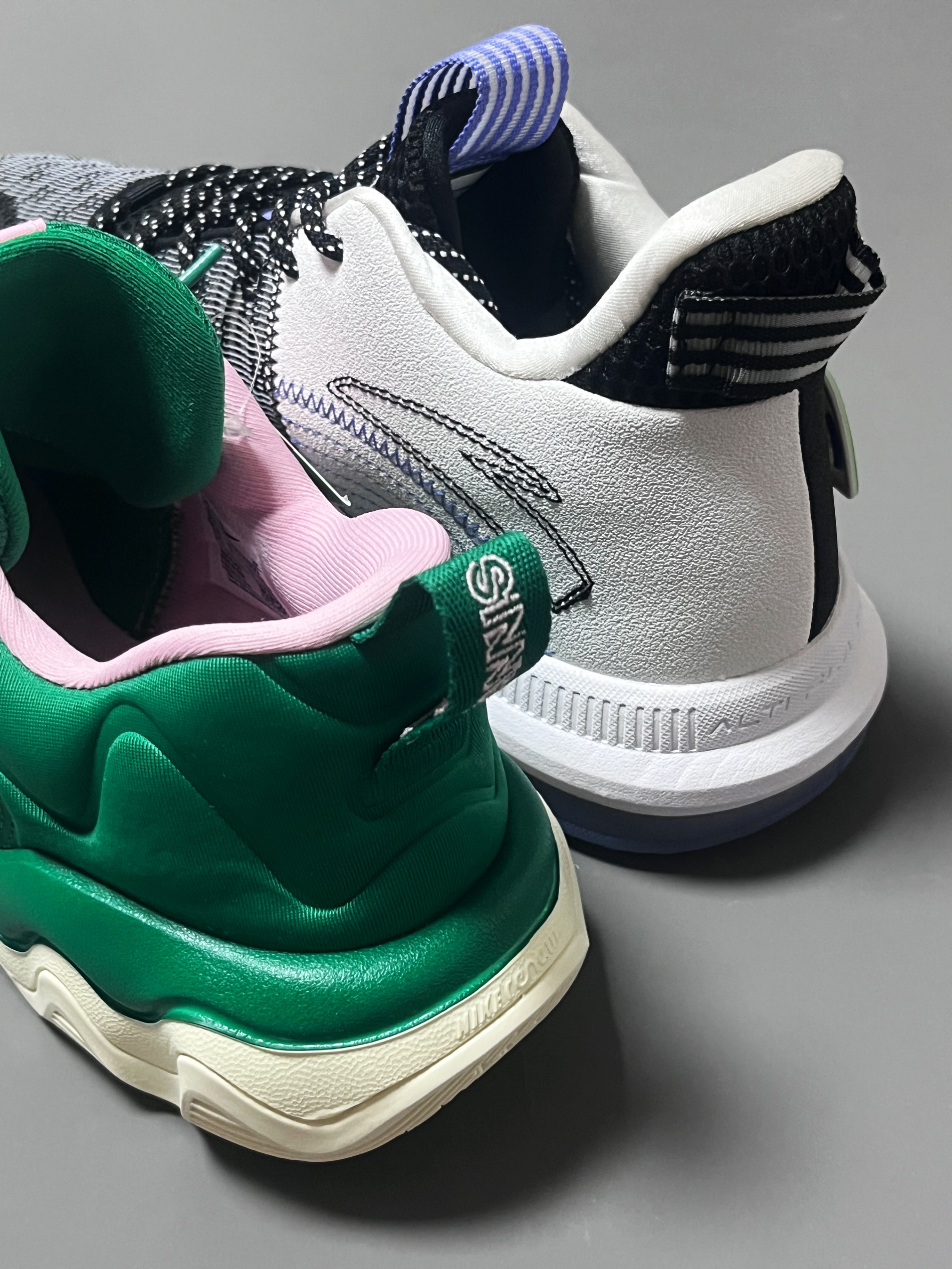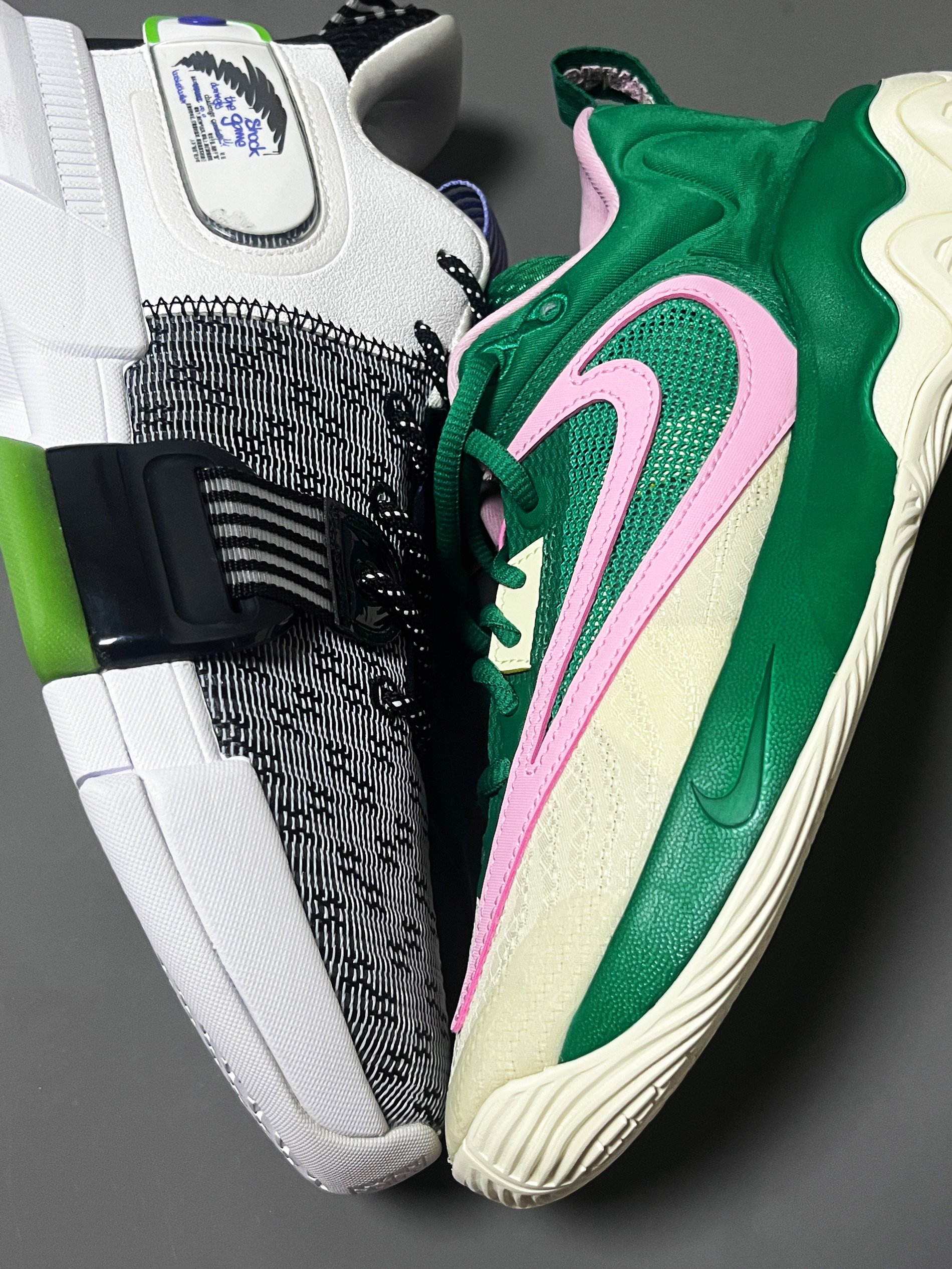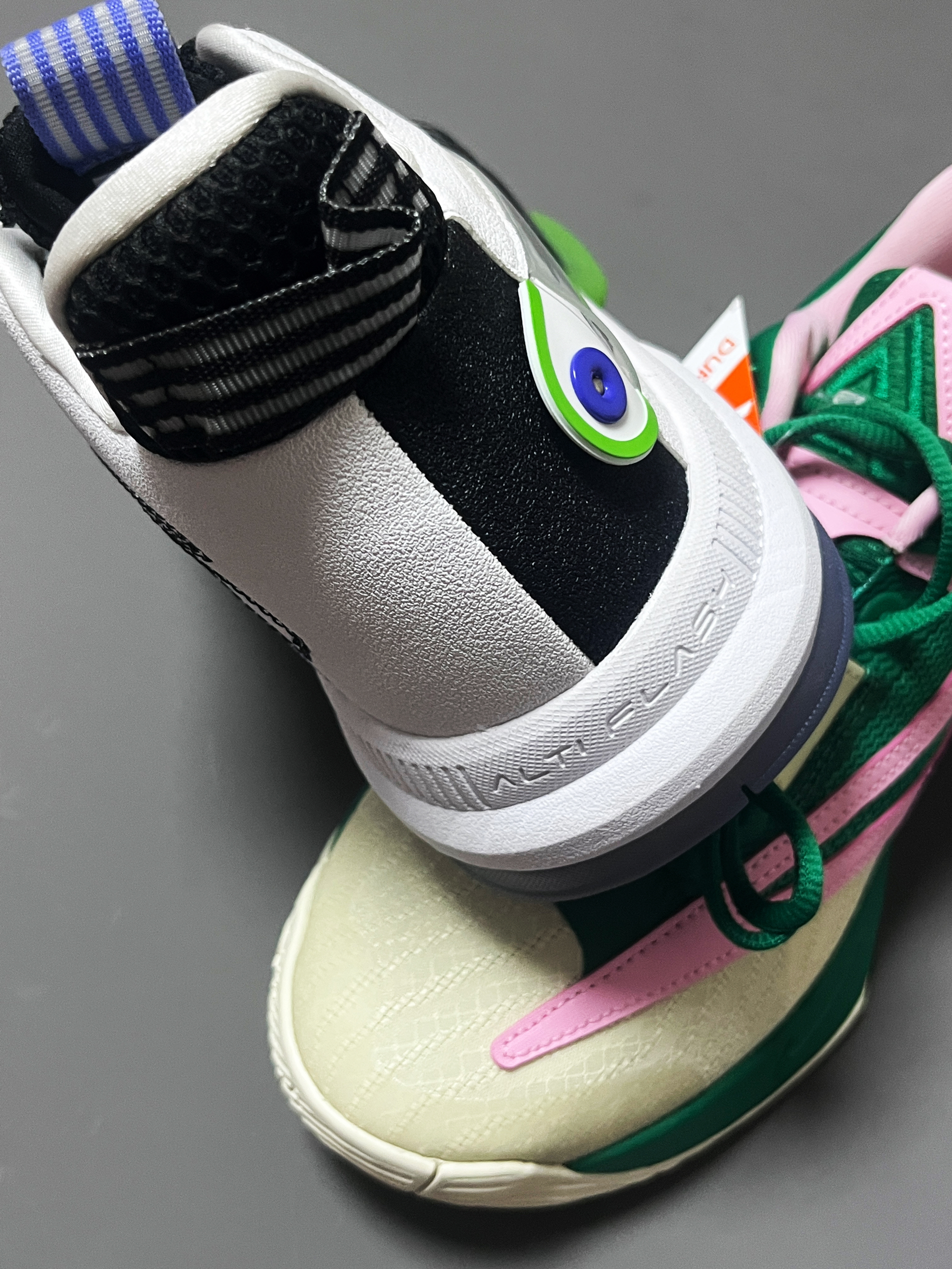 halo 阿迪来了,本期带来两双实战训练篮球鞋!一双是国产的安踏轻狂2 另一双则钩子的字母哥支线3代! 首先,我先说说这双字母哥支线3代,整双鞋配色看上去还是很整体的,造型流线感也比较出色!鞋面看起来还是很轻薄的,透气性应该是不错的! 鞋头位置的内侧有一块热熔的补强,实战的时候保护性还是不错的; 球鞋的后半段材质相对较厚,而且外置填充很厚,虽然港宝的面积还比较可观,但是内置填充非常薄。 鞋底的纹路...