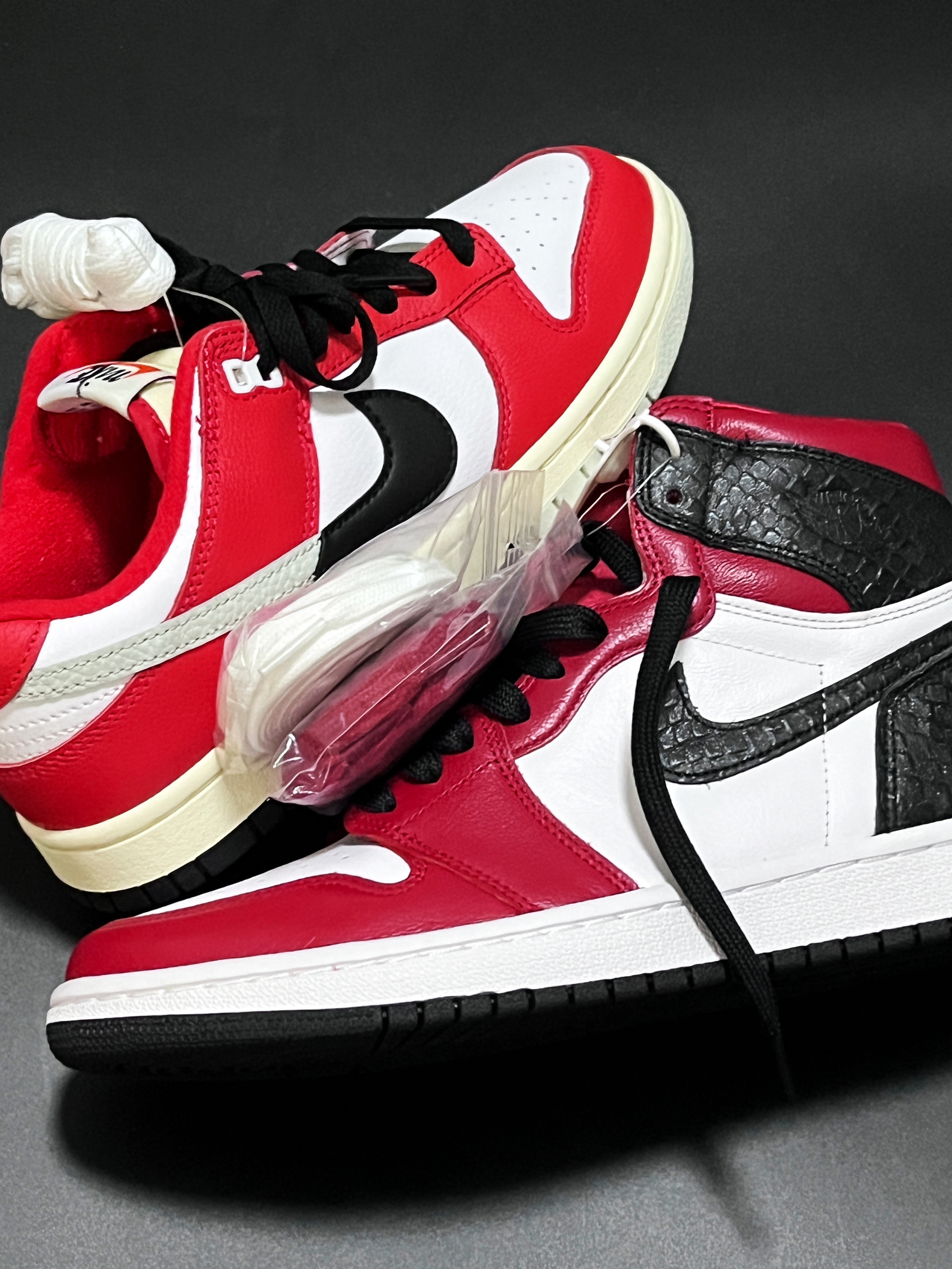 halo 阿迪来了,本期带来两双芝加哥配色的潮鞋,分别是这双最近发售的dunk “chicago split”和这双早先的aj1 “蛇纹芝加哥”! 首先,我们先来说说这双dunk “芝加哥”,整双鞋以经典 “Chicago” 三色调打造,白色皮革鞋身辅以红色皮革覆层,鞋侧 Swoosh 采用黑灰色调拼接而成。鞋舌、鞋垫以拼接式标志呈现,致意 Nike 的过往与现在。 最后以白色中底搭配黑灰双色组成...