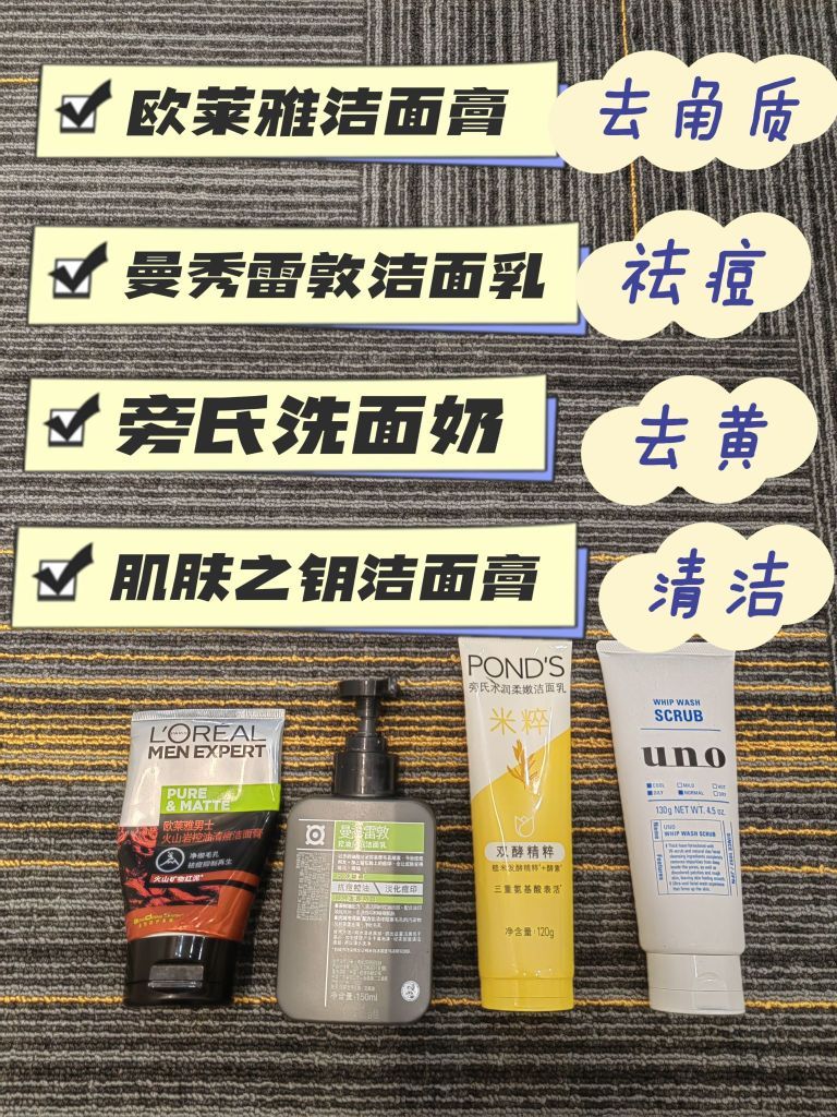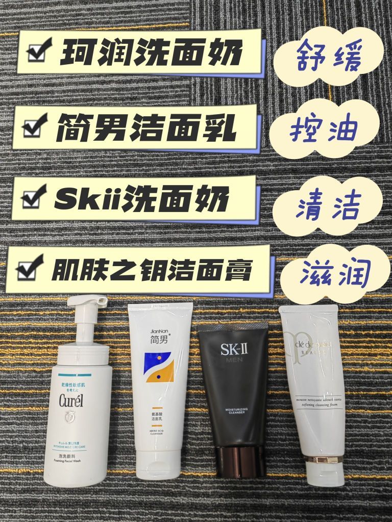 同学们平时一定要好好洗脸 不然皮肤状态只会越来越差 可以根据自己的肤质去挑选 喜欢温和一点的可以选简男洗面奶 它里面有32%的氨基酸表活、清爽去油 洗完脸上光滑水润,一点也不黏腻
