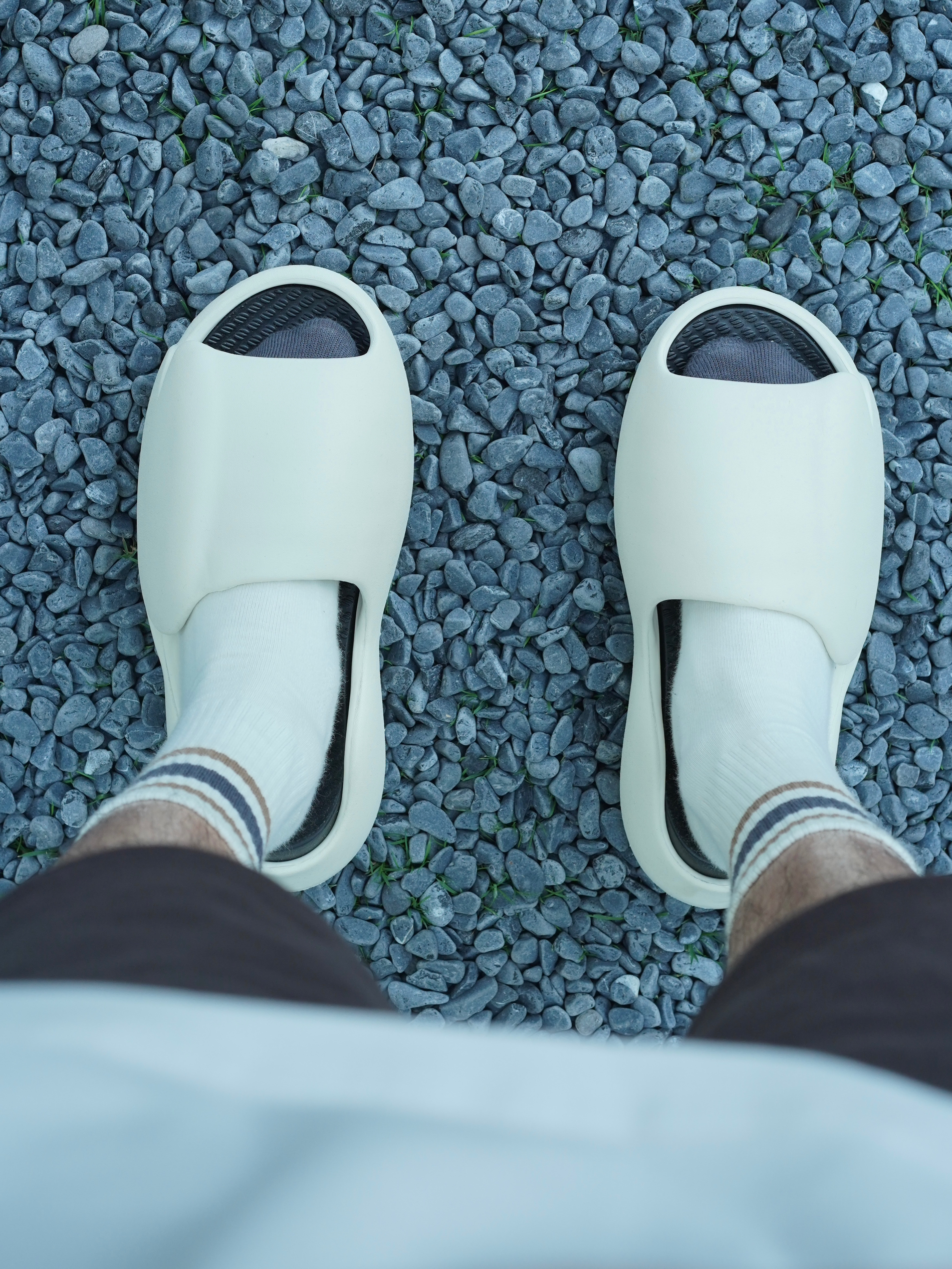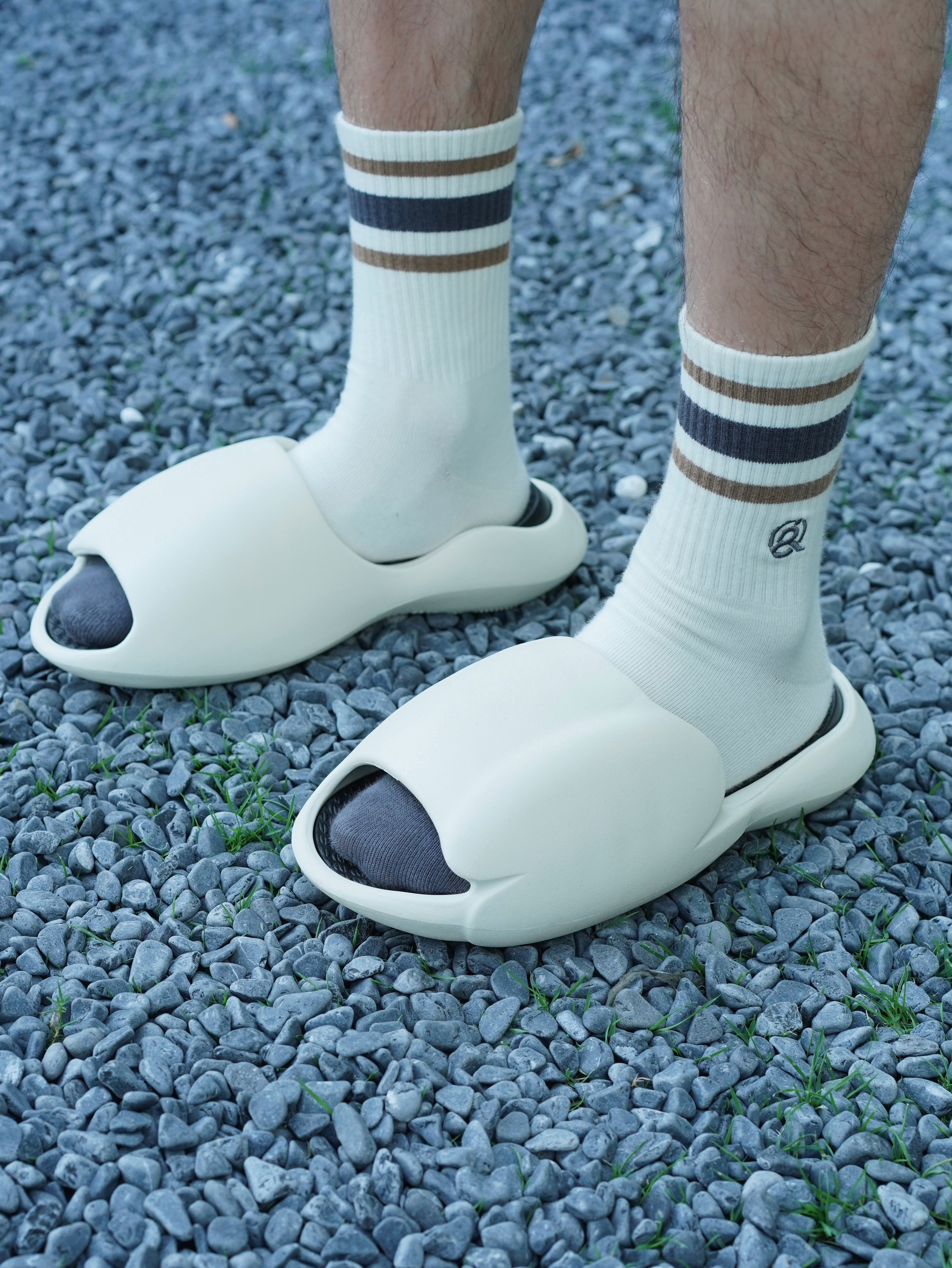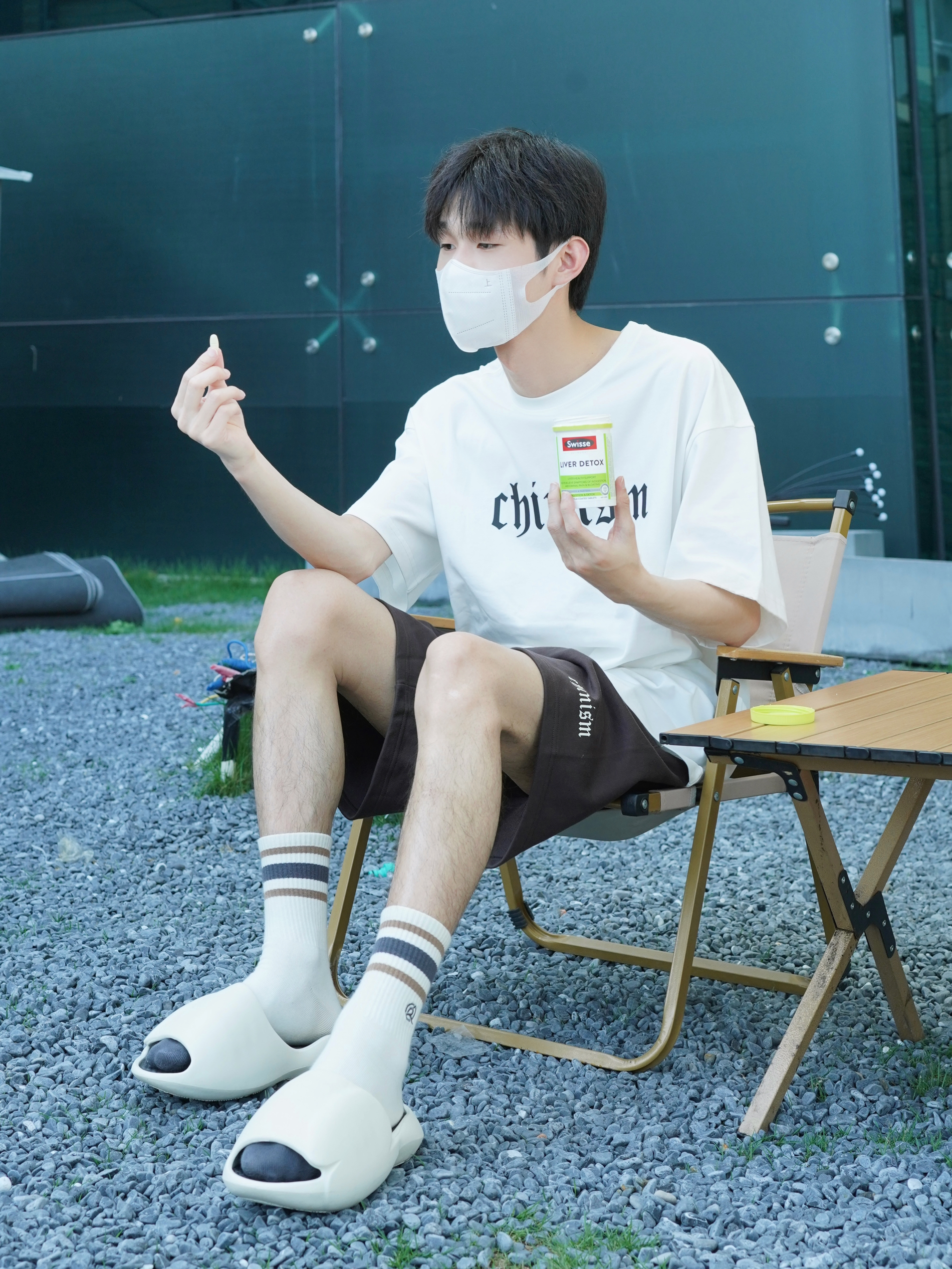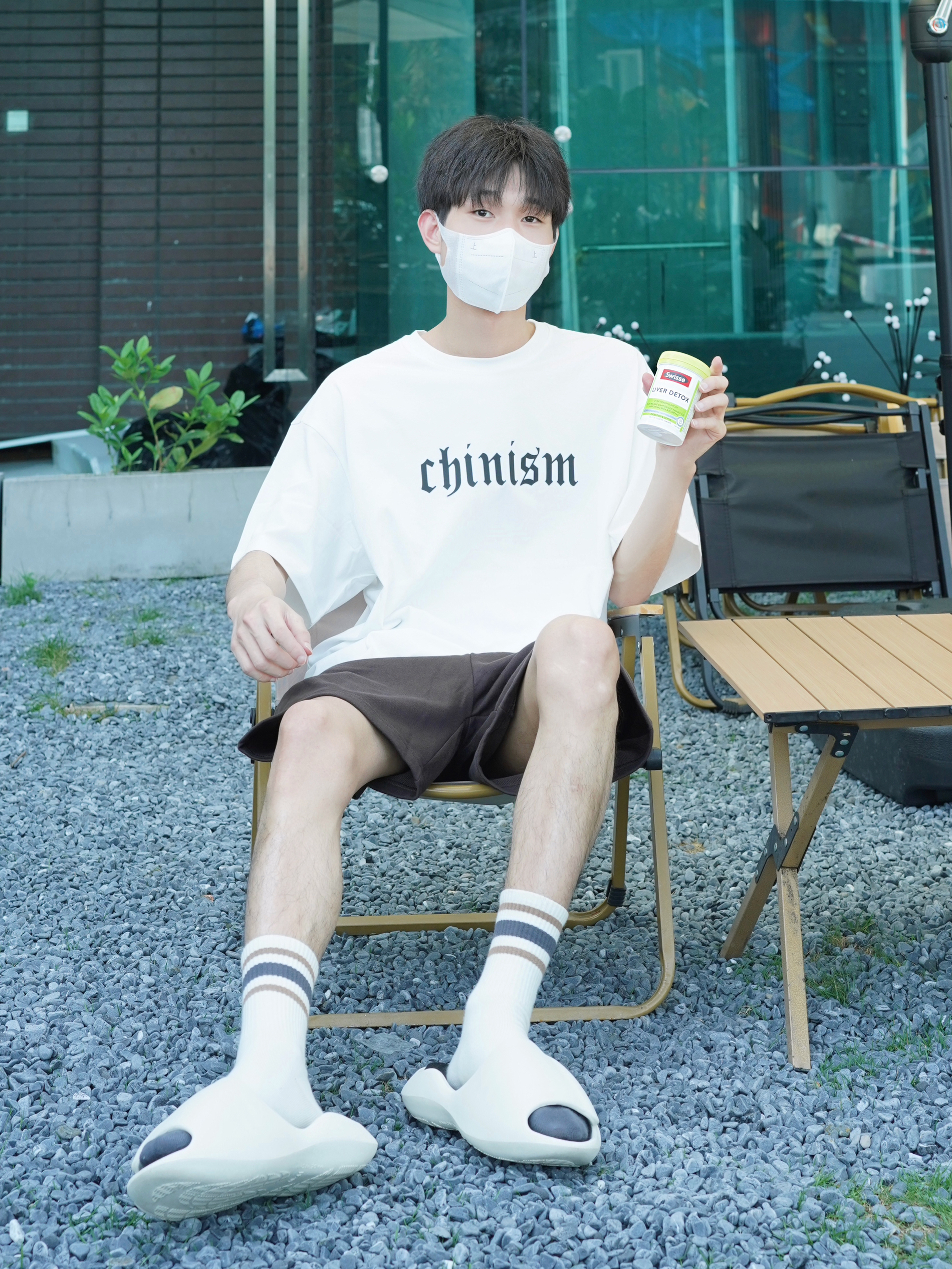白色短T真的很清爽干净 胸前大字母图案简约中带着些许高级感👌 搭配棕色短裤一套给人夏日清凉视觉感 夏天当然选择一双出街的帅气拖鞋了 chikoku这款运动拖鞋 上脚脚感很舒适 鞋子采用抑菌可拆卸鞋垫的设计 在户外穿着也很舒适✔️ 厚底设计防滑耐磨上脚还有不小的增高效果