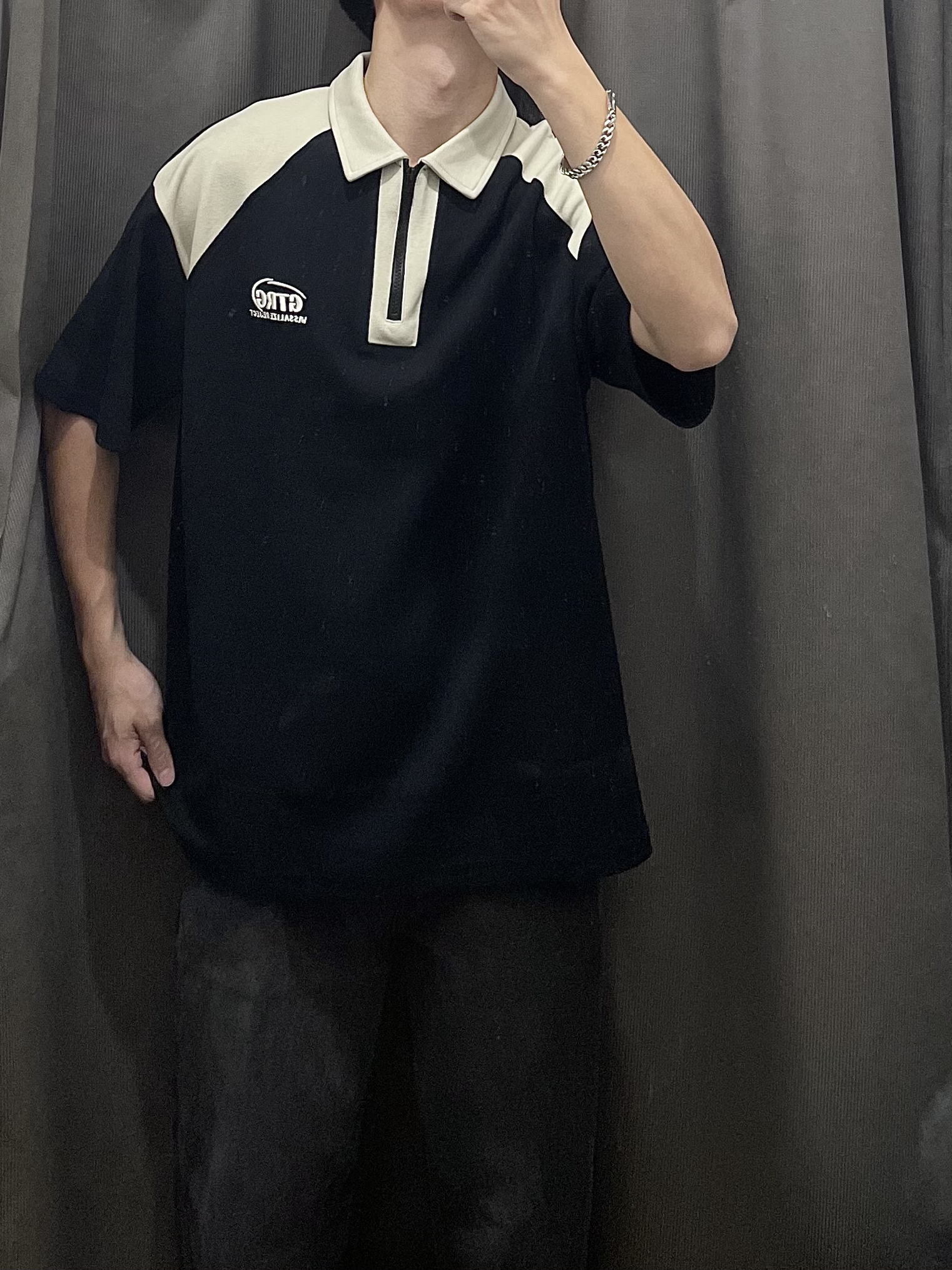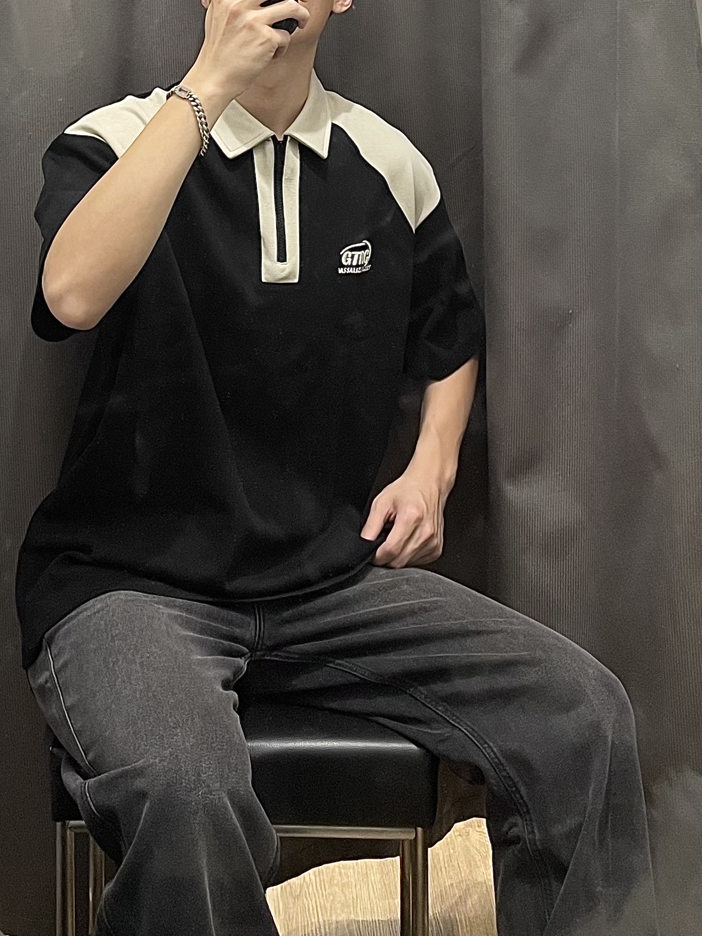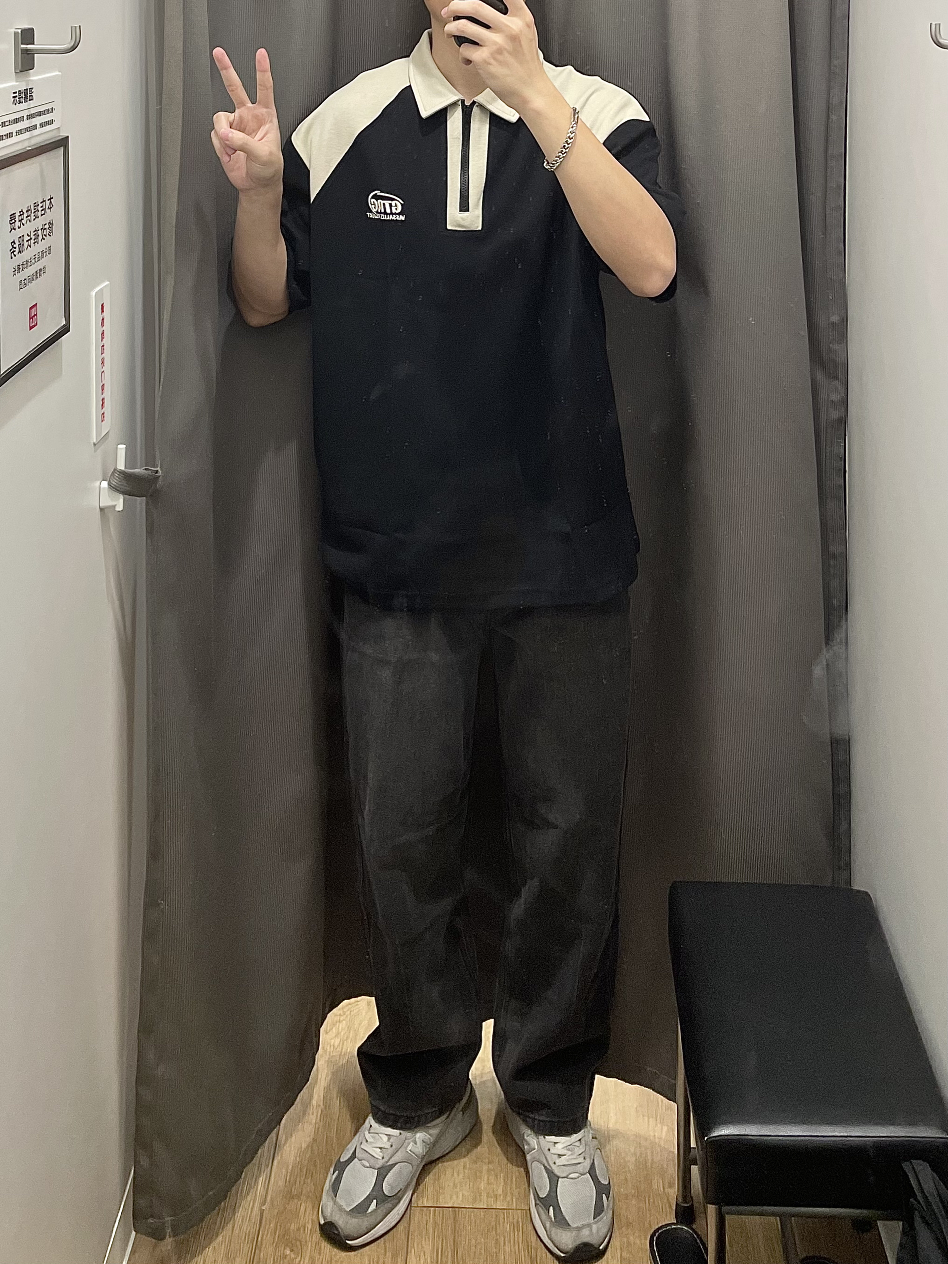 酷酷的夏天怎么穿!插肩Polo短袖必须安排诶! 搭配烟灰直筒宽松牛仔!真的太绝了啊‼️ 超喜欢这样的搭配 显瘦百搭嘿嘿