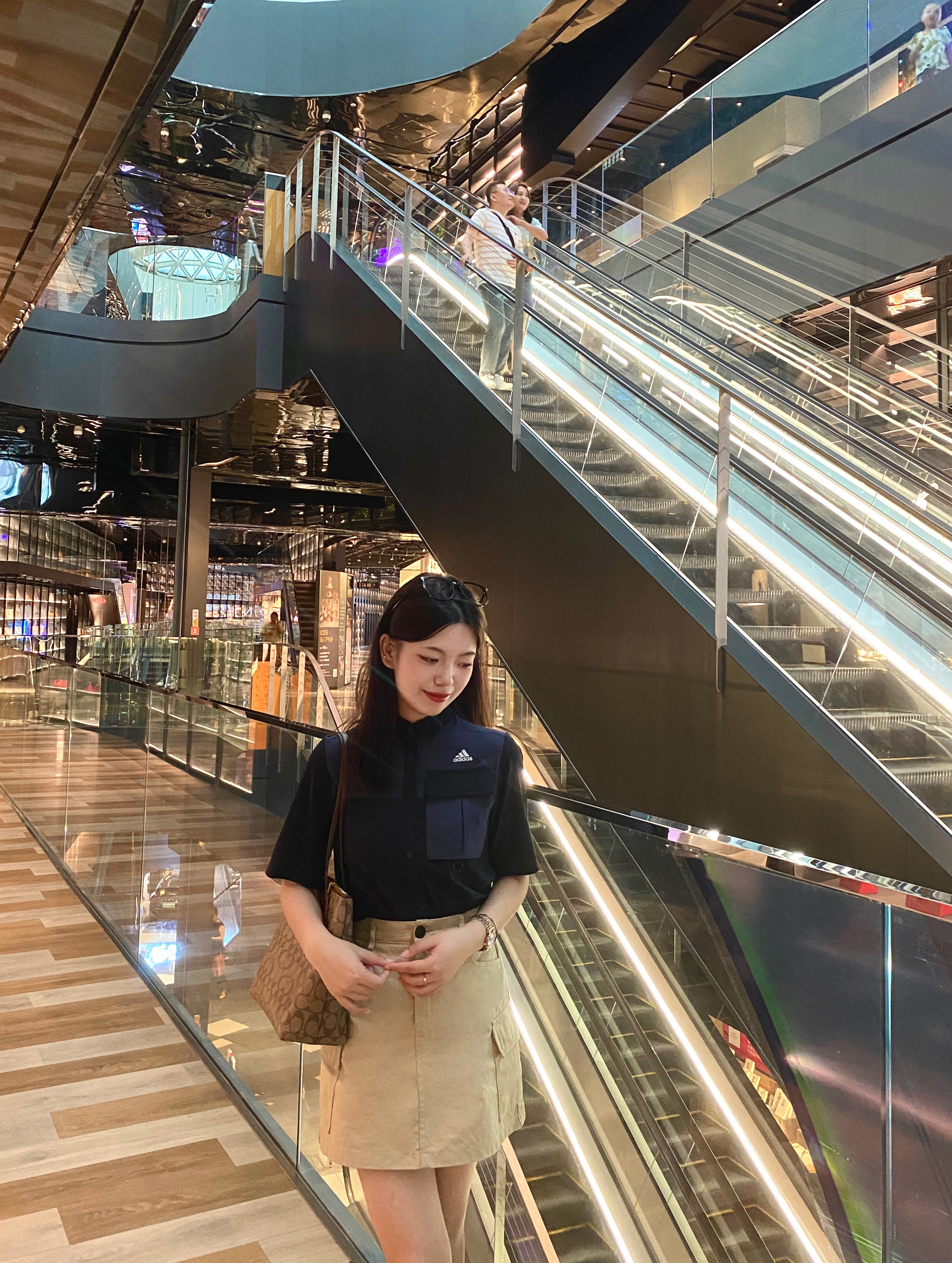 身高|体重:160 50kg 🧍♂️ 穿搭风格:休闲 👔 上衣:Adidas 👖 下装:工装裙 👟 鞋子:椰子350 🎒配饰:coach