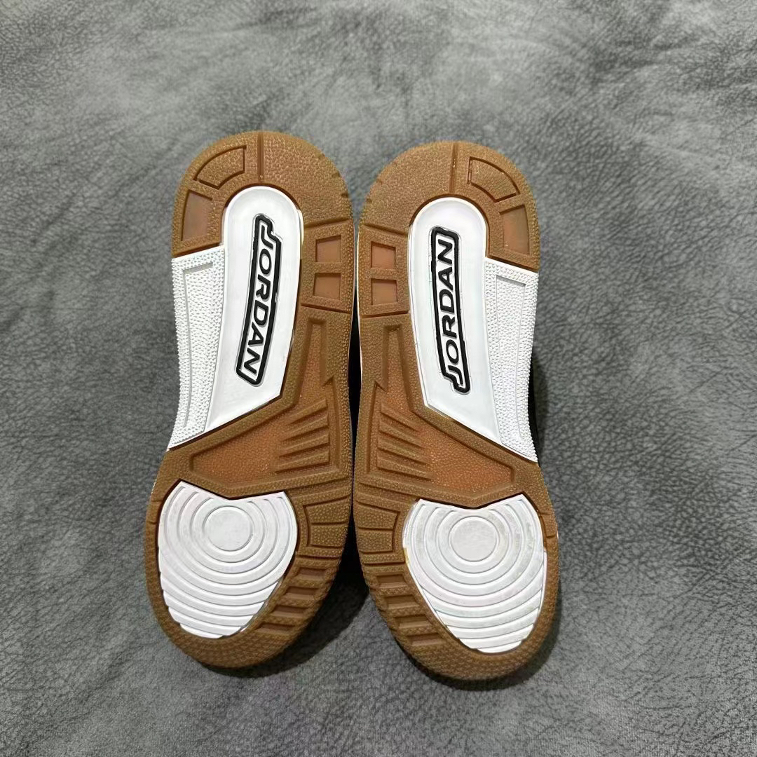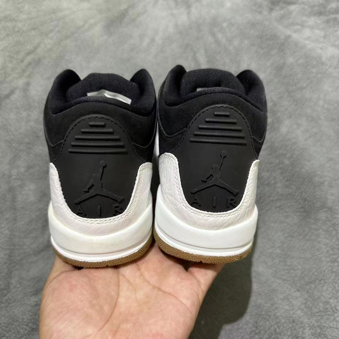 今天给大家分享的是这双配色简称非常“经典”的黑白配色-Ai3-黑白熊猫 鞋子名称:Jordan Air Jordan 3 Retro BlackGum 爆裂纹 GS黑白White 鞋子设计细节00:鞋子整体外观采用了经典的黑白两色来设计打造,整体鞋面仪黑色为主,搭配上部分点缀,整体配色非常经典,鞋子鞋头部分和鞋子的后跟部分采用了全新的爆裂纹设计,整体设计超级时尚大气,鞋子的鞋舌上也是采用了经典的飞...