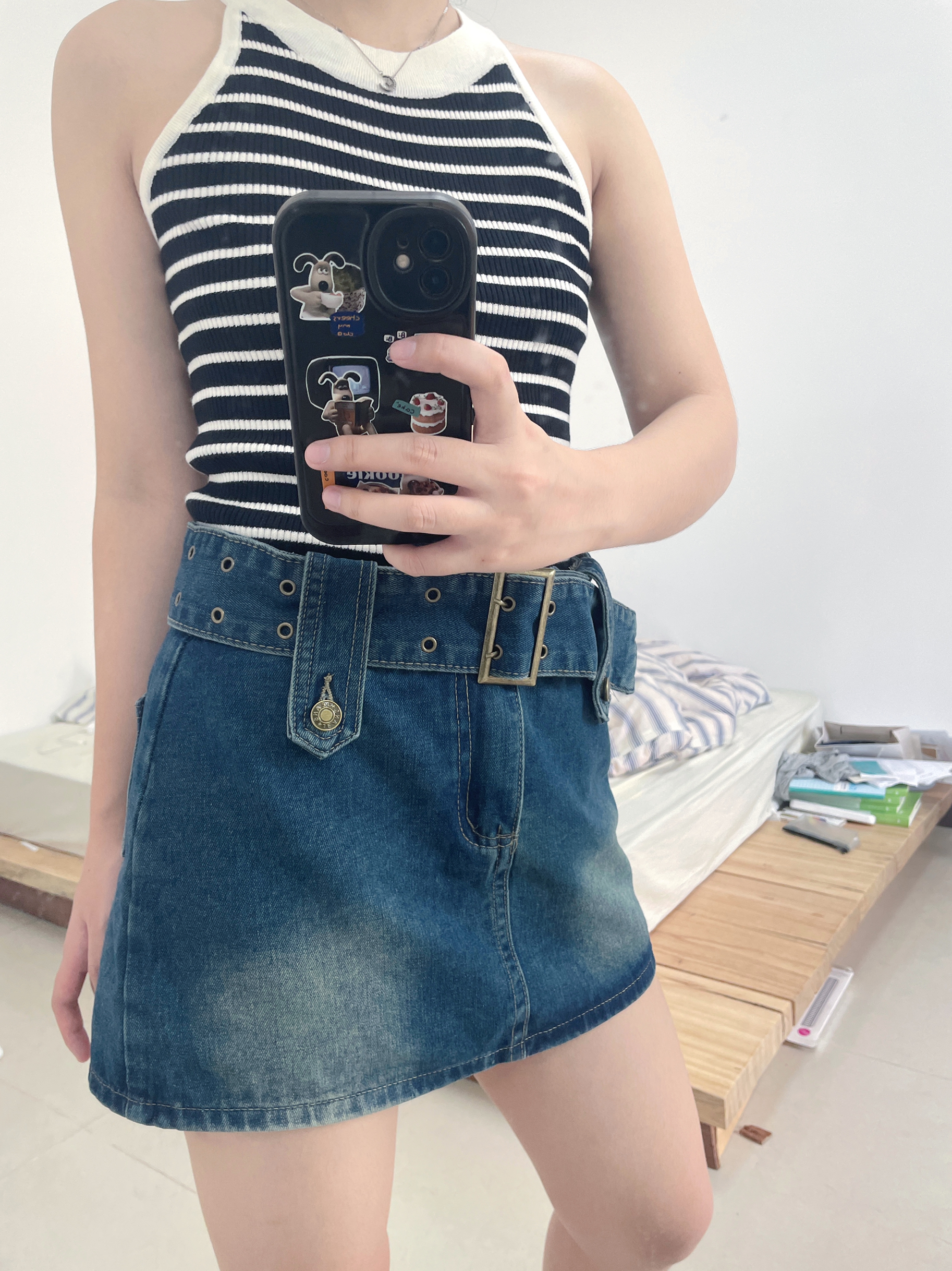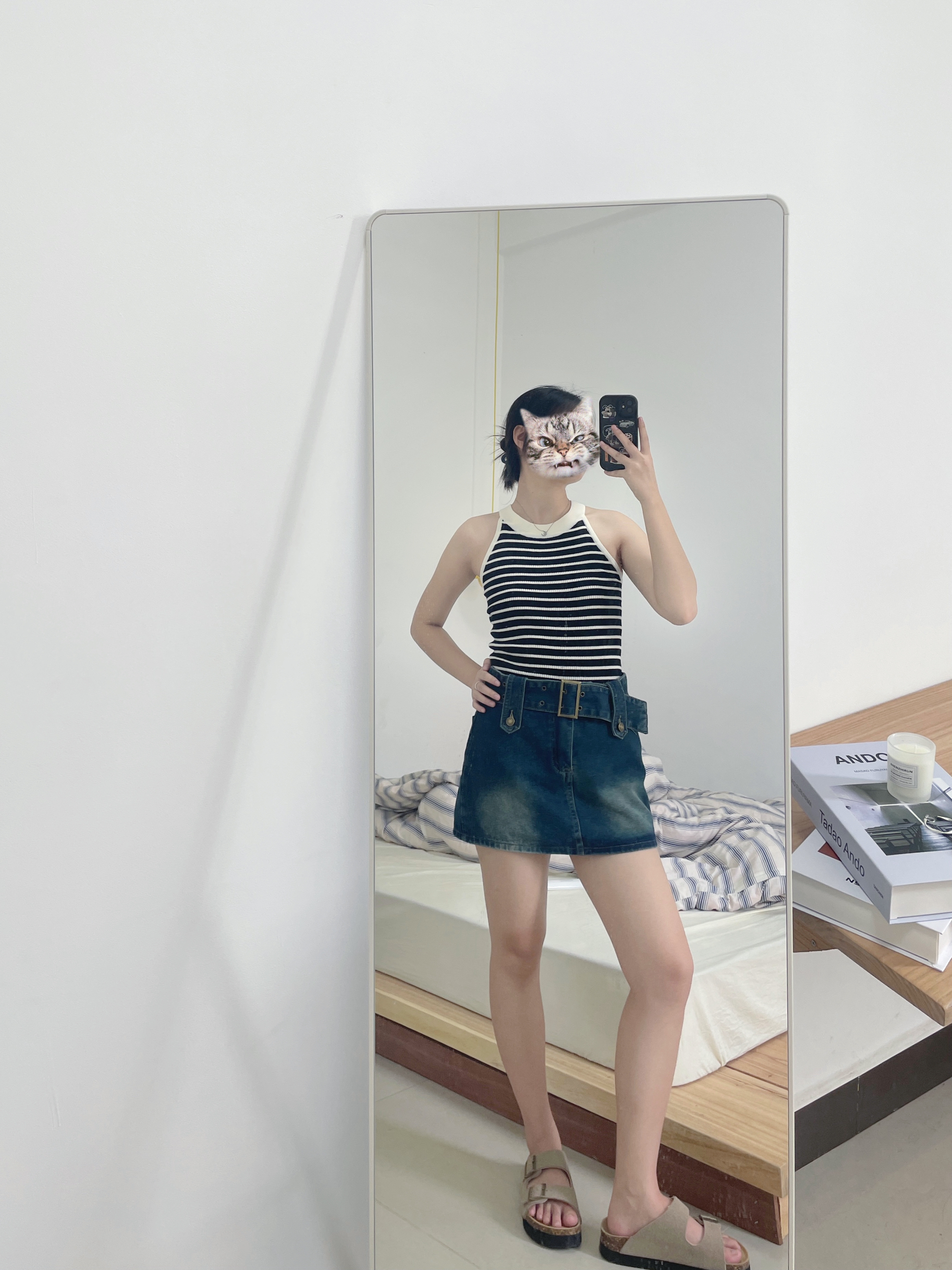 这条防走光短裙我真是爱了~遮肉效果真绝 了‼️ 做旧复古蓝颜色👖好高级,穿上真的好好看的啊!裙子👗有牛仔内衬,做工细节都很精细,品质好棒! a字版型遮胯效果好绝,对梨性身材姐妹很友好! 喜欢穿短裙的姐妹们一定要试试啦💃🏻 身高|体重: 🧍♂️ 穿搭风格:辣妹风 👔 上衣:美式复古条纹针织吊带背心,版型很显瘦,颜色很百搭,面料很柔软🧏♀️ 👖 下装:适合梨形身材的辣妹牛仔包臀裤,颜色复...