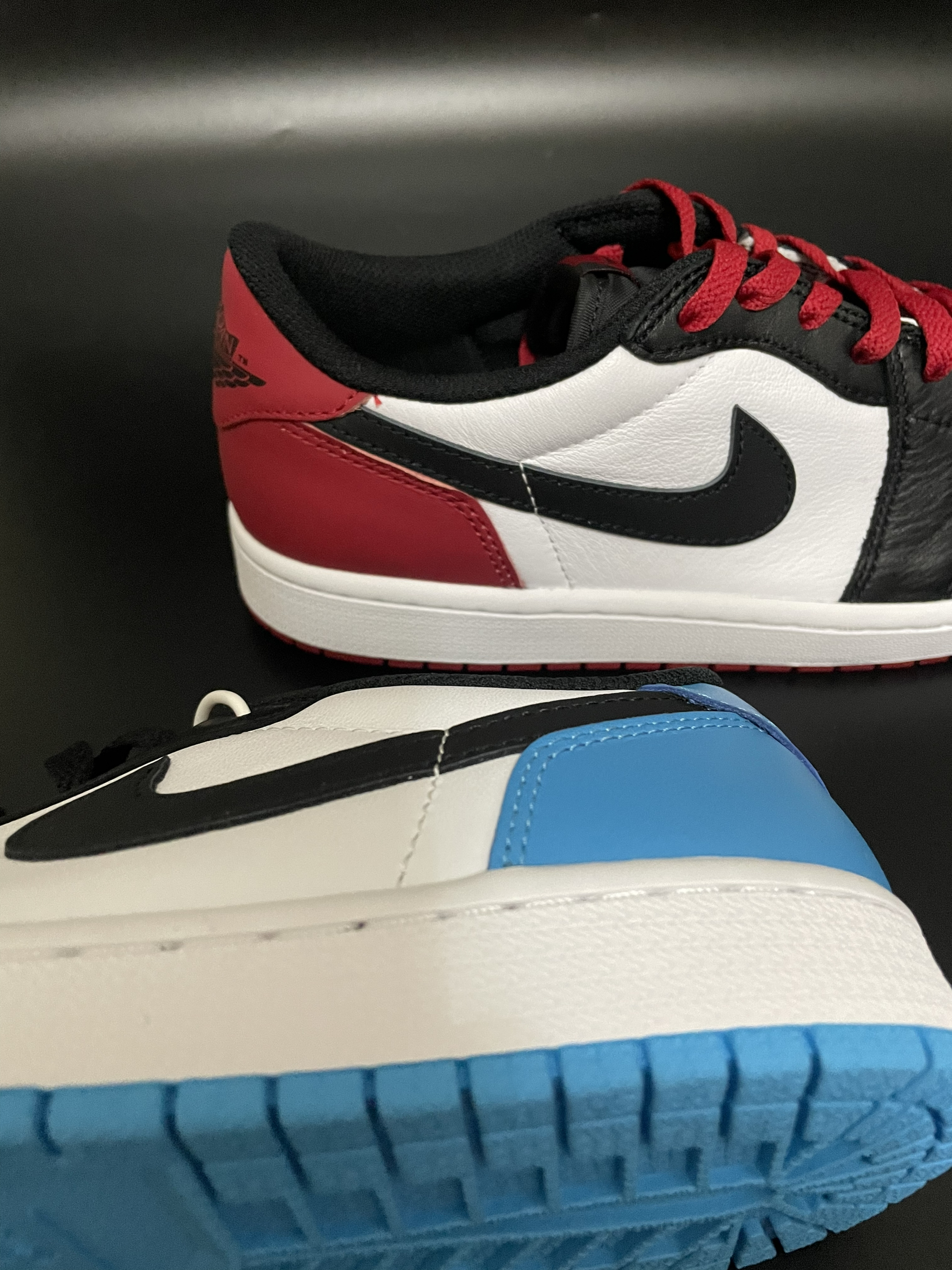 Air Jordan 1 low OG“Black Toe” 黑脚趾 Air Jordan 1 low “Black and Drak Powder Blue” 黑白蓝 自古红蓝出CP,这双黑脚趾和黑白蓝凑一对鸳鸯居然毫无违和感!真的太帅了‼️