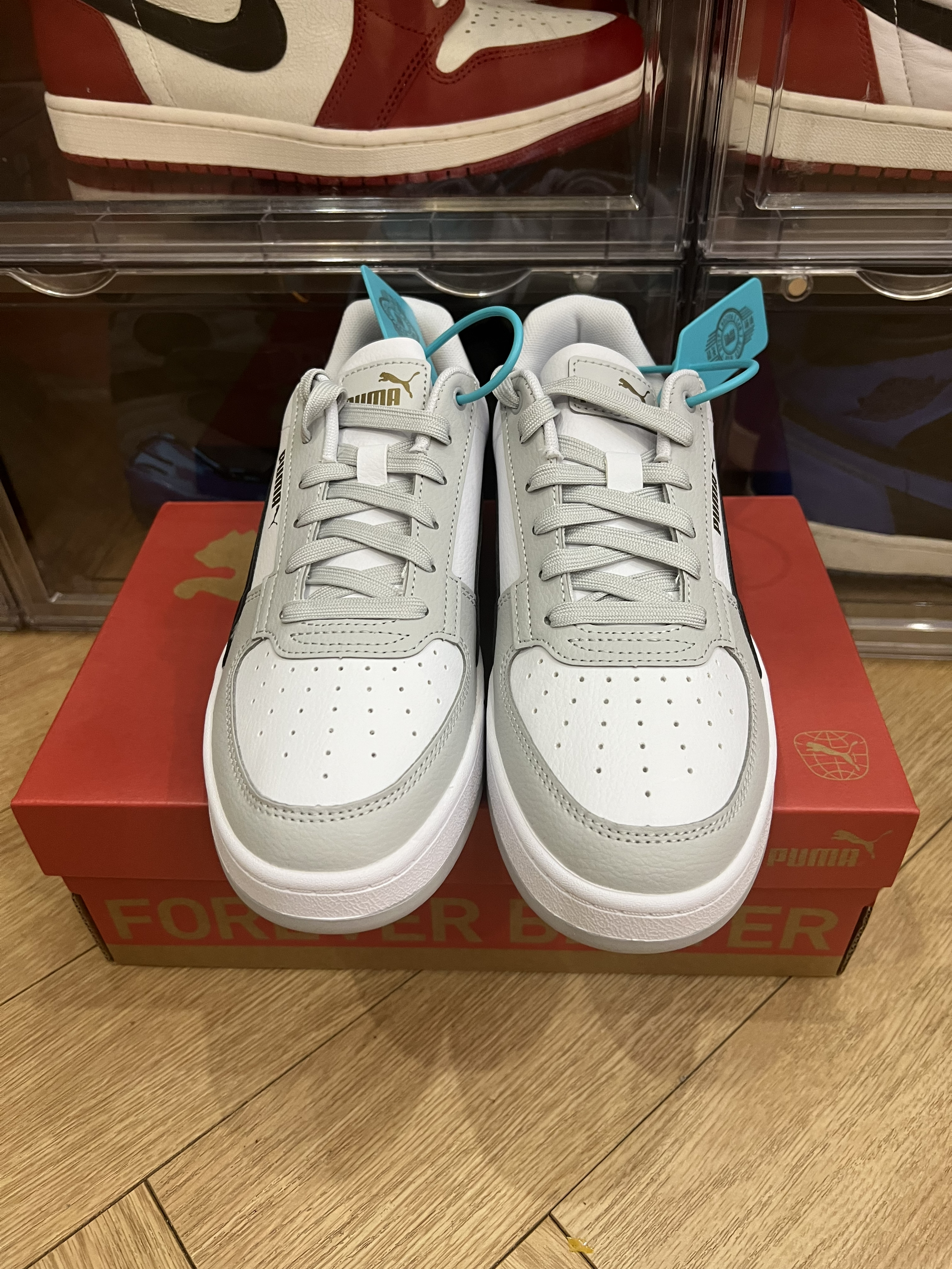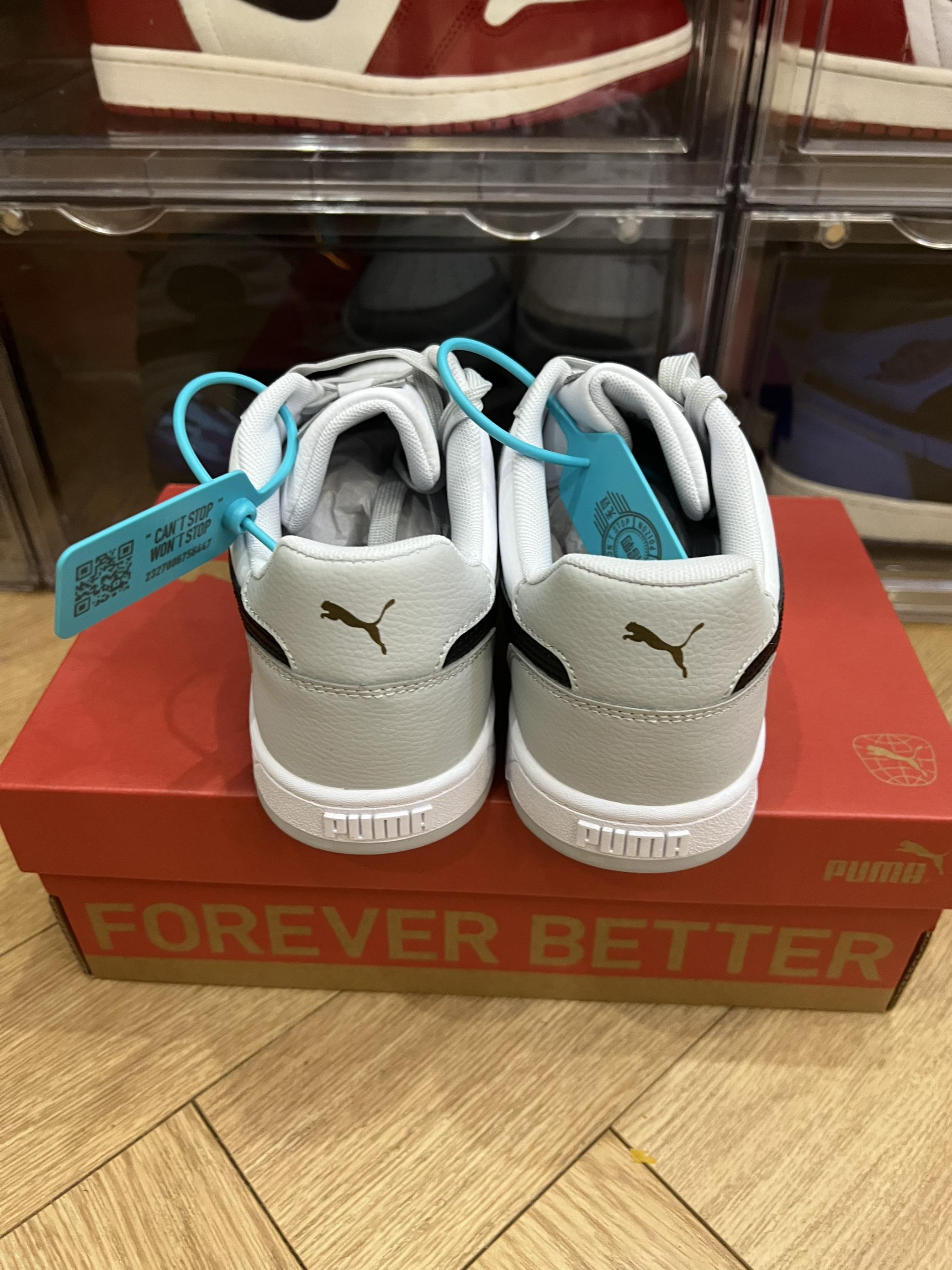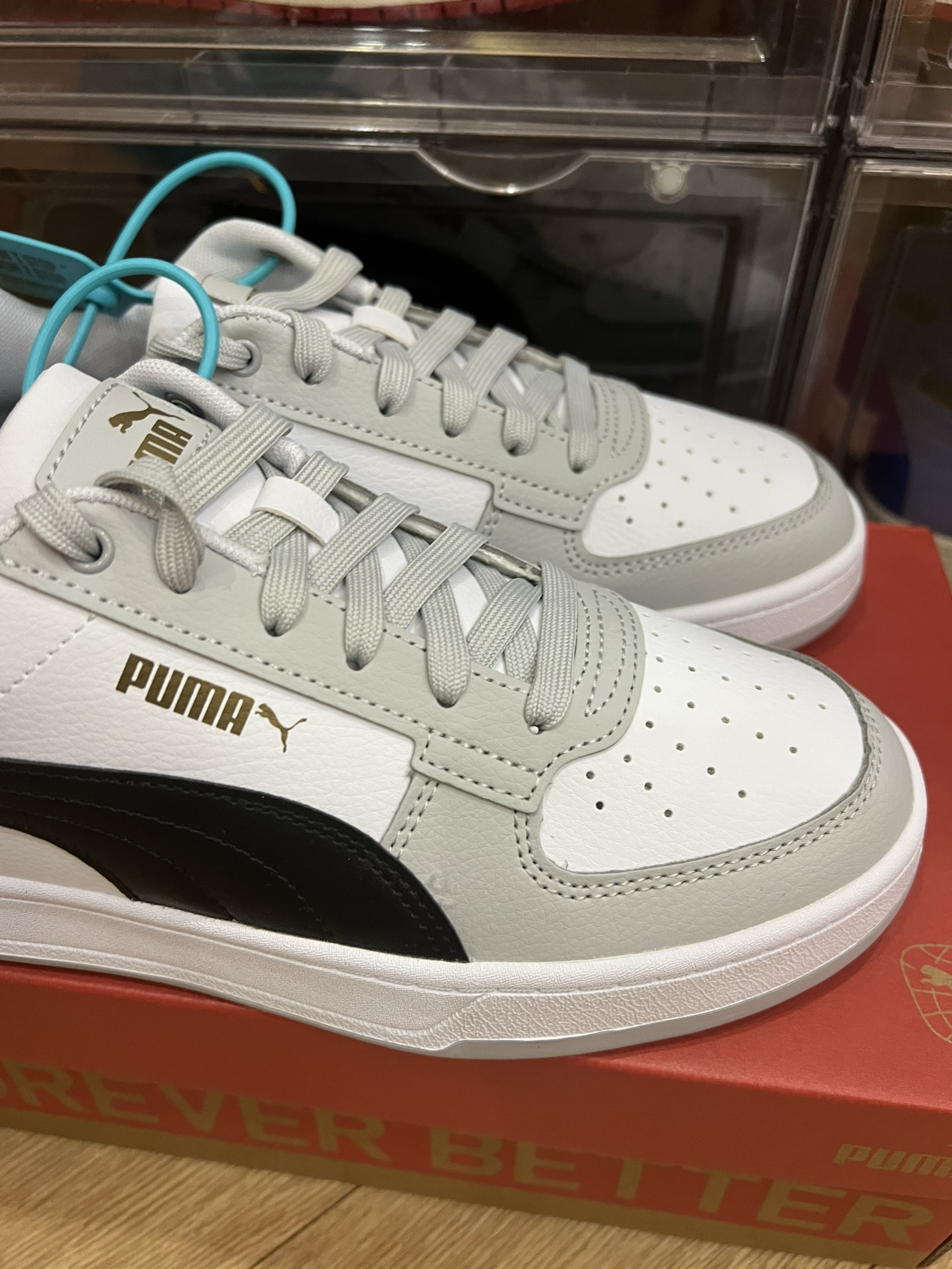 ⭐整体皮革材质 质感在线 鞋头透气孔可以保证透气性 适合夏天穿着 🤩🤩灰白黑的配色非常百搭 颜值在线 鞋舌处与鞋身处的金标puma彰显身份 爱了爱了 🥰🥰 ---------------- ------- 👑作为一双板鞋 脚感中规中矩 不过三开的价格 这颜值 个人觉得还是极具性价比的 你们觉得1-10分可以打多少分呢 他是不是你的菜呢👀👀
