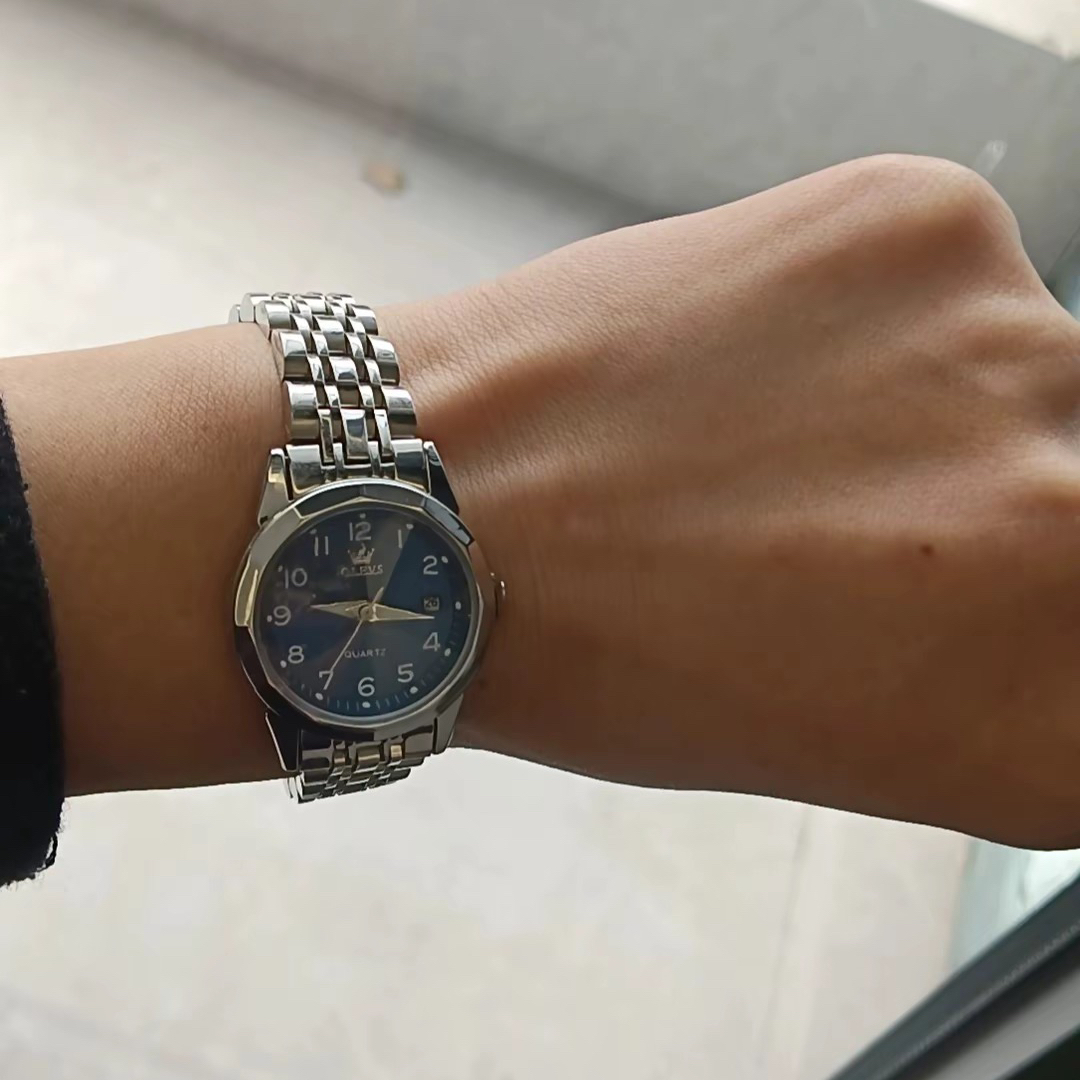 这款手表是我打算父亲节送给老爸的,也是他很喜欢的一种款式风格手表。 手表是欧利时的,具有很浓厚的商务风范,银色的表盘与黑色的表带的结合,戴起来也很有气质,而特别是夏天搭配polo衫就特别的有商务气息,手表的颜值也很高,无论搭配什么衣服都是非常的百搭的一款手表。 表盘使用的是镀膜玻璃,很耐摔耐刮,表带也是真皮材质,戴起来软软的,这款手表也是时尚潮流一体的设计,让穿戴也可以成为自己的一种生活。