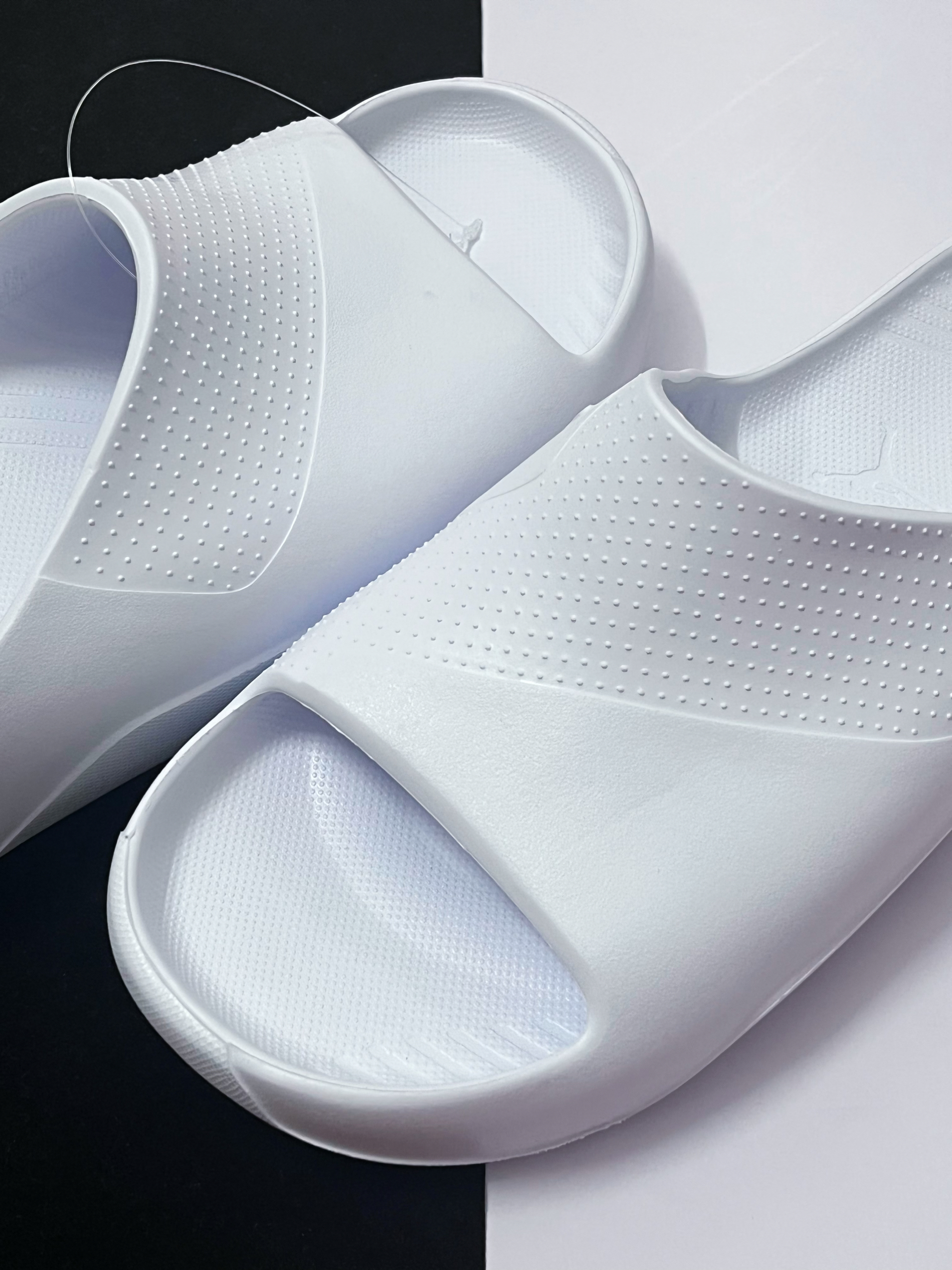 ⚪️对于这一双白色Jordan拖鞋,它的外观设计倒不是很让我心动,就是常规的拖鞋鞋型,没有太大的亮点,不过上脚后的舒适性倒是很到位,这一点让我挺满意的。 ⚪️有着软弹的脚感、厚实的中底、耐磨的鞋底以及百搭的效果,这样一双简约的夏季拖鞋还是很不错的,尺码方面我个人喜欢宽松的感觉,所以选大了2码,整体体验还OK。