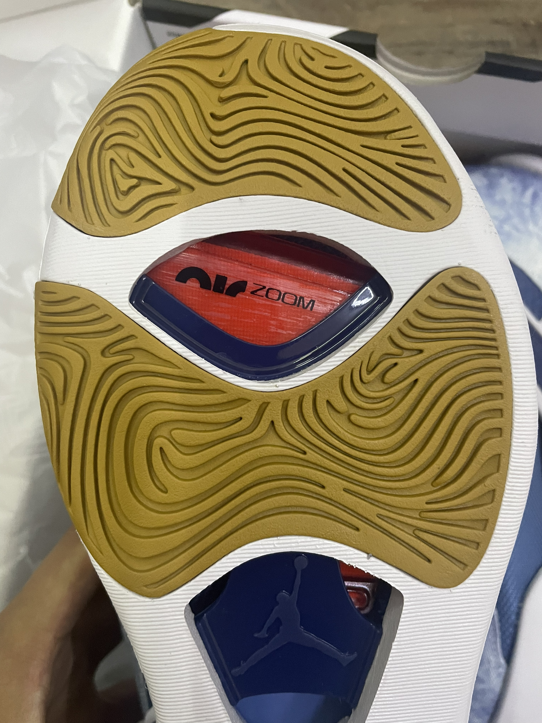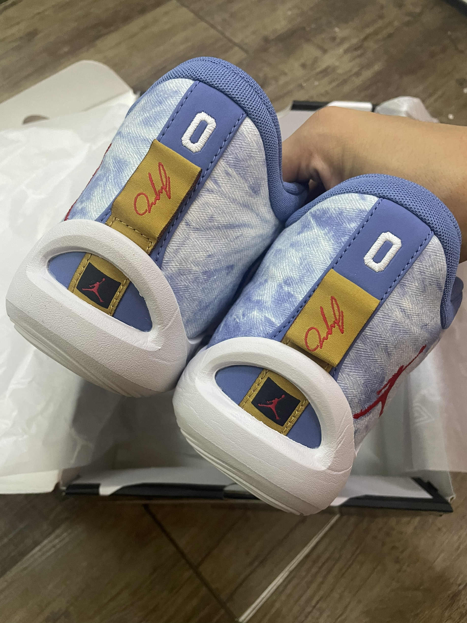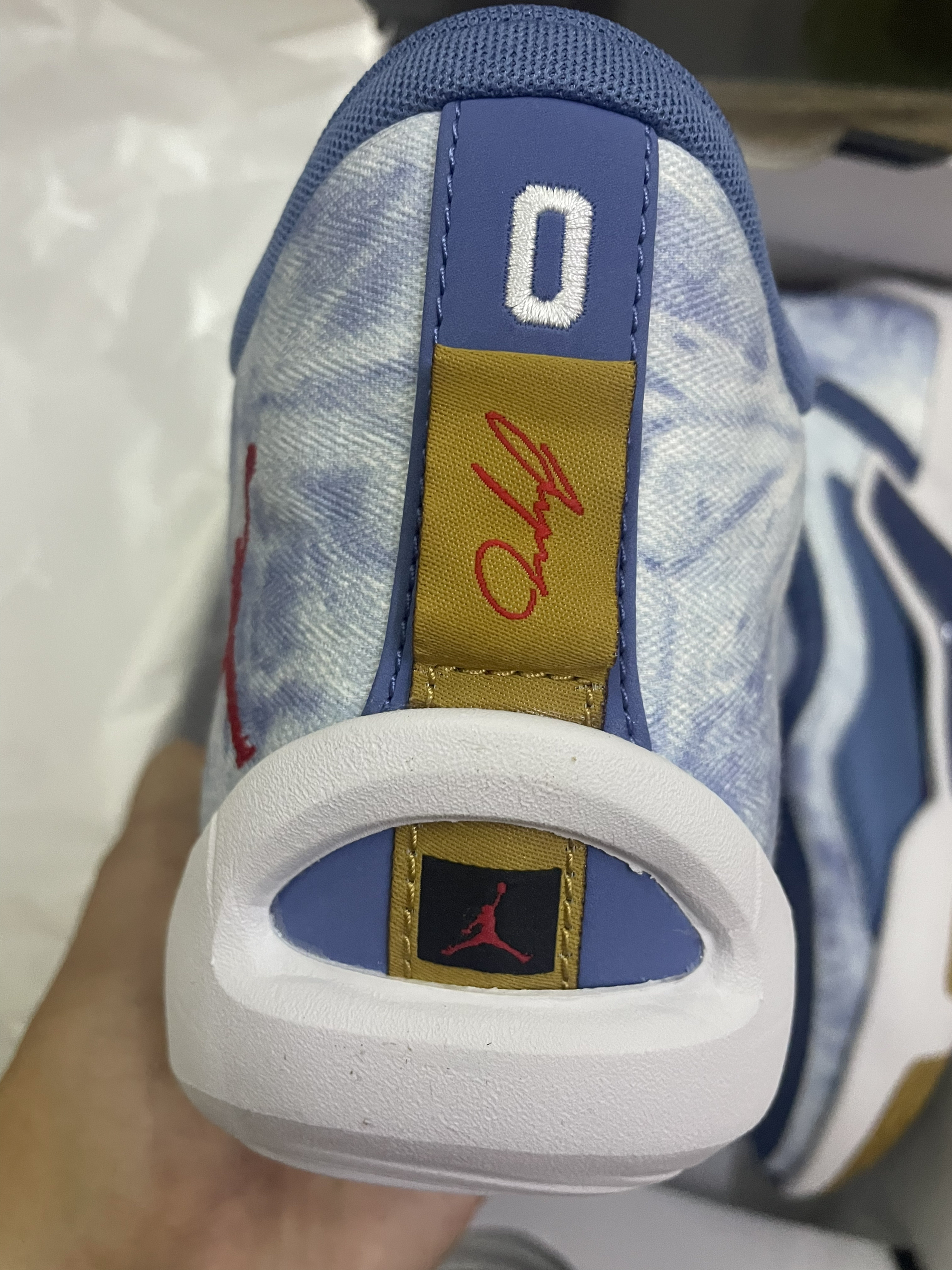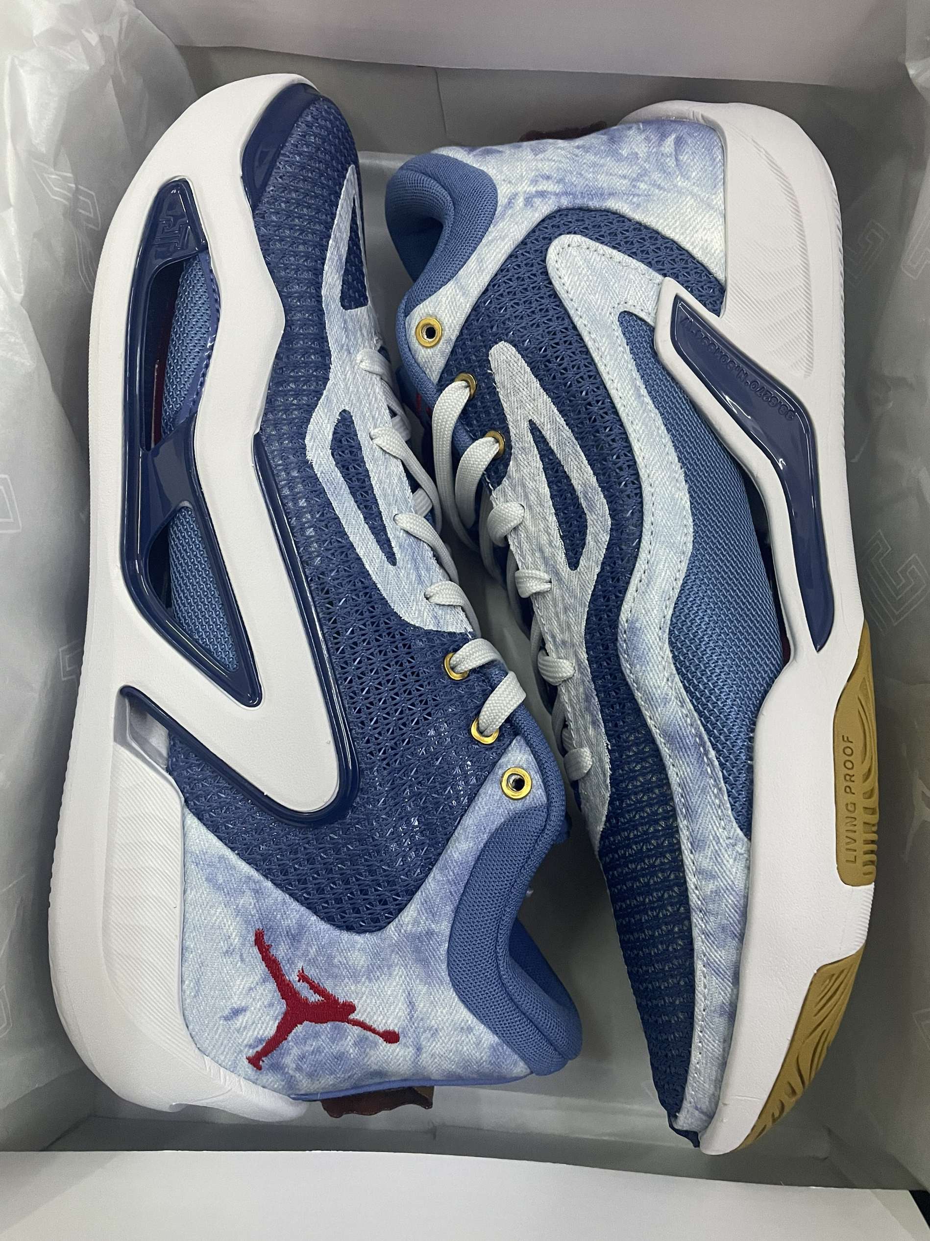 Jordan Taum 1 “Denim” 蓝白 不得不说这个蓝白牛仔配色颜值真的拉满了! 整双鞋子看起来非常清爽,夏季妥妥的穿搭好鞋! 实战方面就有点拉了! 这个镂空设计真的华而不实! 除了帅真没用! 这个大底耐磨还不行!