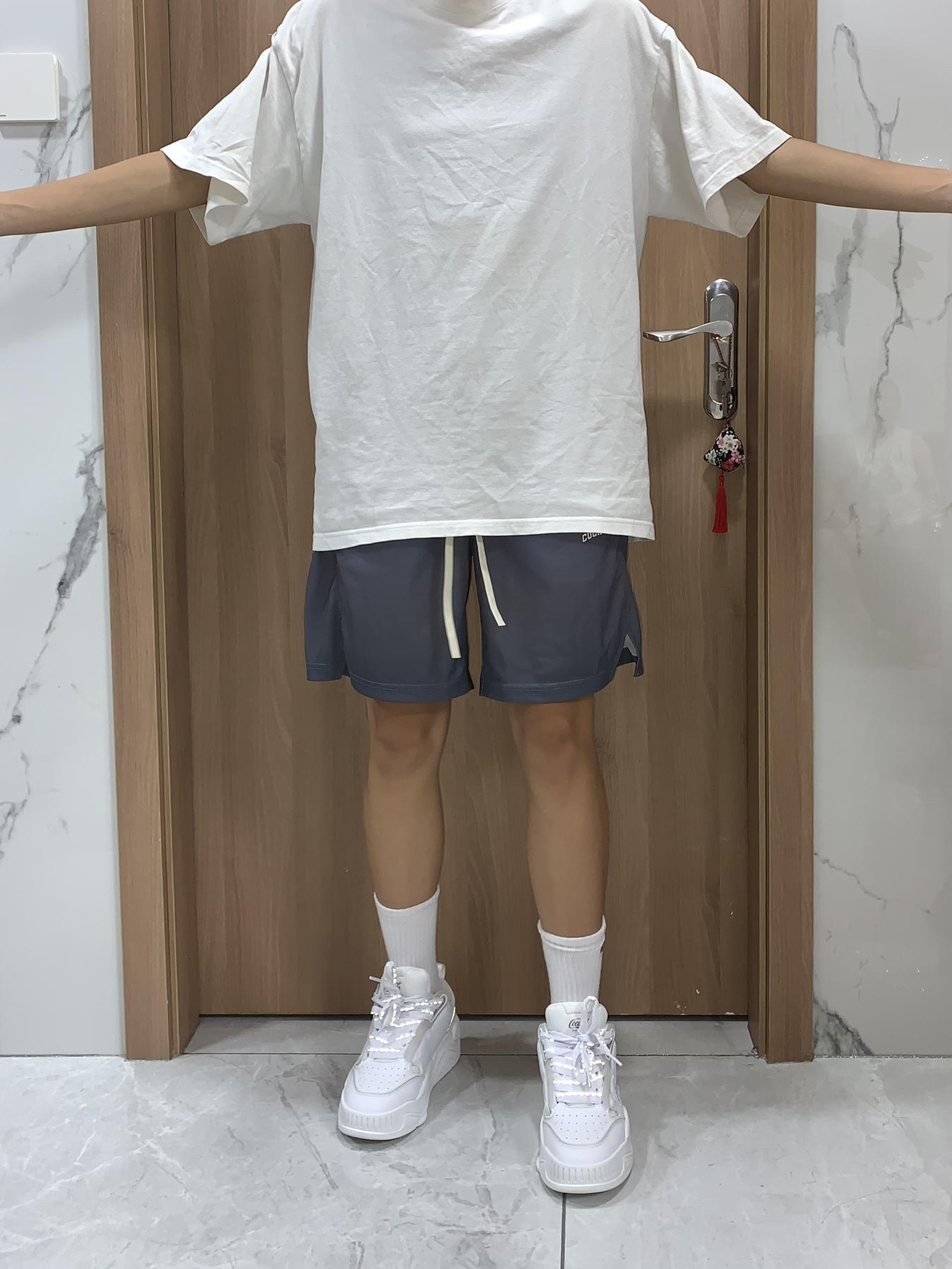 ootd今日份穿搭 今天上身的穿搭比较运动休闲走向 👔纯t简直就是我的百搭神器,搭配任何颜色都是杠杠的可以 👖篮球裤运动休闲用来搭配都是可以适用的,何况是一条高颜值篮球裤👆 👟⚪️休闲风当然要我们的板鞋来搭配,这种走向也是真的又简洁又好看
