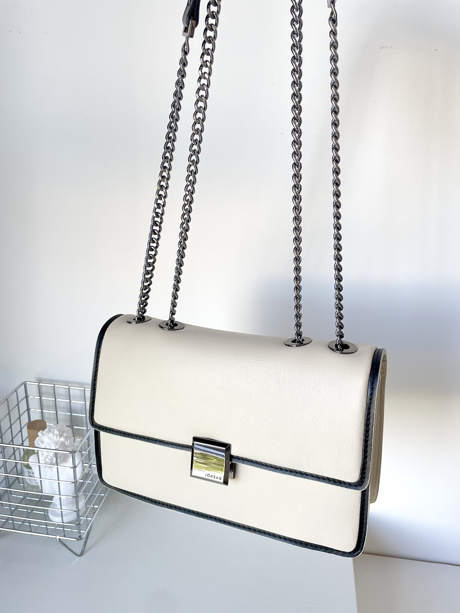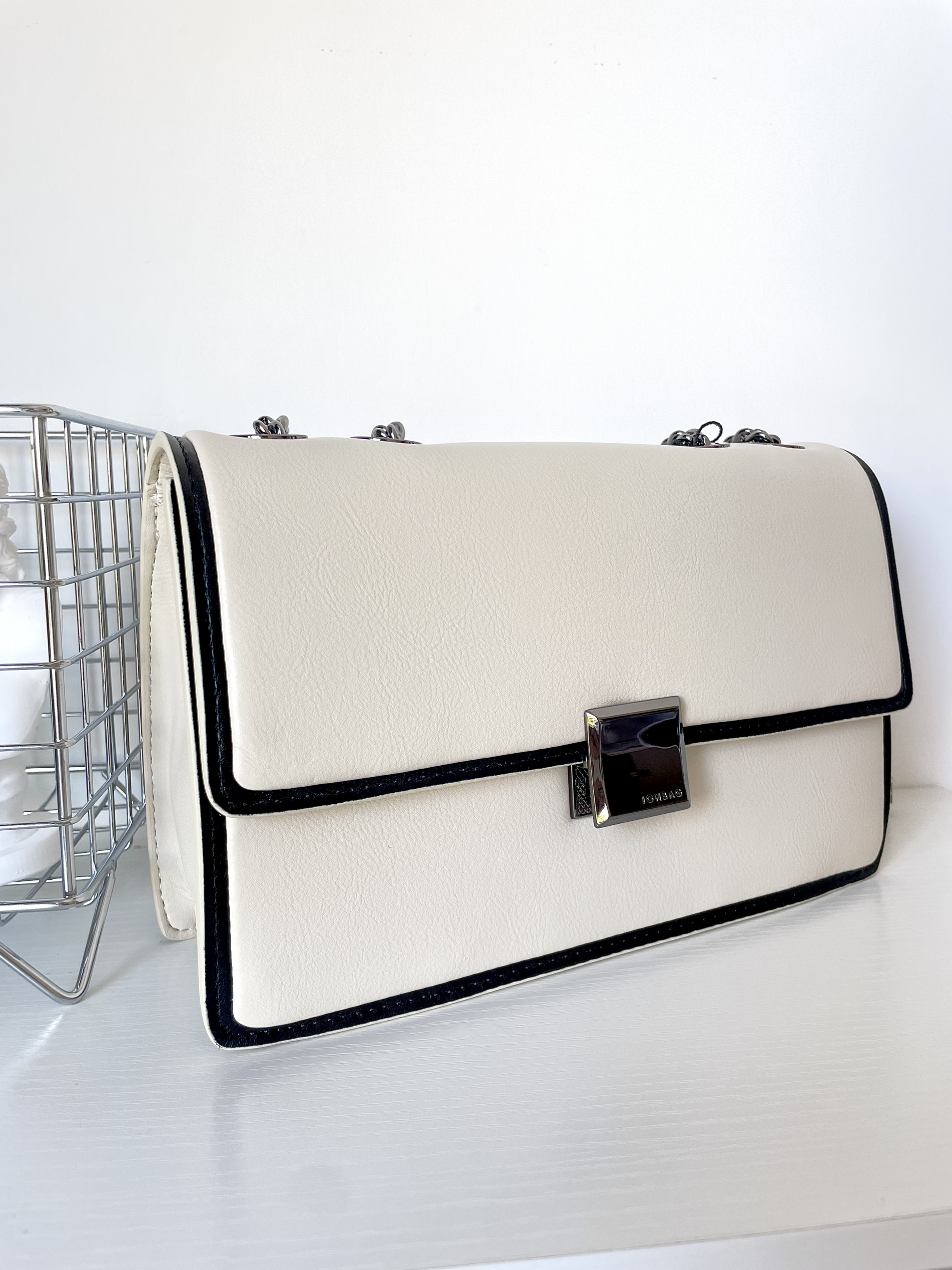 🎒单品介绍(品牌|款式): JONBAG简•佰格威化包 💰价格参考: 300➕ 🛒尺寸容量: 让人比较意外的是 包包的容量很🉑️ 手机 耳机 气垫口红都放得下 其至还可以装进去两大瓶水乳 🔍设计细节: 五金配件很有质感 ⛓️也很有分量 🧍♂️ 搭配技巧(风格|场合): 米色+黑色的设计 日常又百搭🔲 适合通勤背 有种干练的美腻~