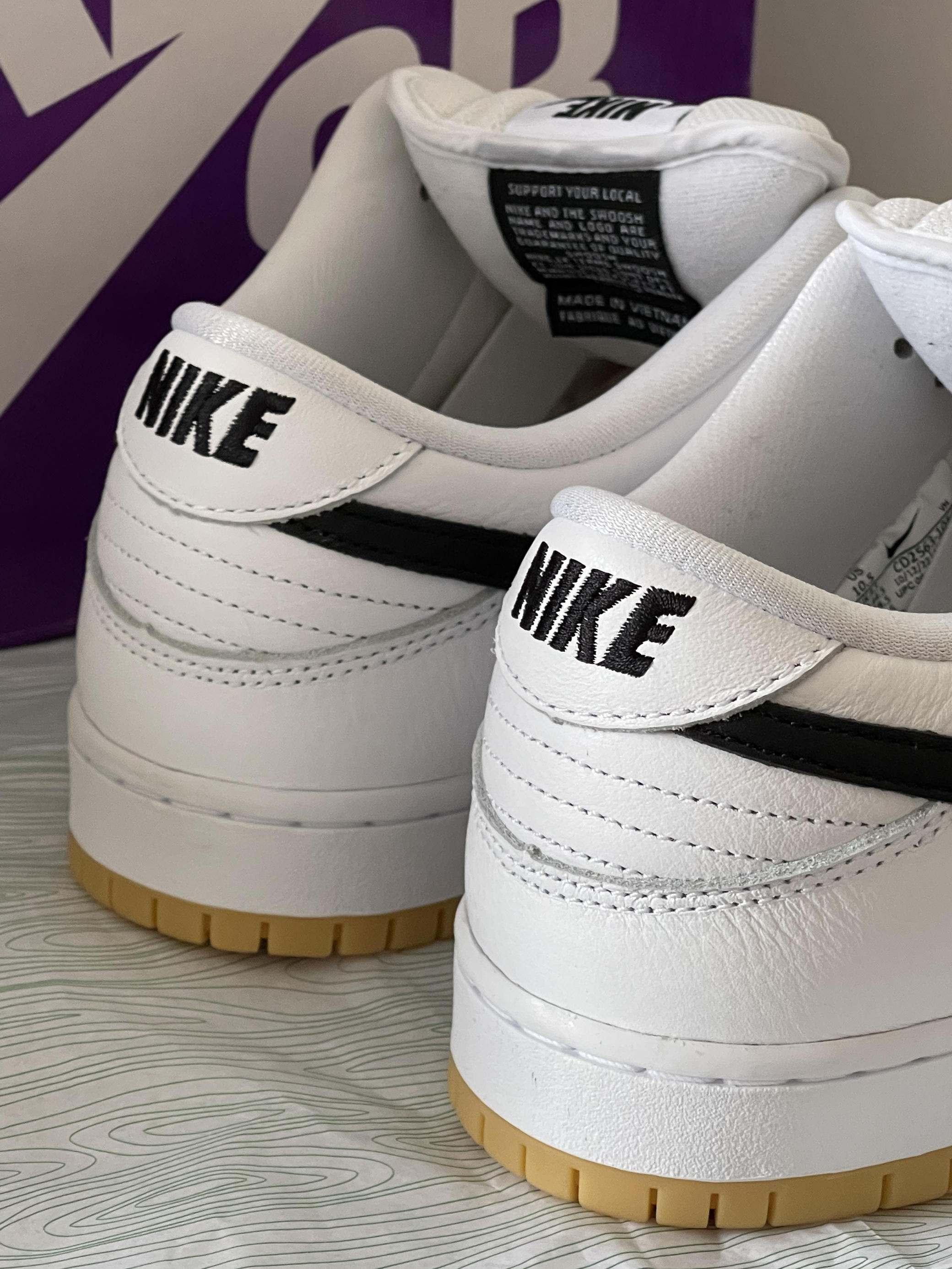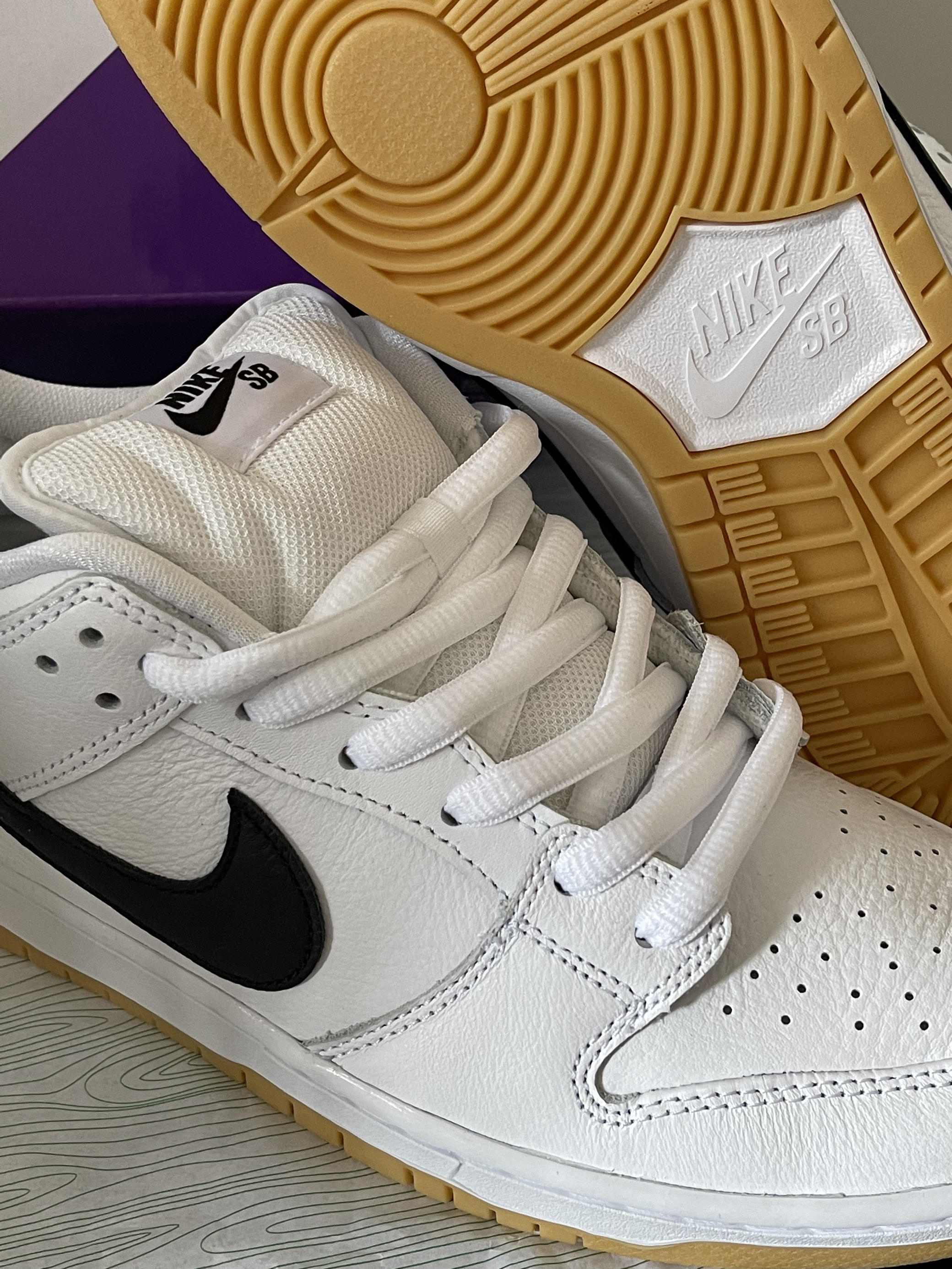 这次发售的Nike Dunk SB Low pro iso "white gum"黑白,大面积白色点缀黑色swoosh,生胶大底,一贯的简约百搭。设计富有有层次感,黑色的元素运用让整体风格很时尚!🖤🤍 这次的细节也不少,皮革柔软细腻,穿脱丝滑。鞋垫、鞋带头也有Nike sb印花,脚感也不会太差,Dunk sb一贯的后脚掌鞋垫气垫,因为Dunk sb鞋舌加厚及后跟增加包裹,推荐购买时大半码到一码...