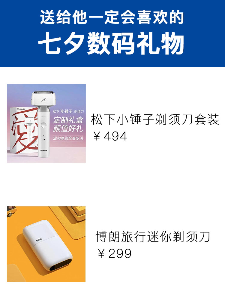 这个也是男生必备,品牌很多,价格也很多,还是推荐两个不同价位,适合在家中或者经常出差的男生使用的,买这个不能说让他绝对的兴奋,但一定会觉得你很贴心和细心。