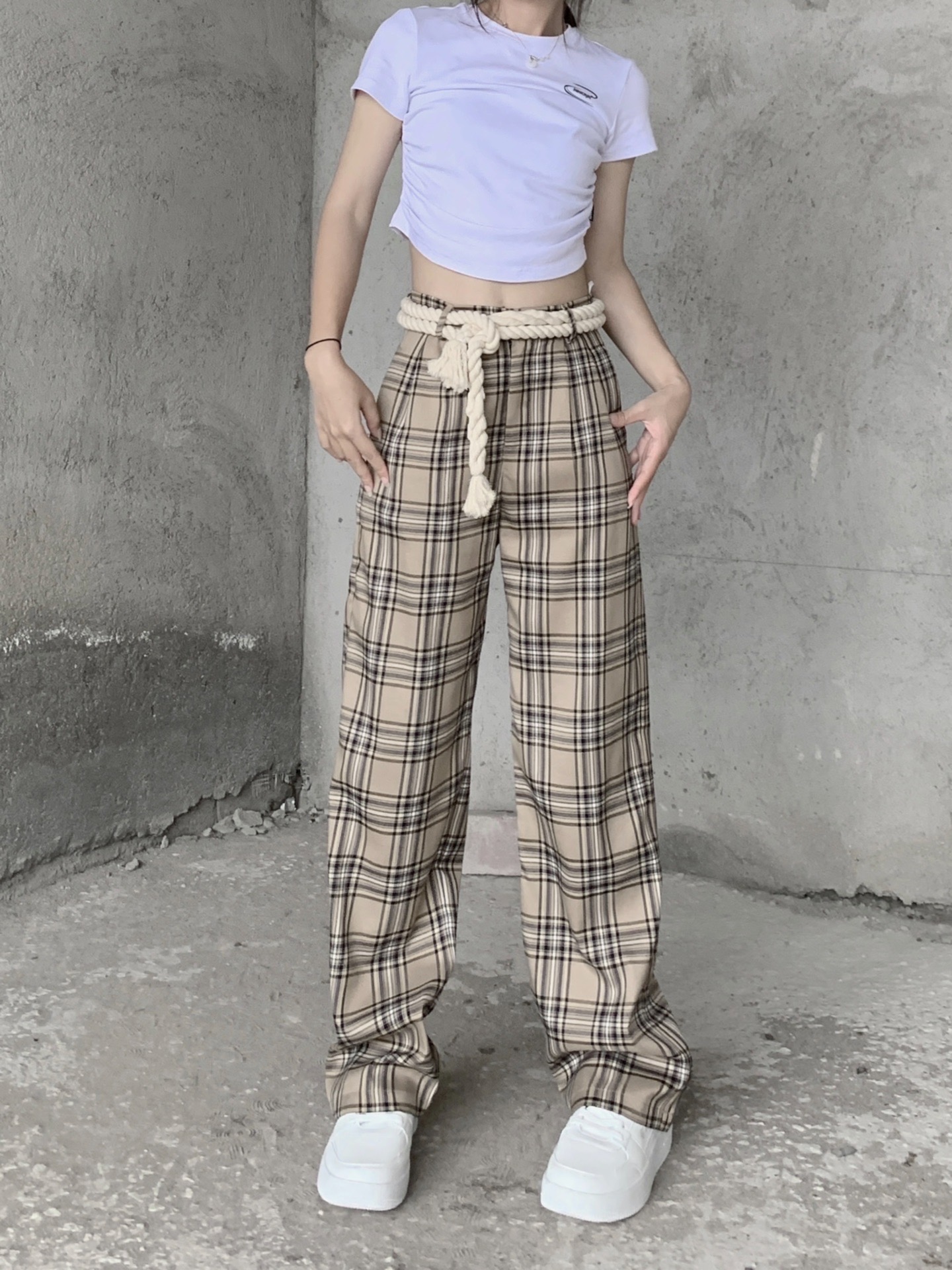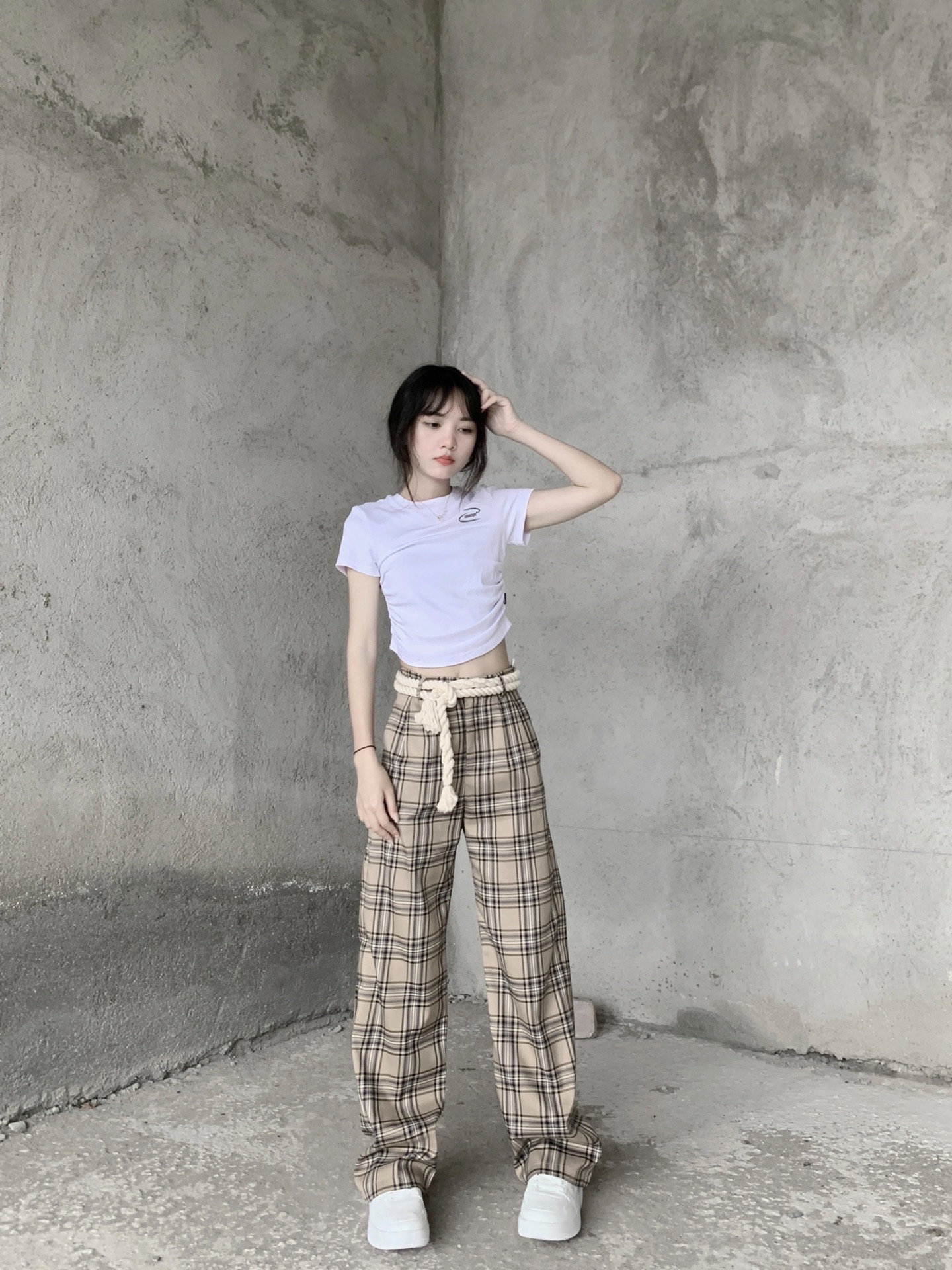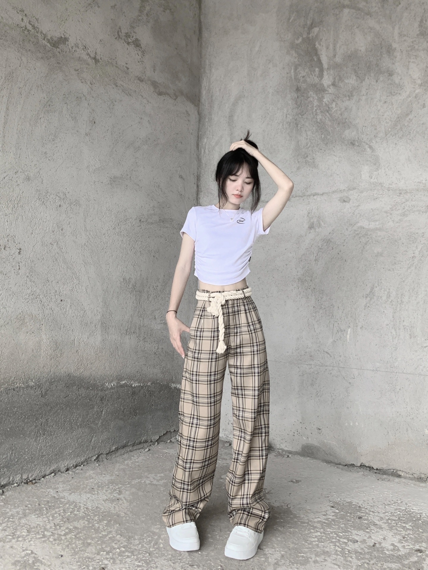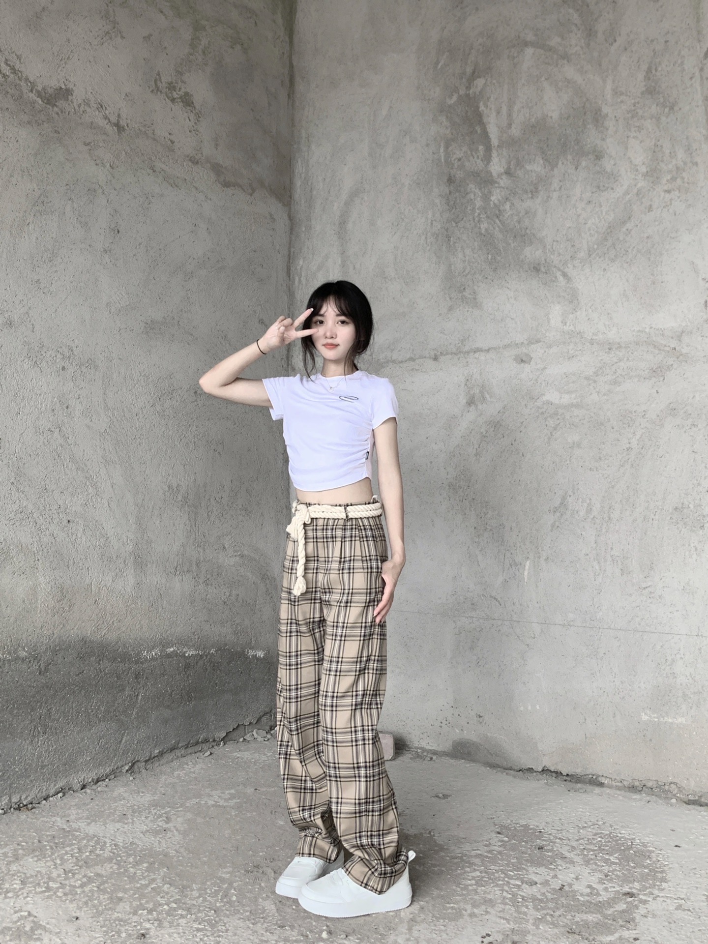修身短上衣搭配卡其格子阔腿裤 上紧下松的穿搭太赞啦 #阔腿裤穿搭 #阔腿裤这么搭 #我的多巴胺搭配 #我的多巴胺穿搭