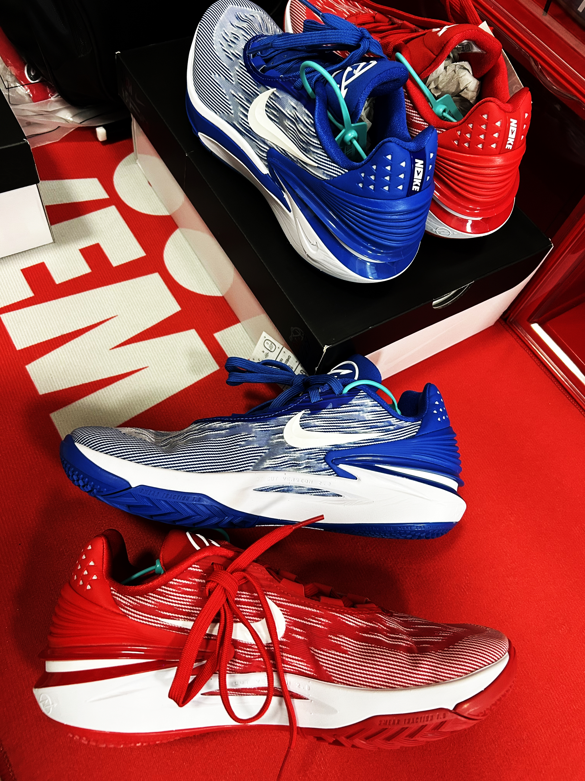 GT Cut 2代的两个国外版配色😎这下撞鞋率直接拉下来了吧😆毕竟Cut 2代在国内的销量还是非常不错的!球场上经常能见到! 好像关心的最多的就是这两个配色是不是全掌橡胶底🤔️到手以后发现并不是,前掌橡胶,后掌依旧水晶底。🥸 国外版的价格略高,但是喜欢Cut 2代的朋友可以考虑一下,原价附近入其实都可以了🐶