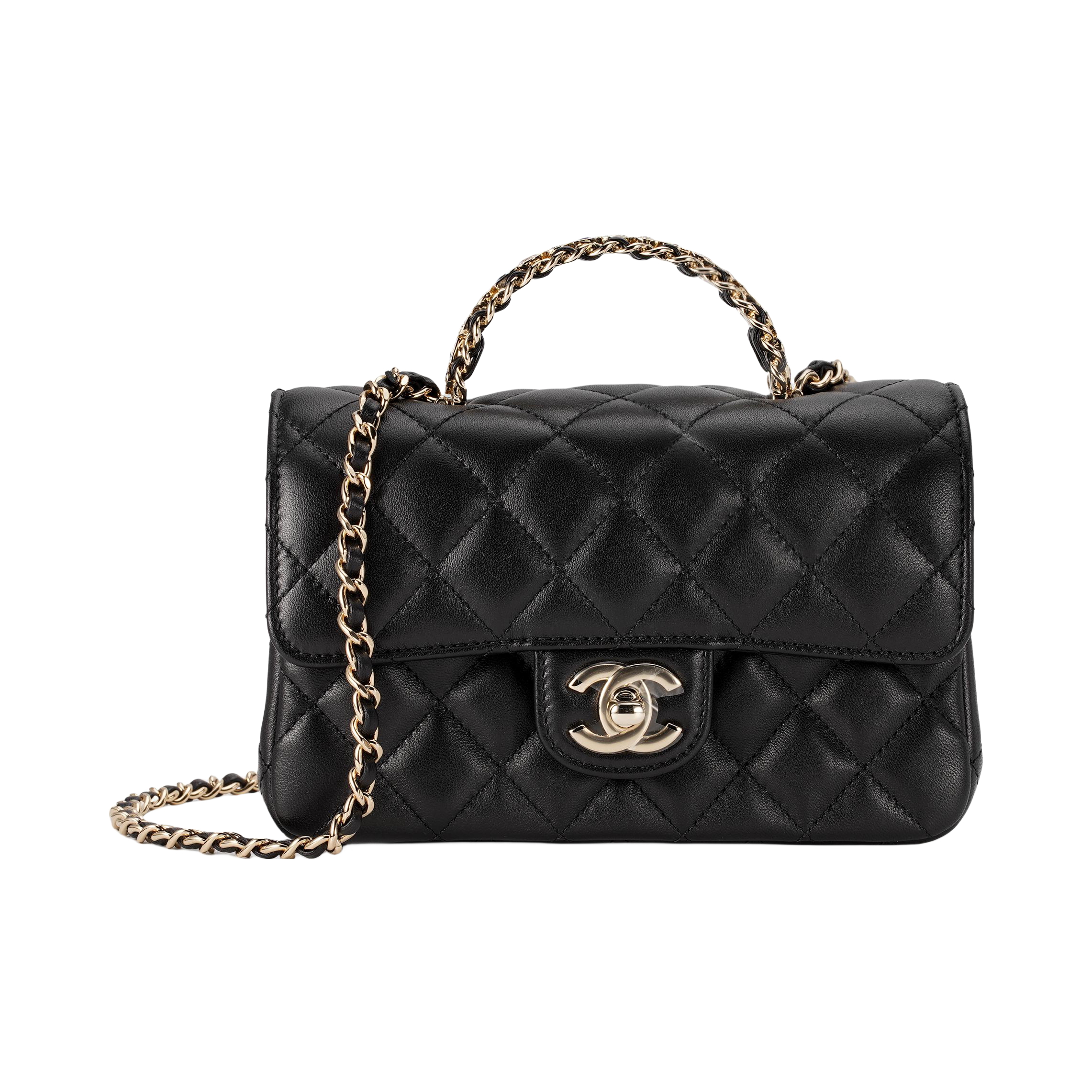 本篇笔记关联了Chanel/香奈儿 23A CF 迷你 金标Logo钻款手柄短款小羊皮链条包单肩斜挎包 黑色等商品,为用户提供真实的使用体验和购买参考。