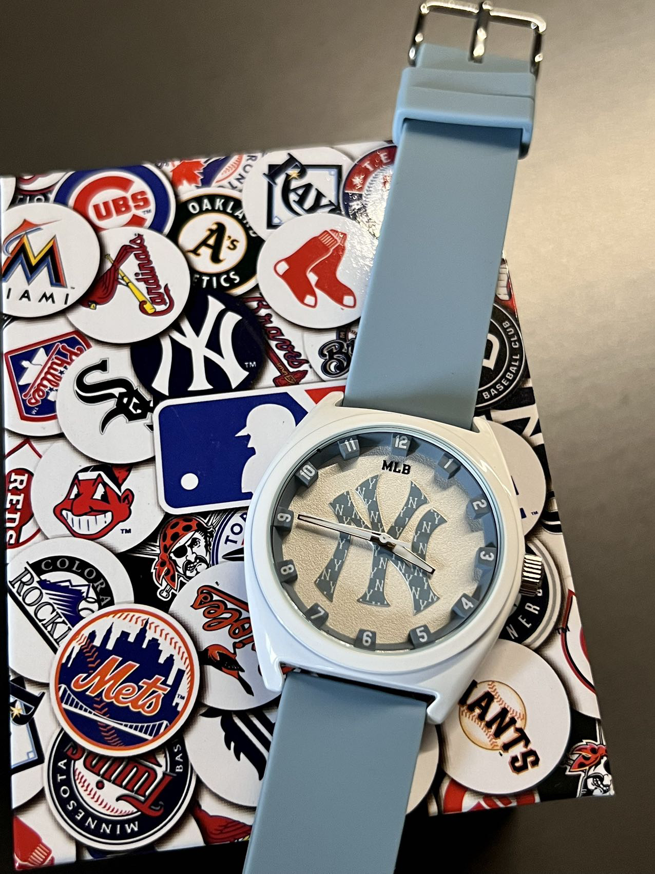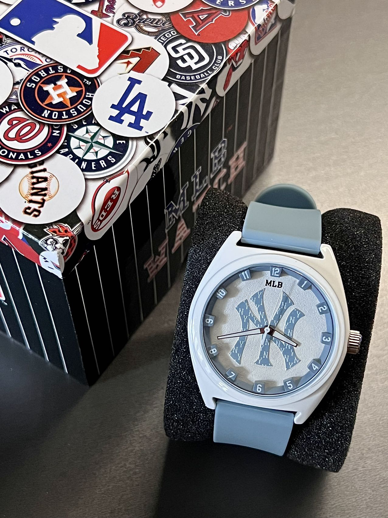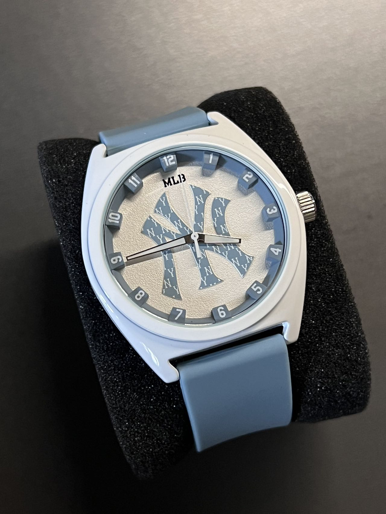 今日穿搭分享 👔上衣:巴黎世家短袖 👖裤子:马吉拉微喇西裤 👟鞋子: nike af1 ambush ⌚️ 这款来自 MLB 美职棒 石英腕表 白色的表盘搭配雾霾蓝色 相当简约 中间经典的洋基队LOGO 很好增添了辨识度 整个表的设计都很阳光很朝气十足~ 硅胶表带 戴起来舒适 佩戴起来很轻松 🌍进口石英机芯 💪矿物强化玻璃镜面 🏊生活防水50米
