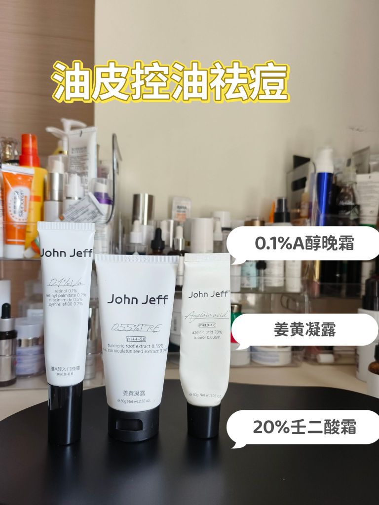 0.1A醇平滑皮肤,辅助祛痘;姜黄凝露提供长线控油以及抗🔥;20%壬二酸复配了水杨酸,无论红肿痘还是粉刺它都能搞定,完全耐受后,可以试试壬二酸局部厚敷,效果更好。