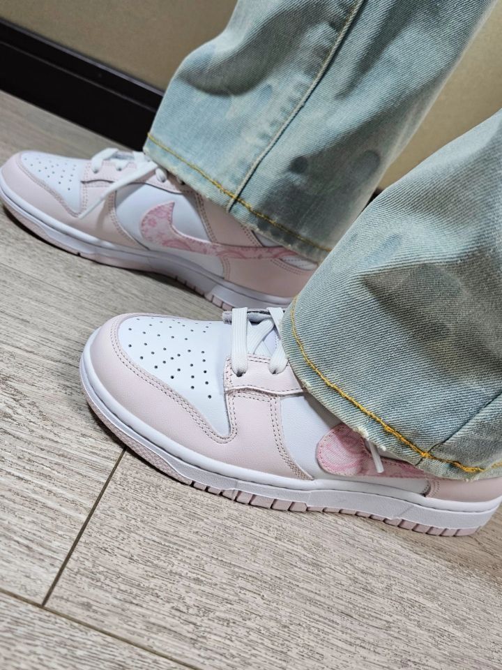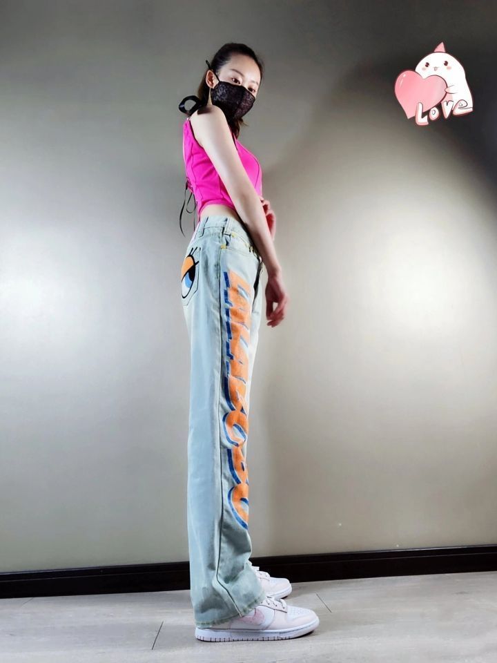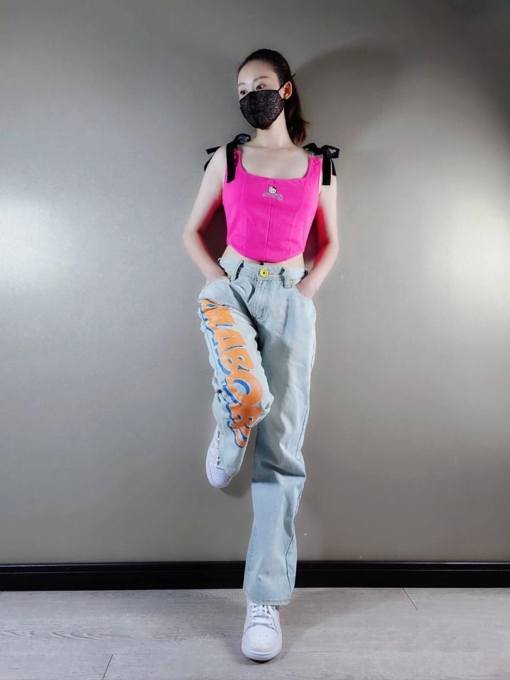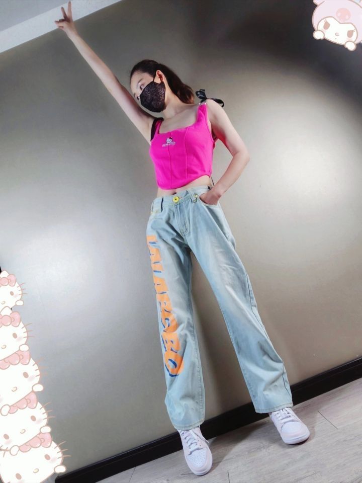 身高|体重:169/50 🧍♂️ 穿搭风格:甜酷辣妹风~ 👔 上衣:Unifree HelloKitty 联名吊带背心 粉~ 👖 下装:Lalabobo复古宽松直筒牛仔裤~ 👟 鞋子:Nike dunk low Pink Paisley 珍珠粉~