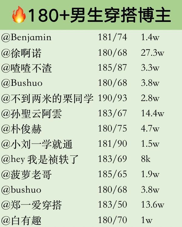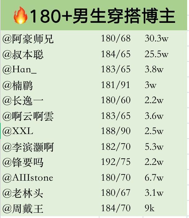 ✨✨ 就第一批180+高个子男生博主来啦 ✨✨ 博主风格不限,点进主页自行查看!!韩系、日系、复古文艺、日常休闲、职场系、美式运动风等等。 ✨✨ 欢迎各位补充 @阿豪师兄 @叔本聪 @Han_ @楠鹛 @长逸一 @啊云啊雲 @XXL @李滨灏啊 @锋要吗 @Alllstone @老林头 @周戴王 @Benjamin @徐啊诺 @喳喳不渣 @Bushuo @不到两米的栗同学 @孙聖云阿雲 ...